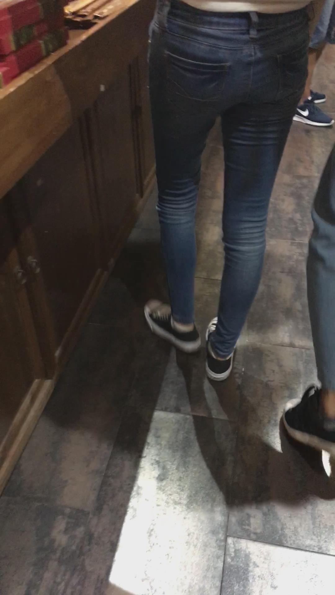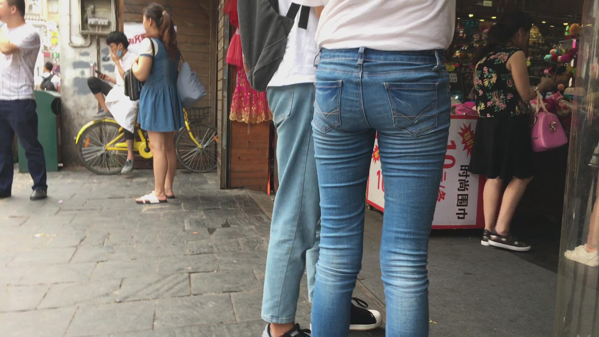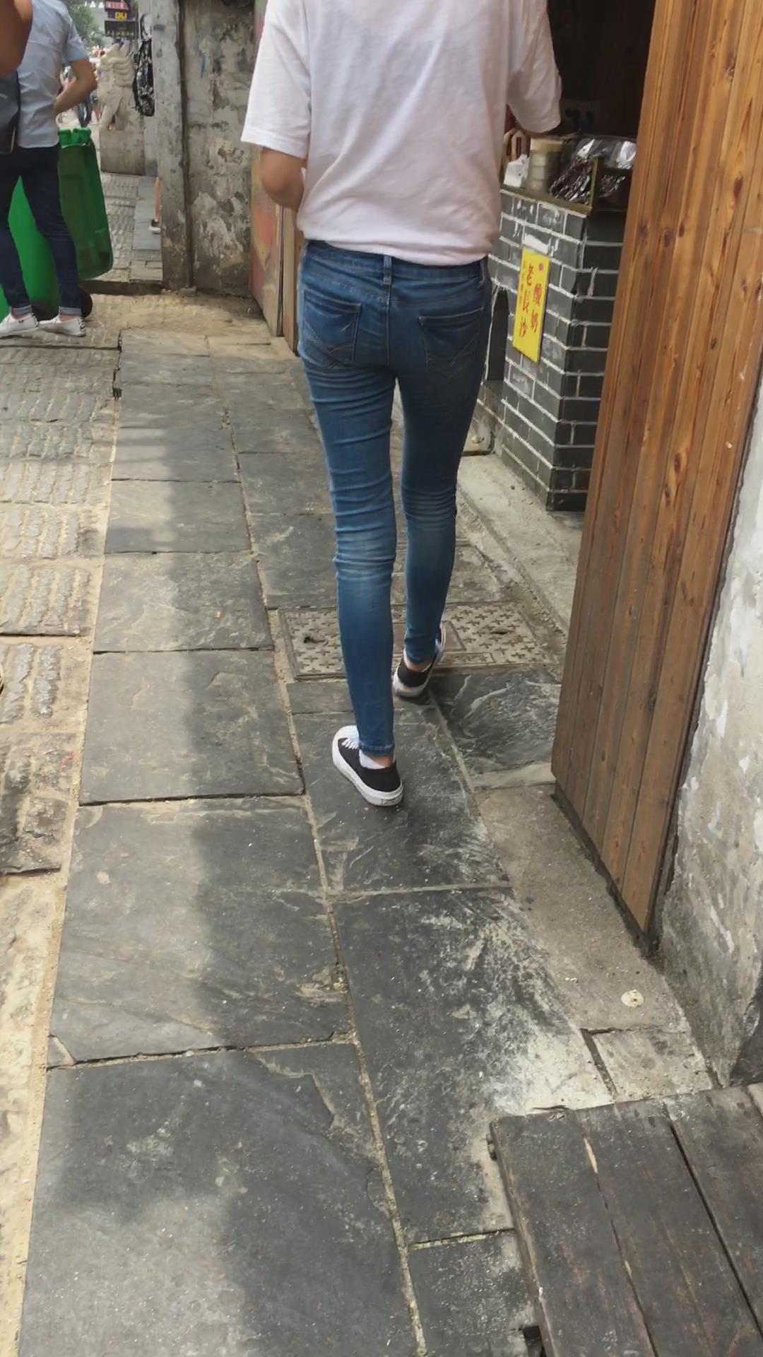 街拍白衬衫牛仔裤、身材苗条小妹 编号5416