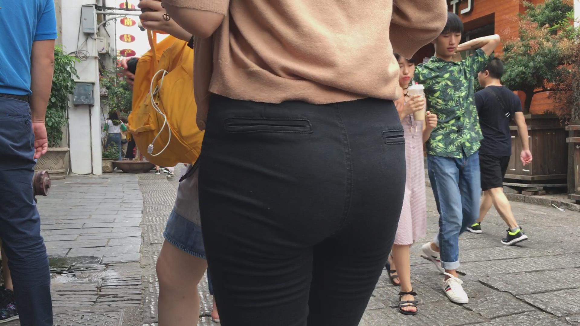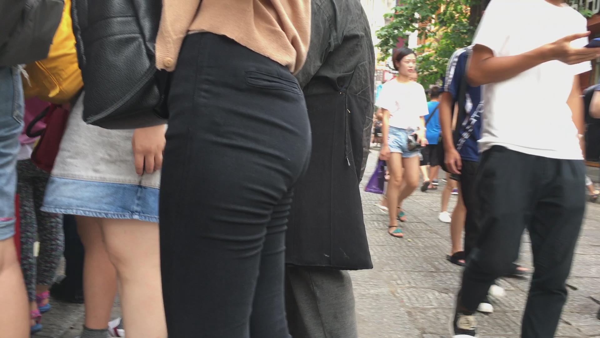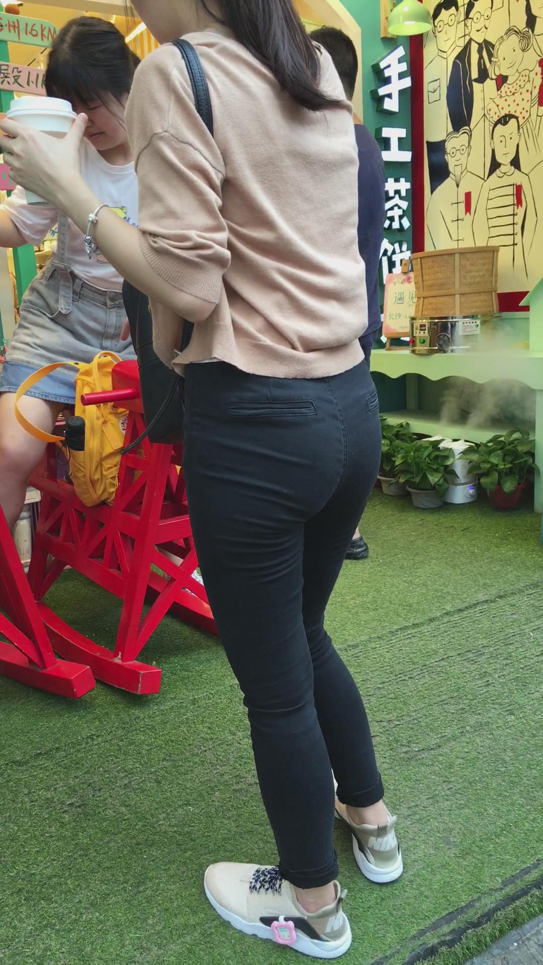 街拍超紧黑裤翘臀小清新美女 编号5417