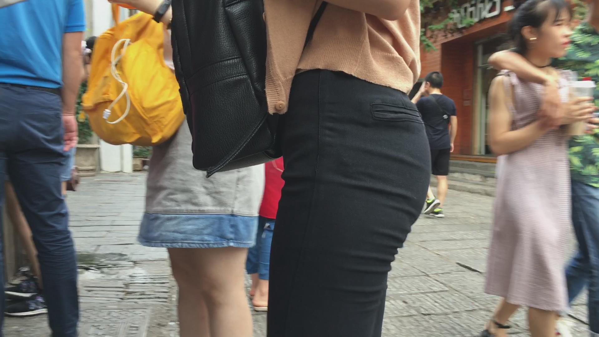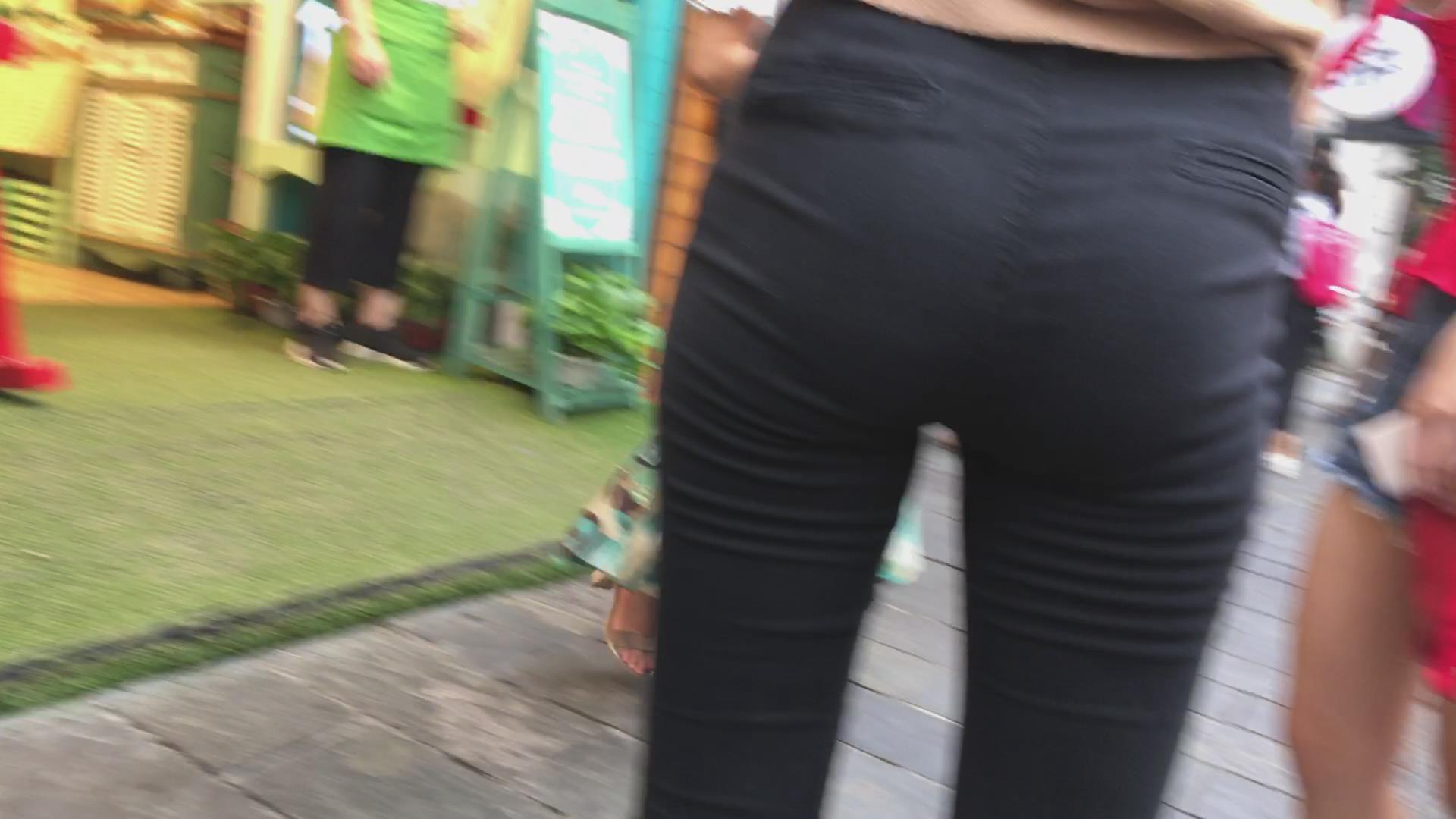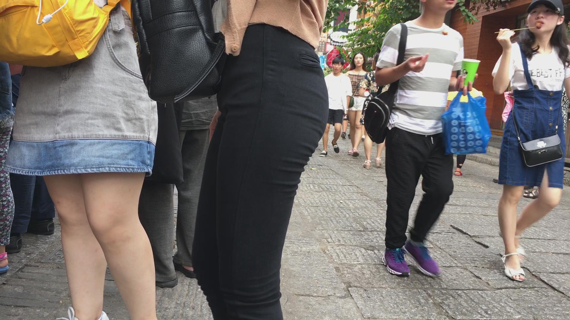 街拍超紧黑裤翘臀小清新美女 编号5417