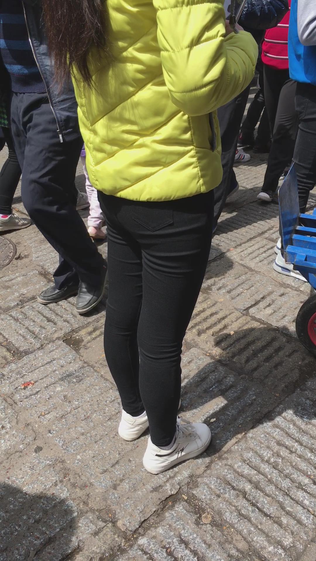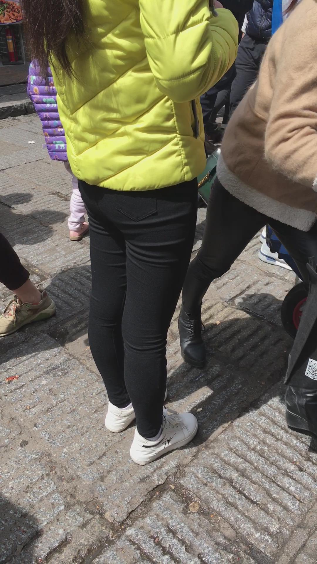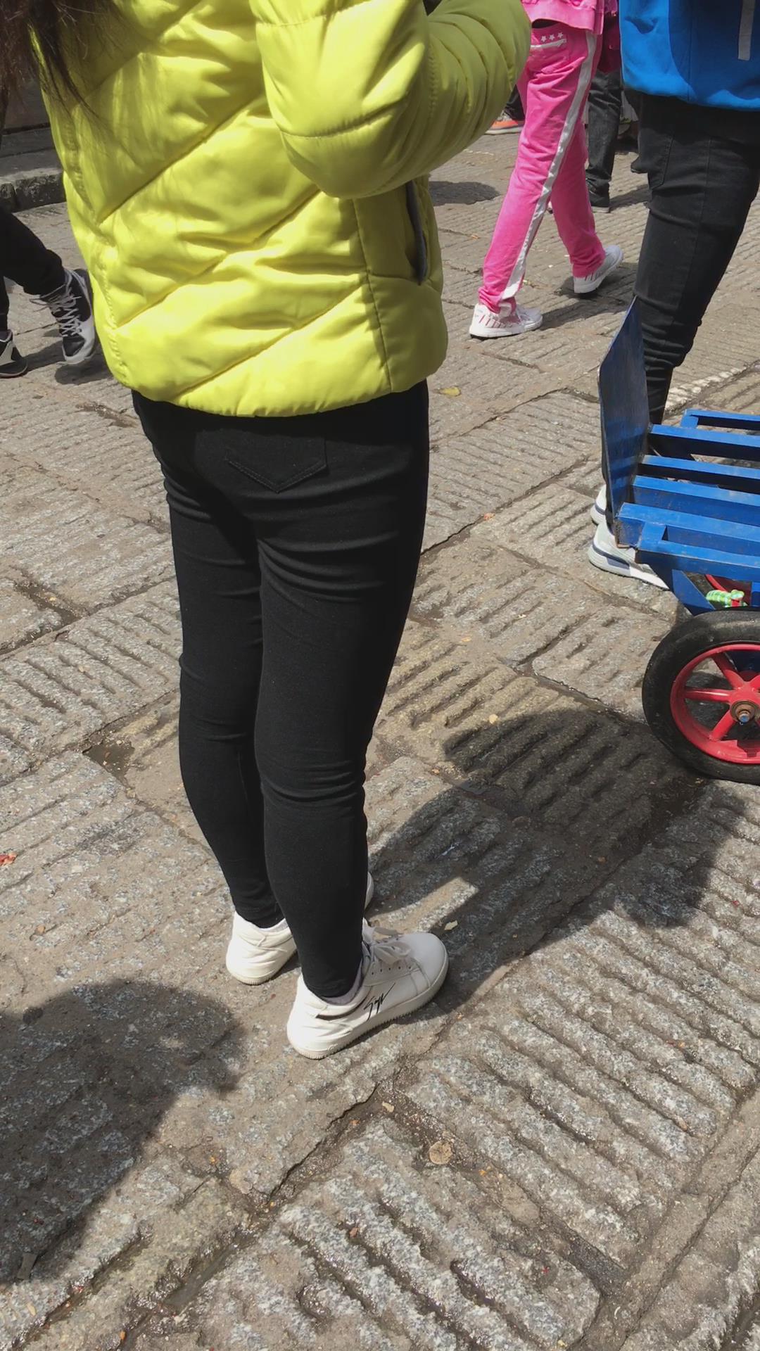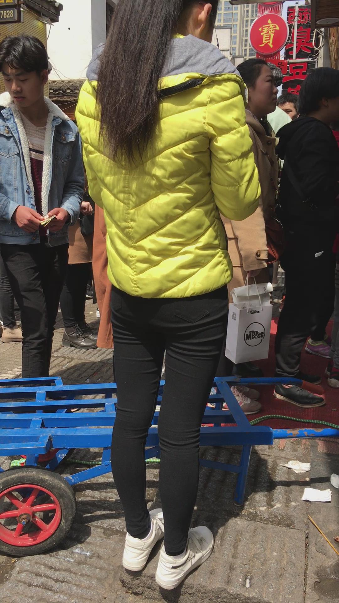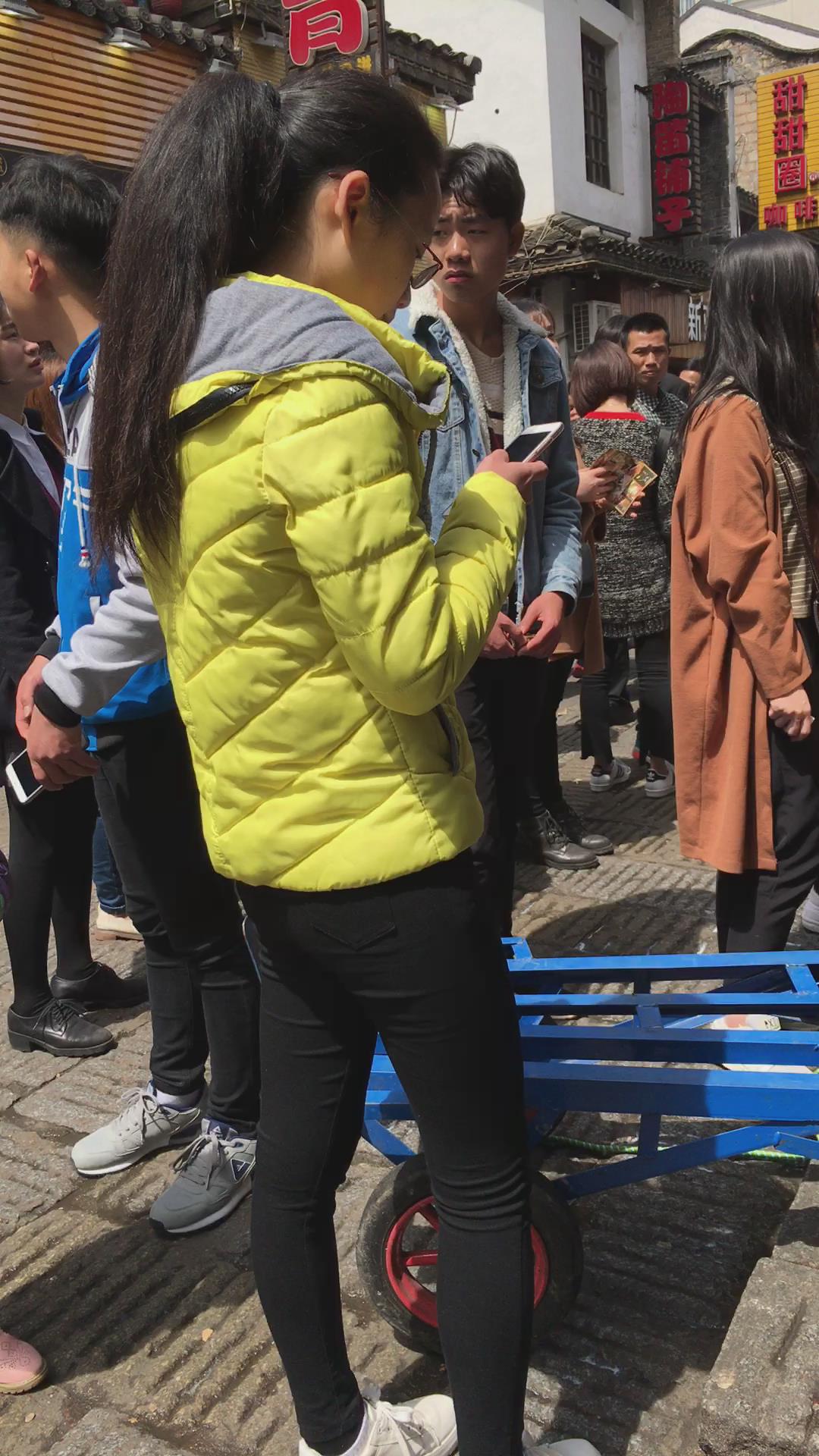 羽绒服黑色紧身裤,清纯马尾辫女孩 编号5431