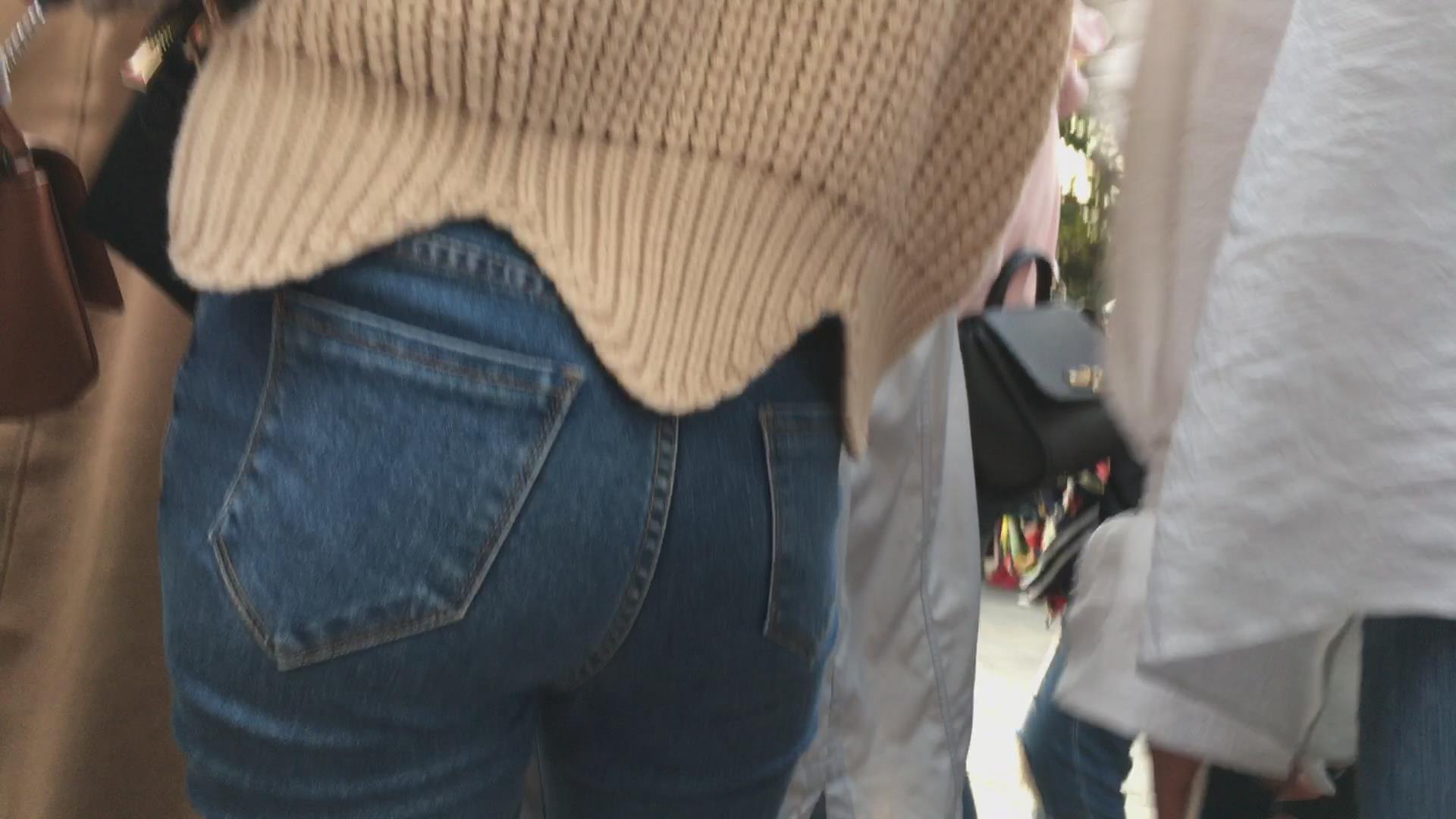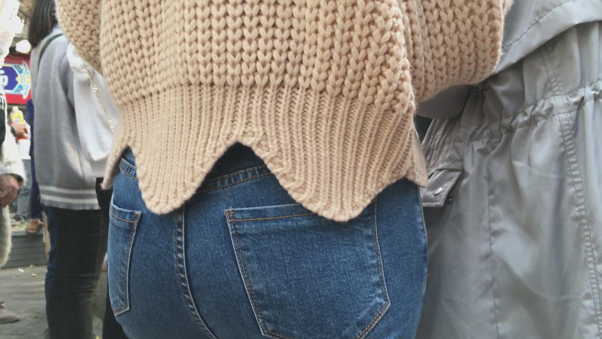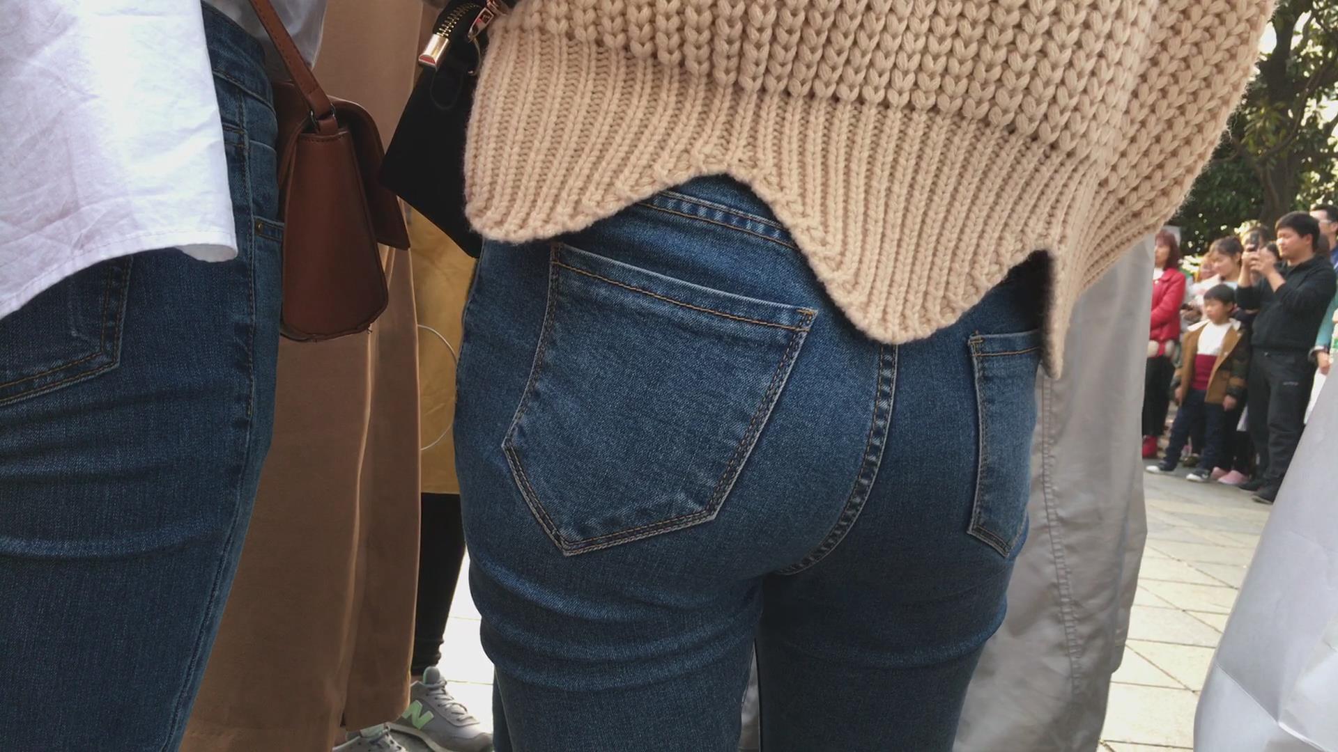 街拍圆润苹果臀紧身牛仔裤美眉 编号5432