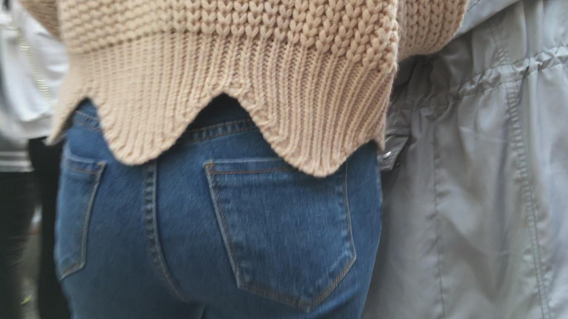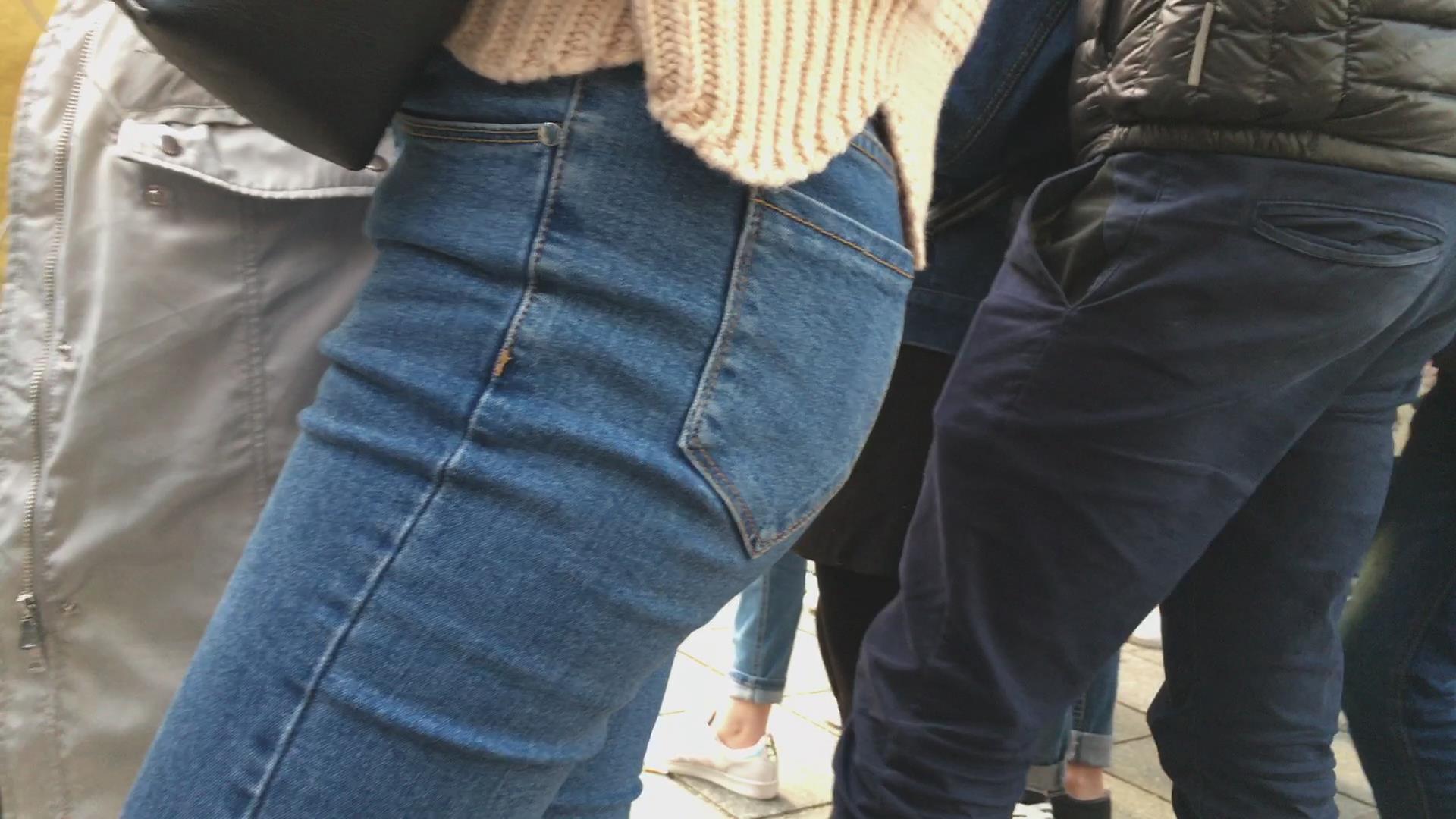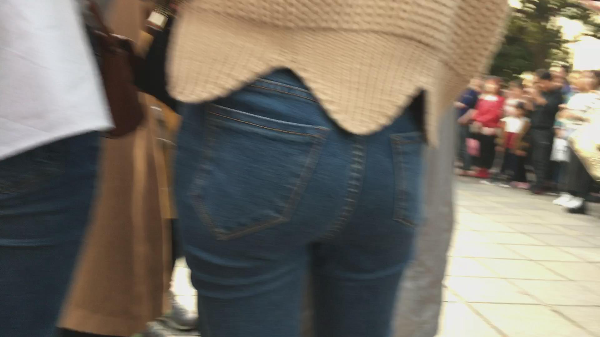 街拍圆润苹果臀紧身牛仔裤美眉 编号5432