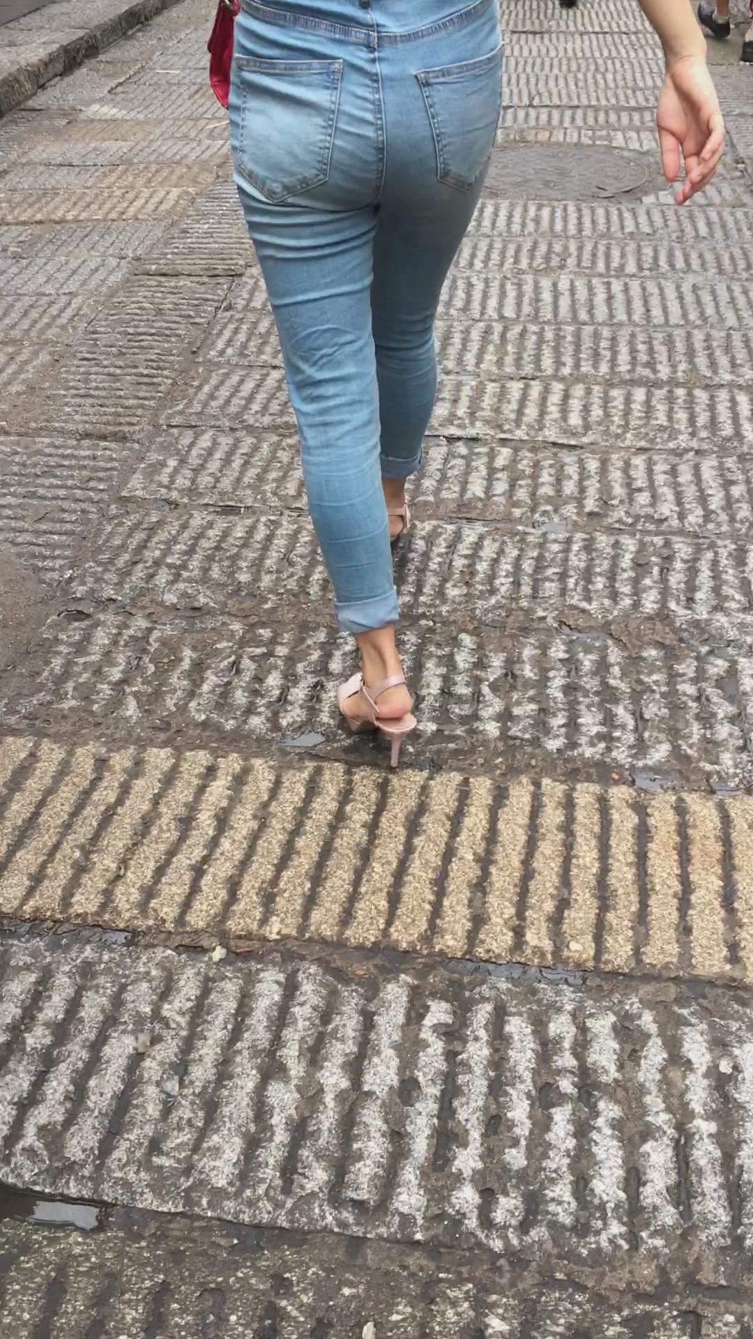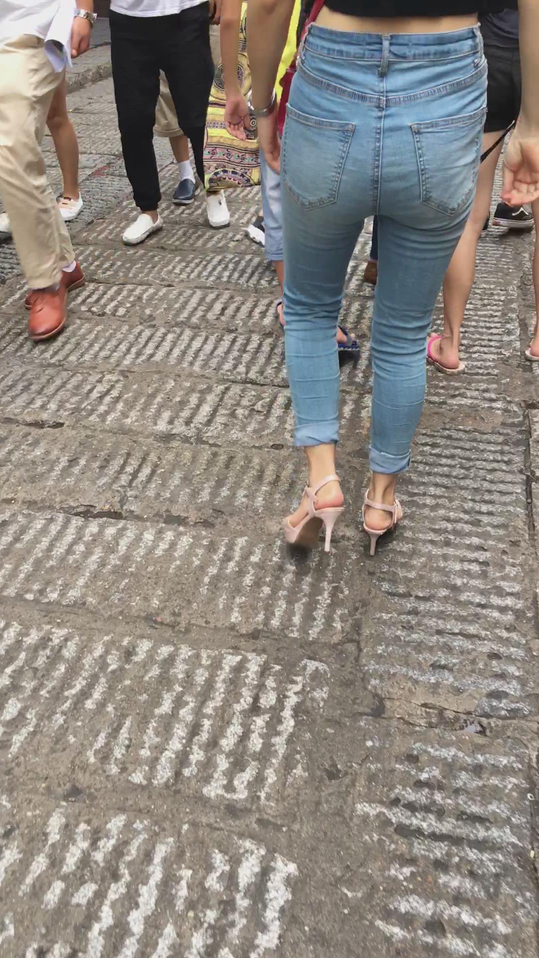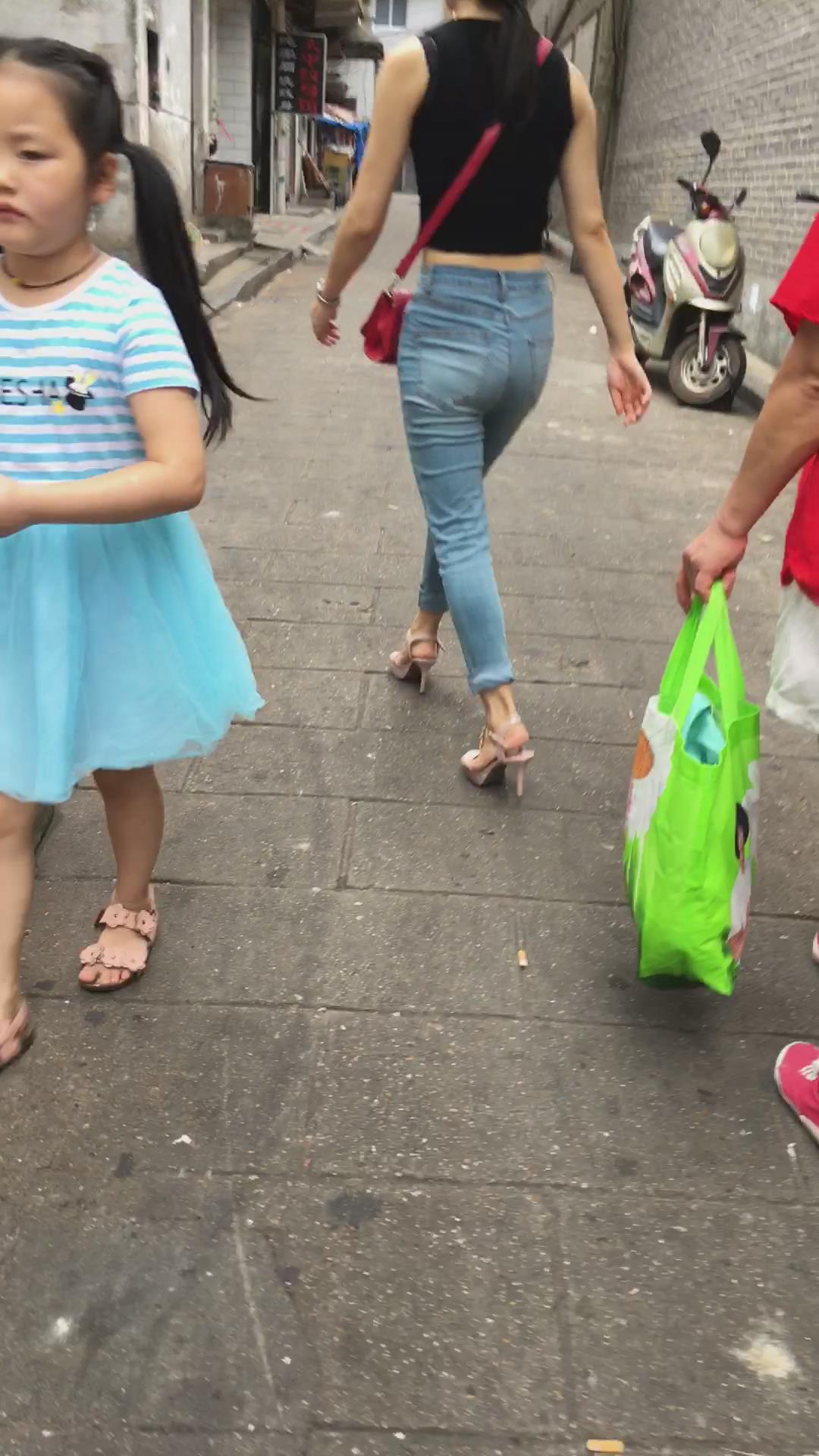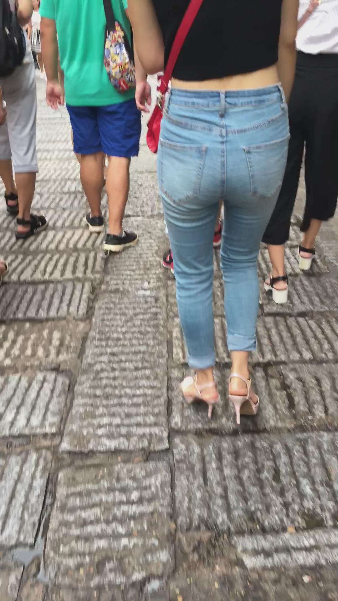 街拍高跟鞋紧身蓝牛小蛮腰美女姐姐 编号5440