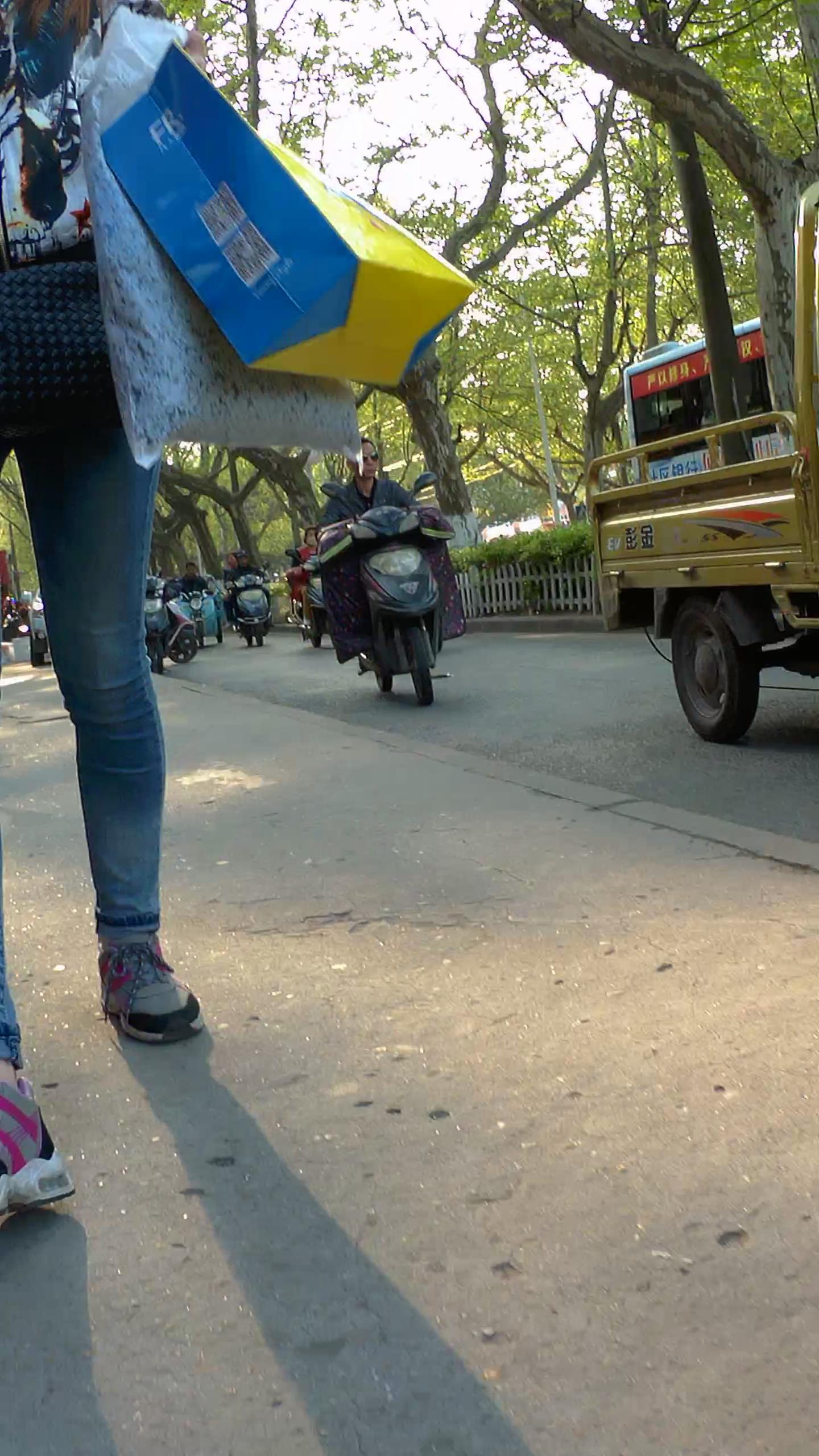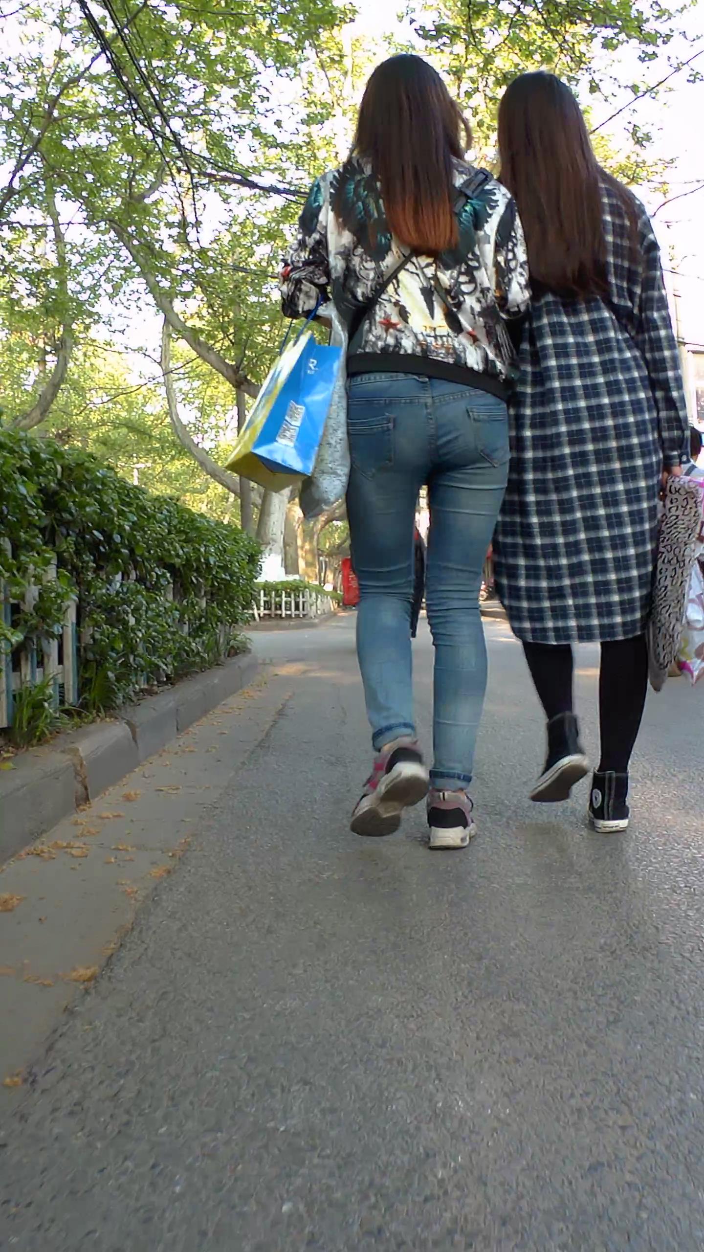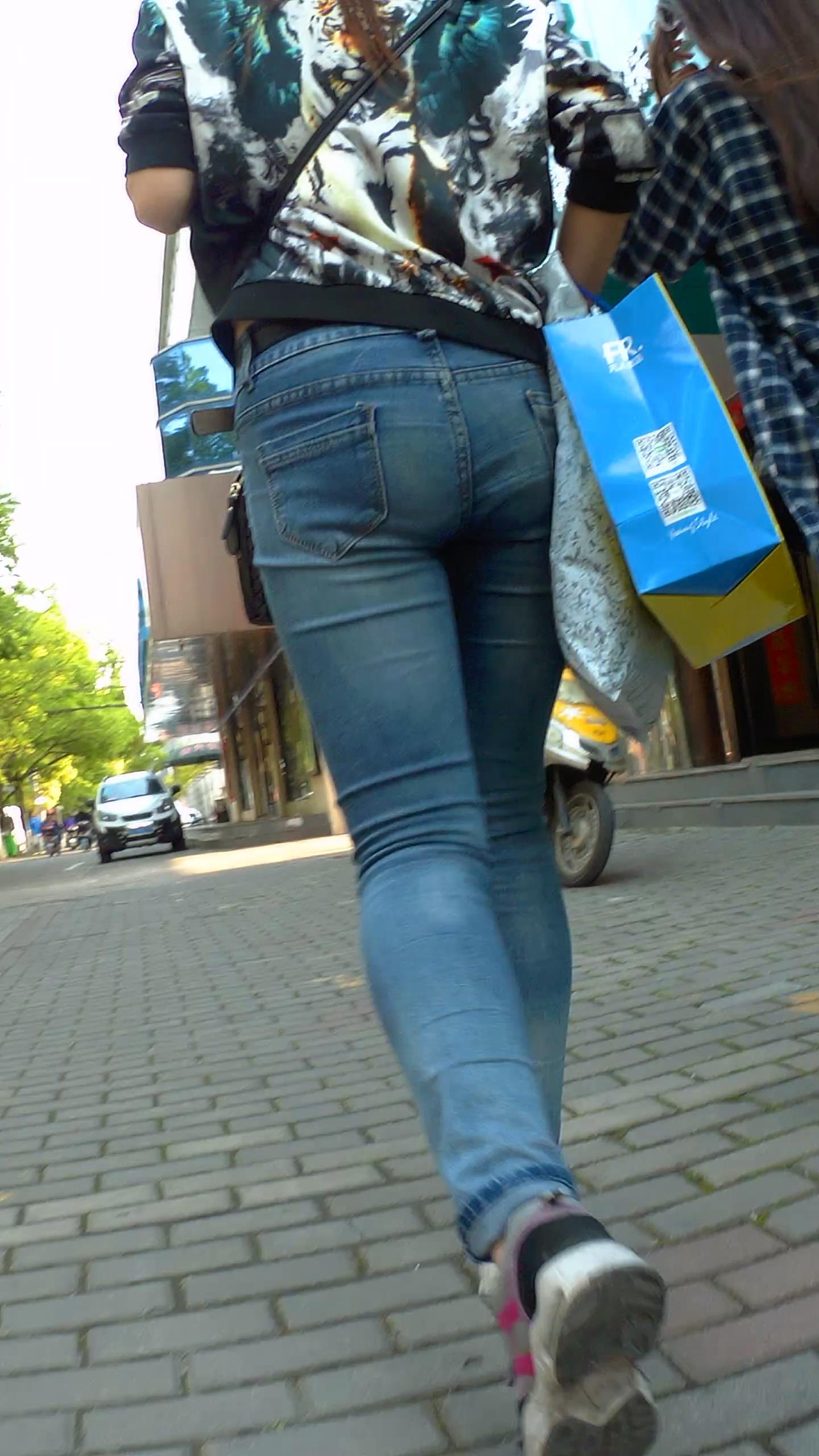 街拍紧身蓝色牛仔裤美眉跟姐妹逛街 编号5452