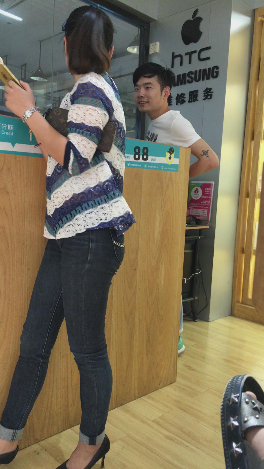 紧身灰色牛仔裤韵味少妇.熟女 编号5473