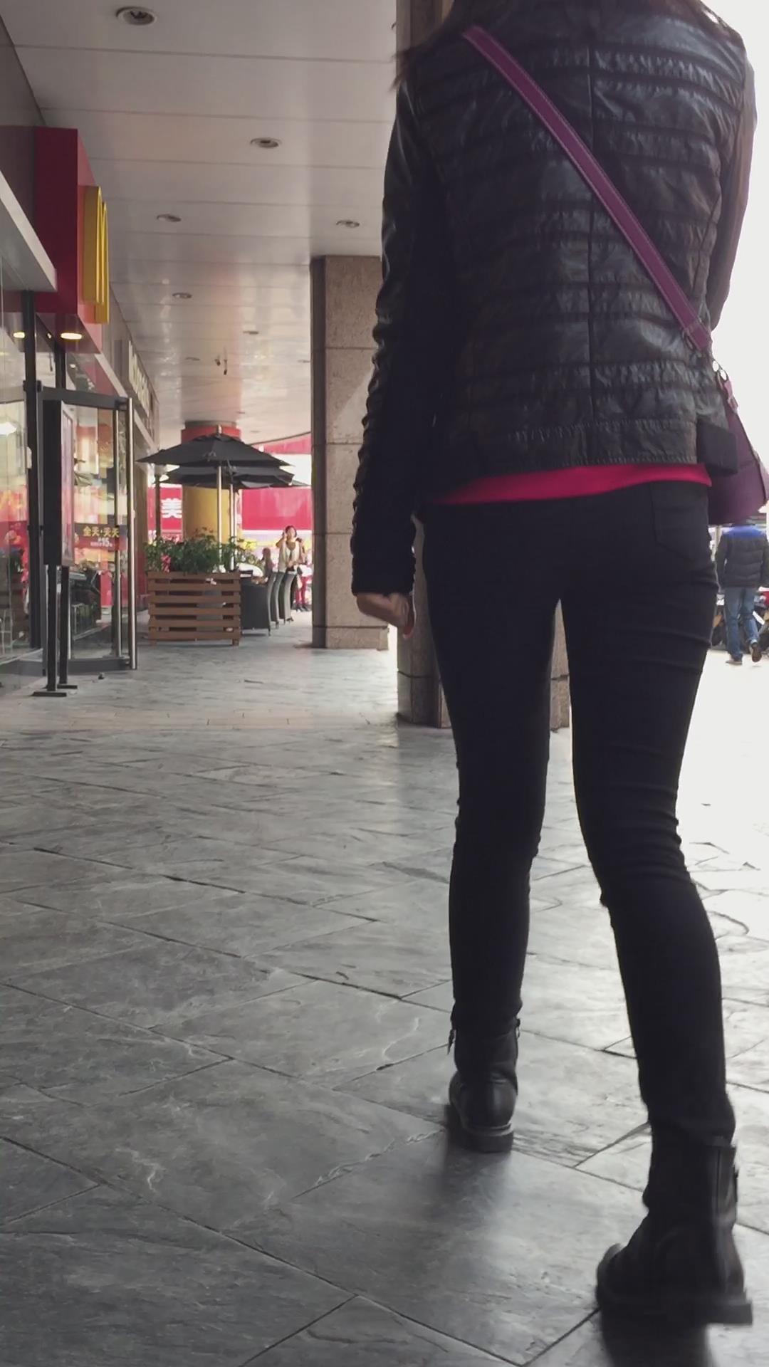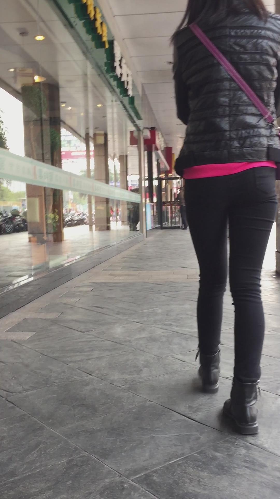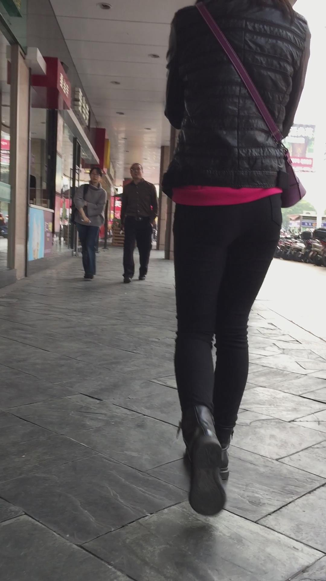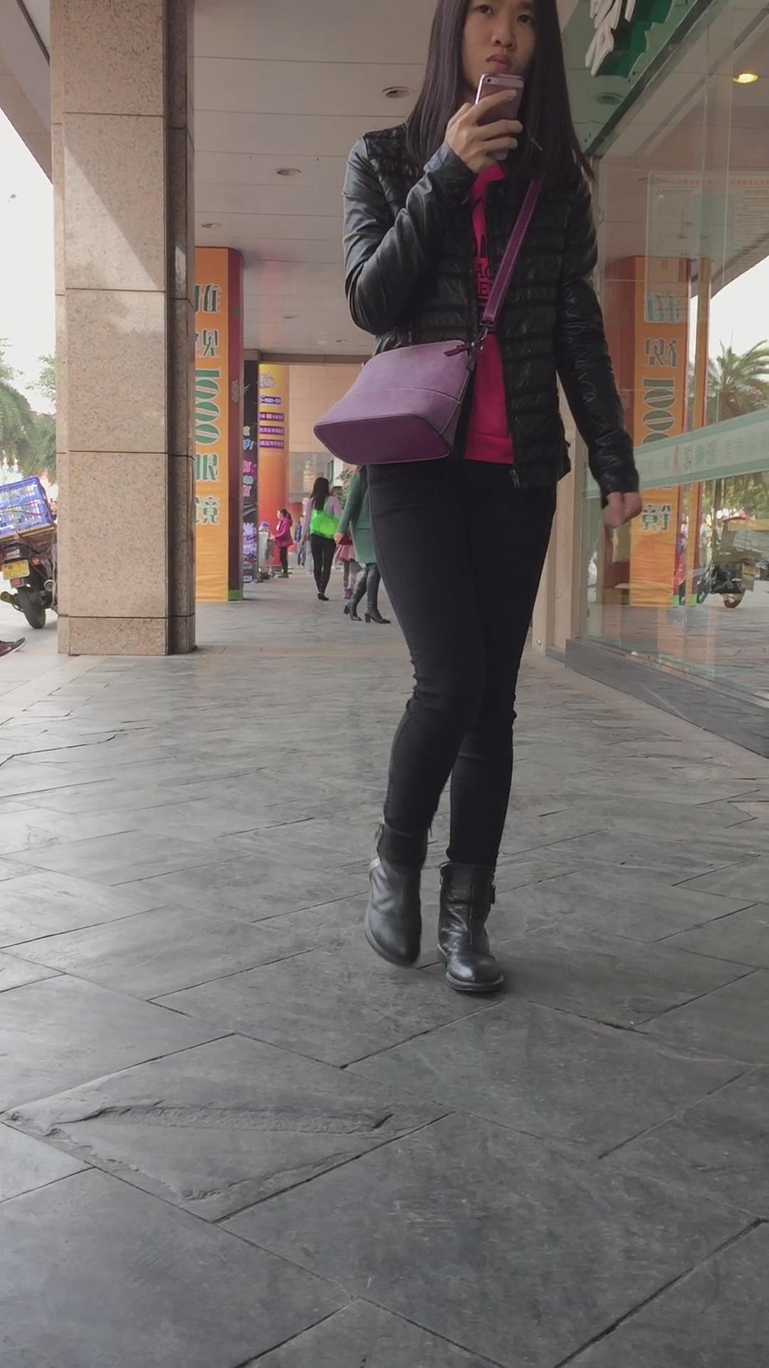 迎面走来一位苗条紧身黑裤美眉 编号5498