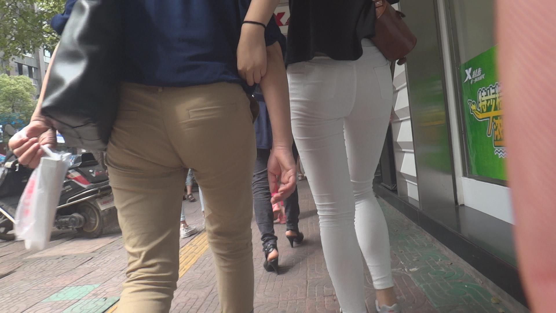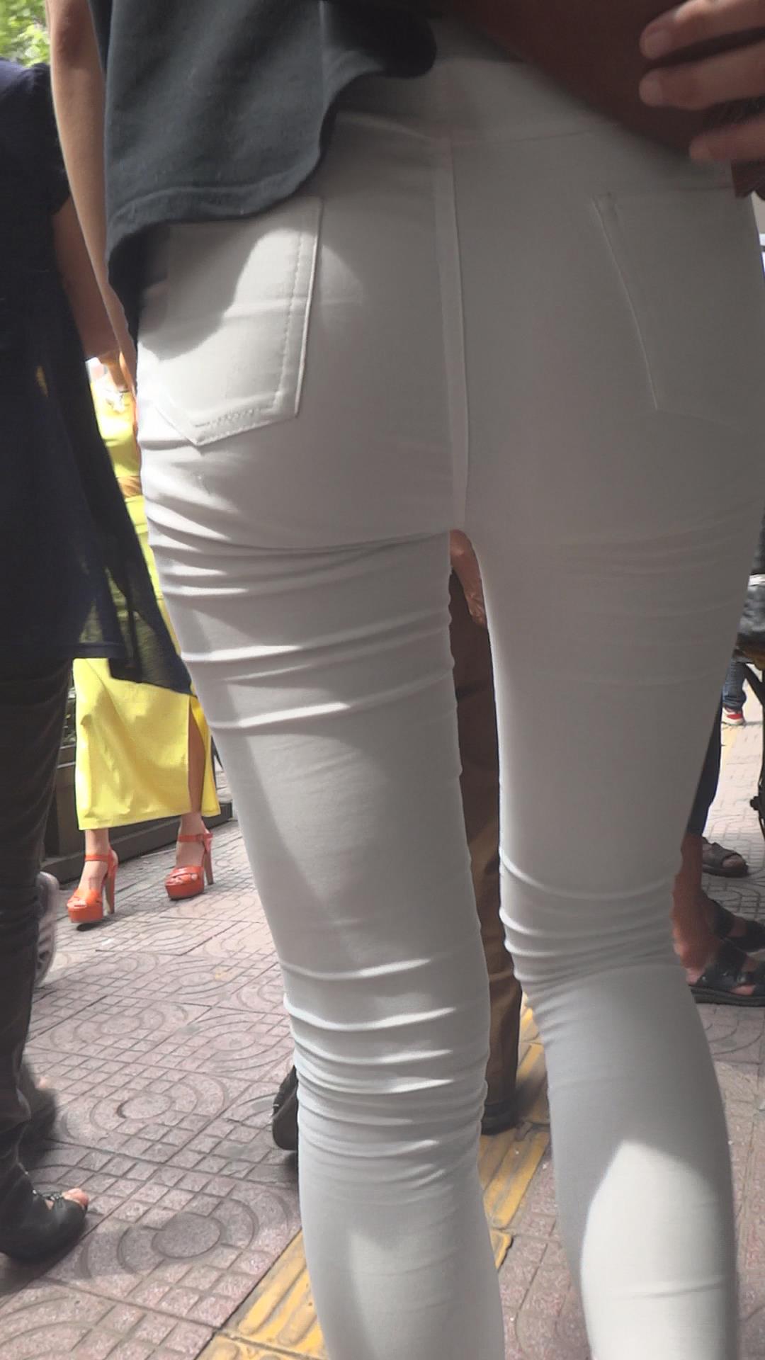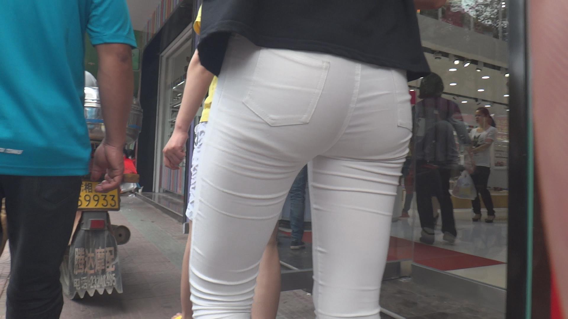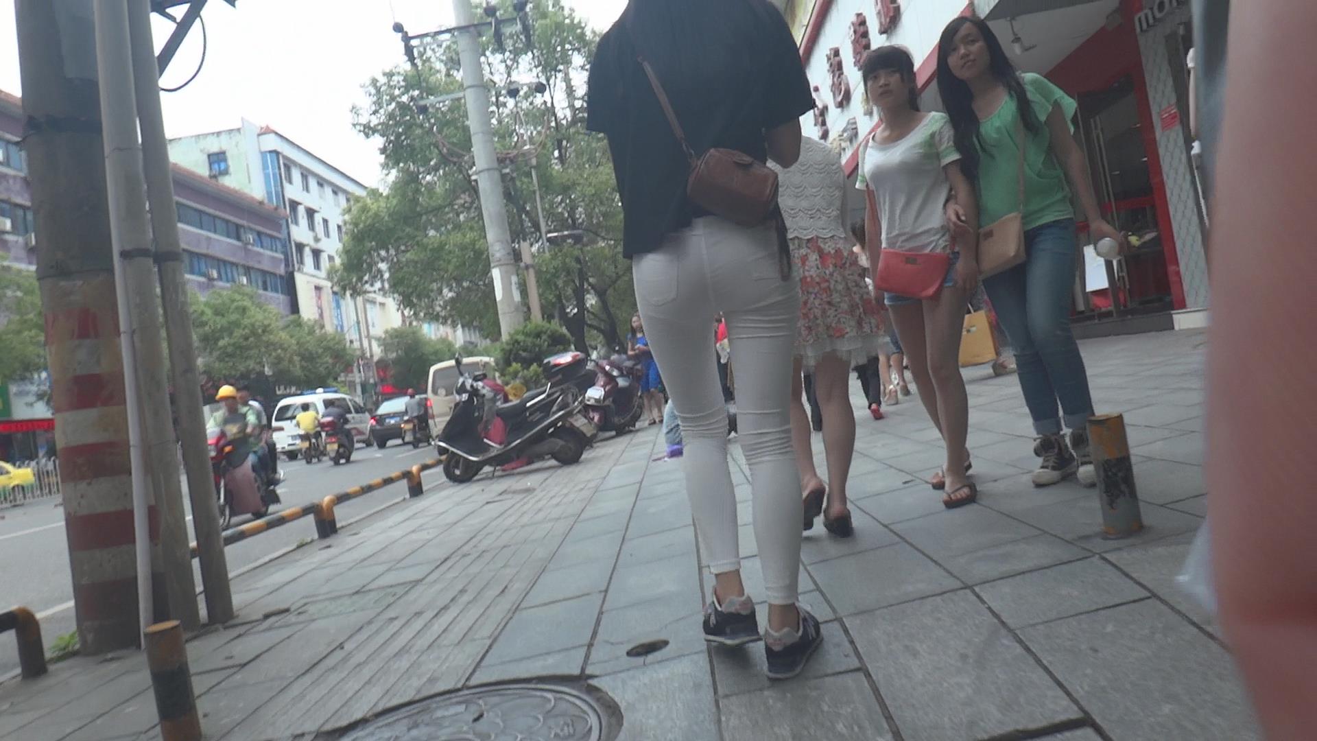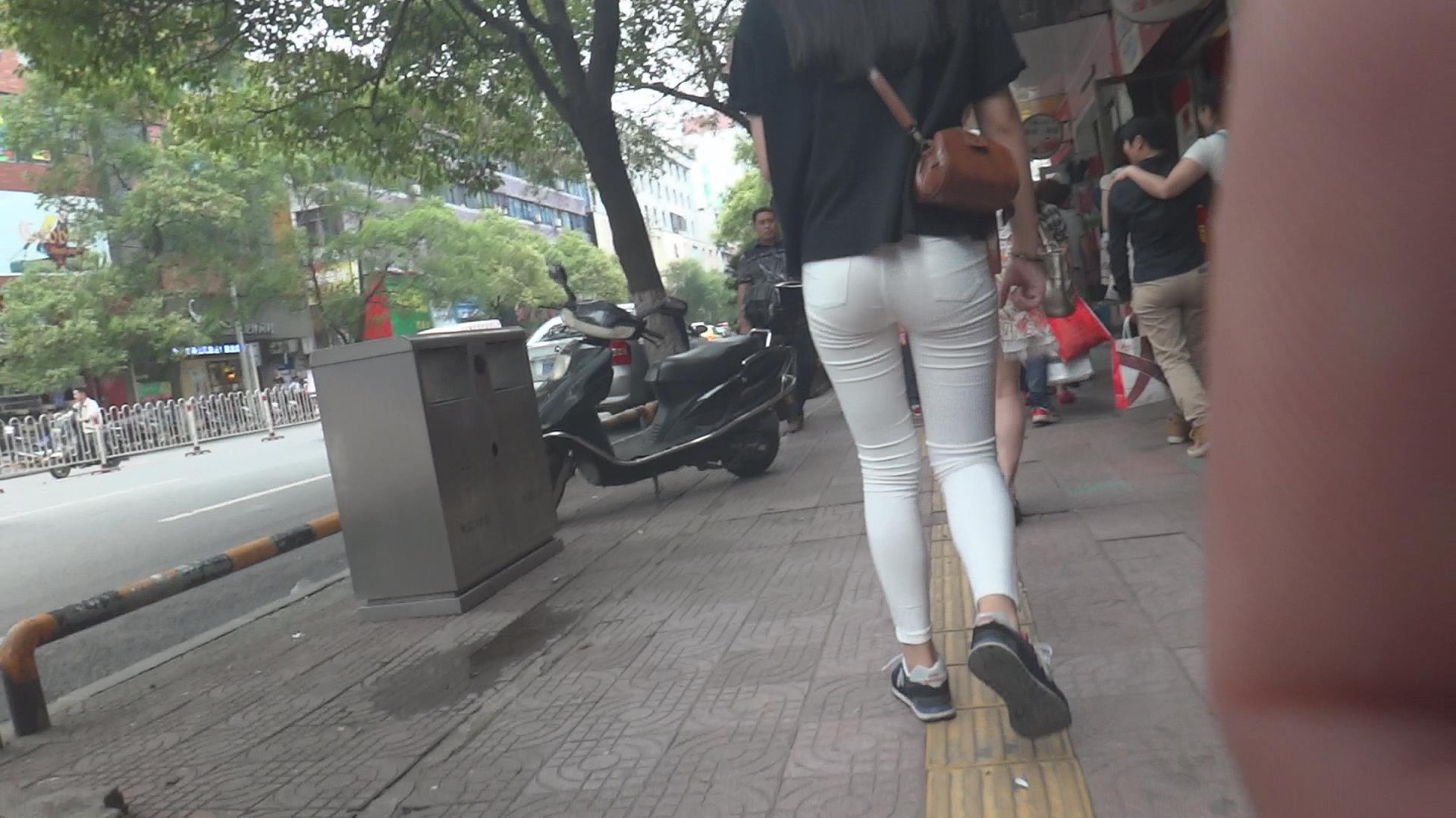 街拍紧身白裤美腿少女 编号6134