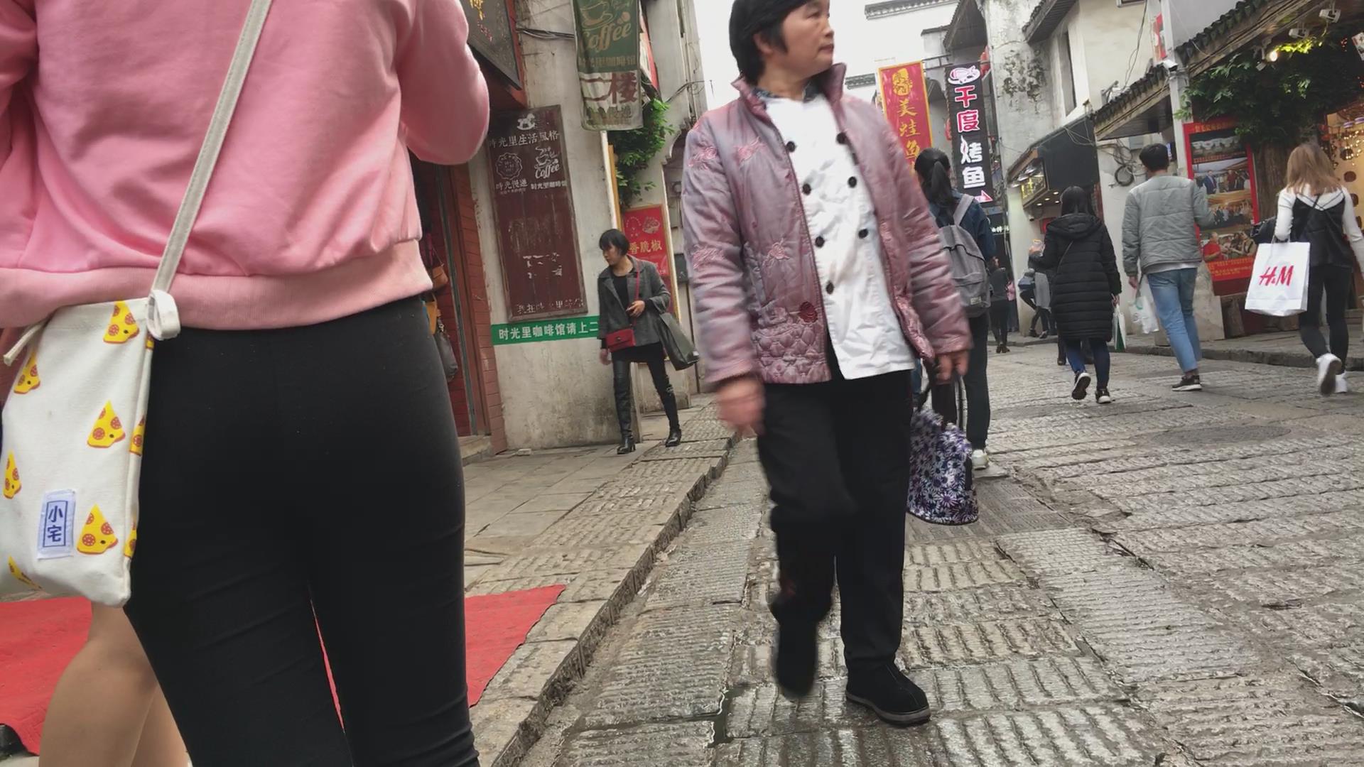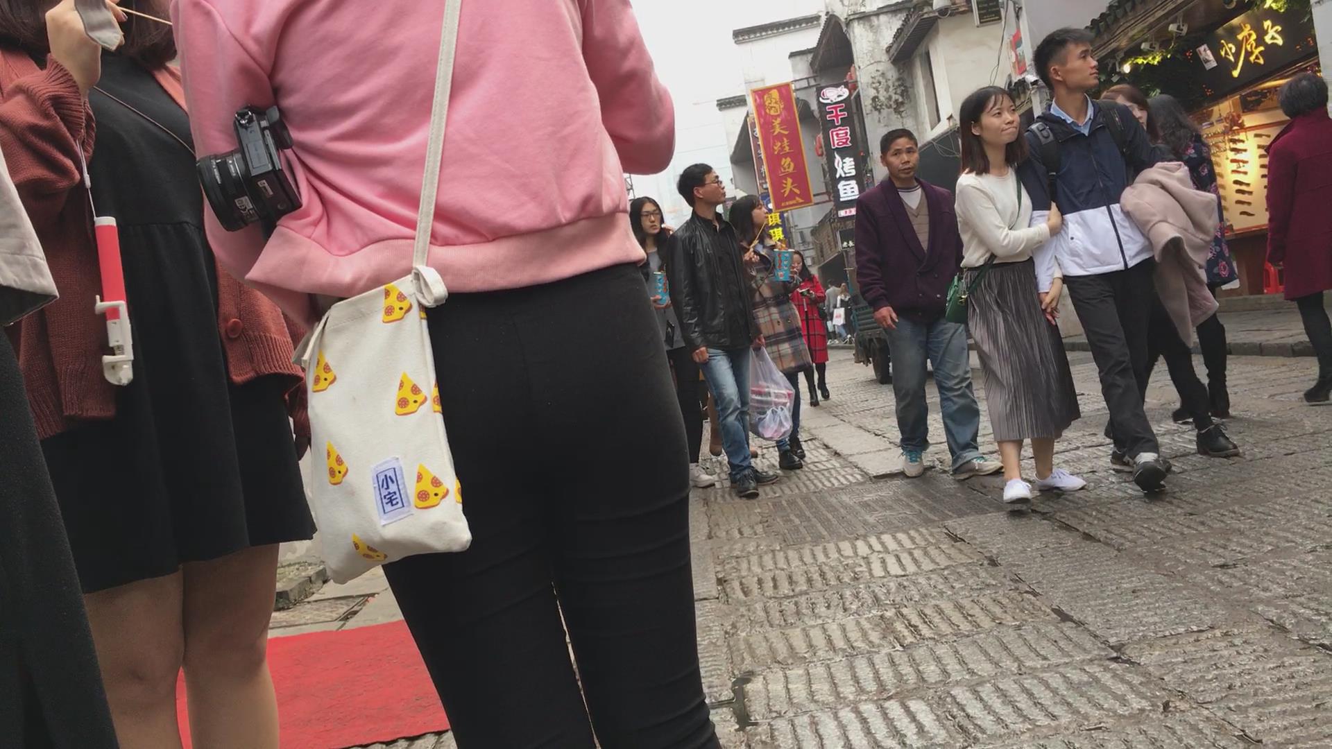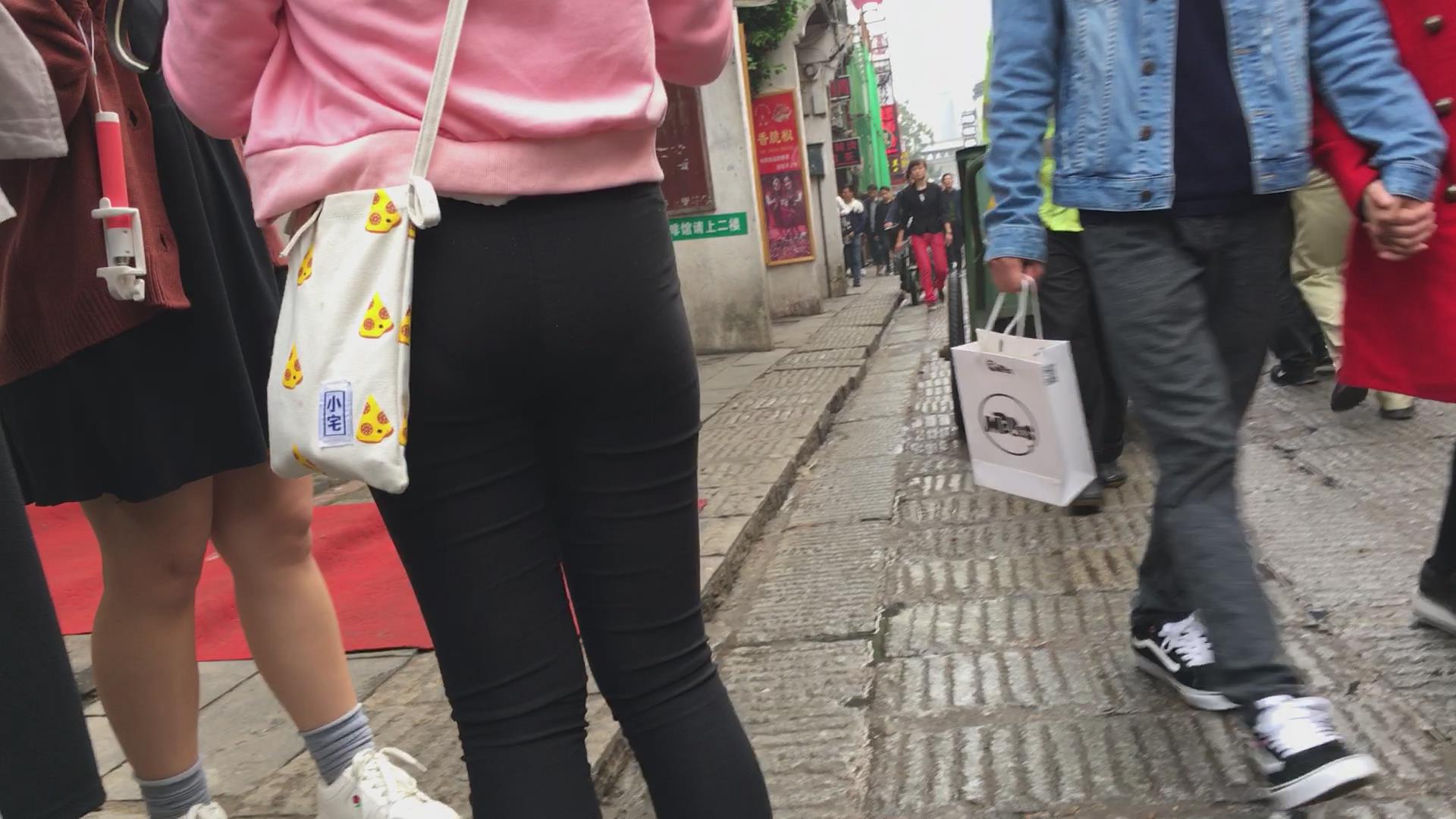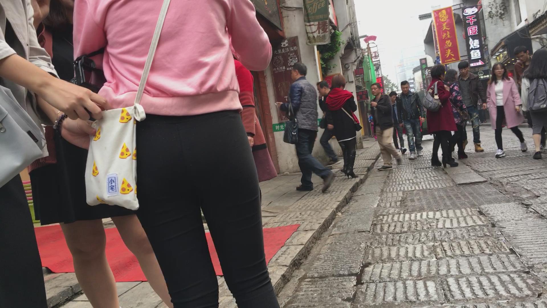 街拍粉衣紧身裤蜜桃臀美眉 编号5523