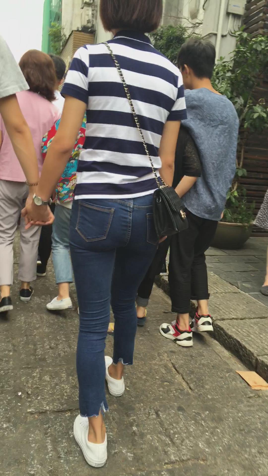 极品超紧身蓝色牛仔裤青春气质小美女 编号5527