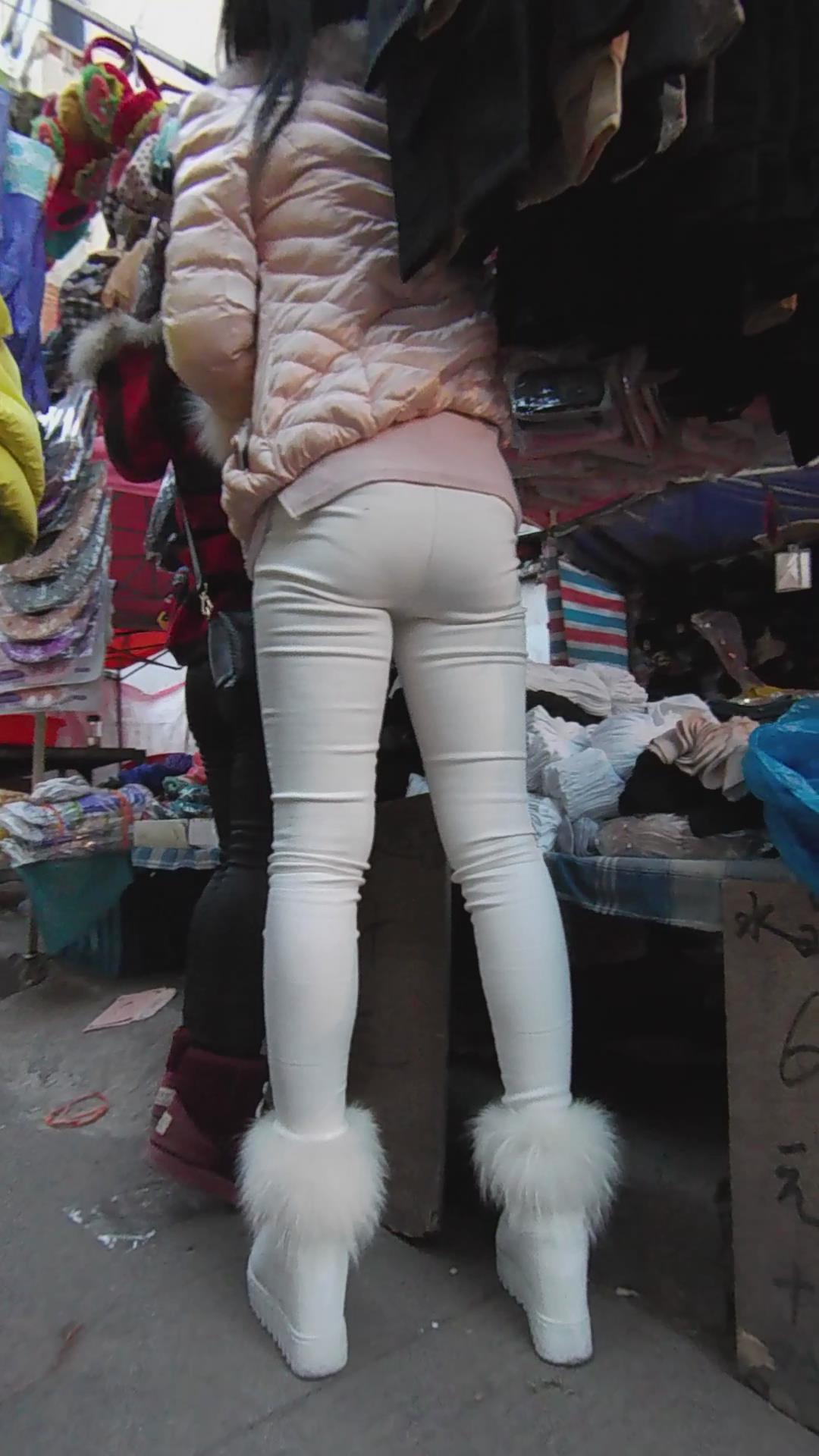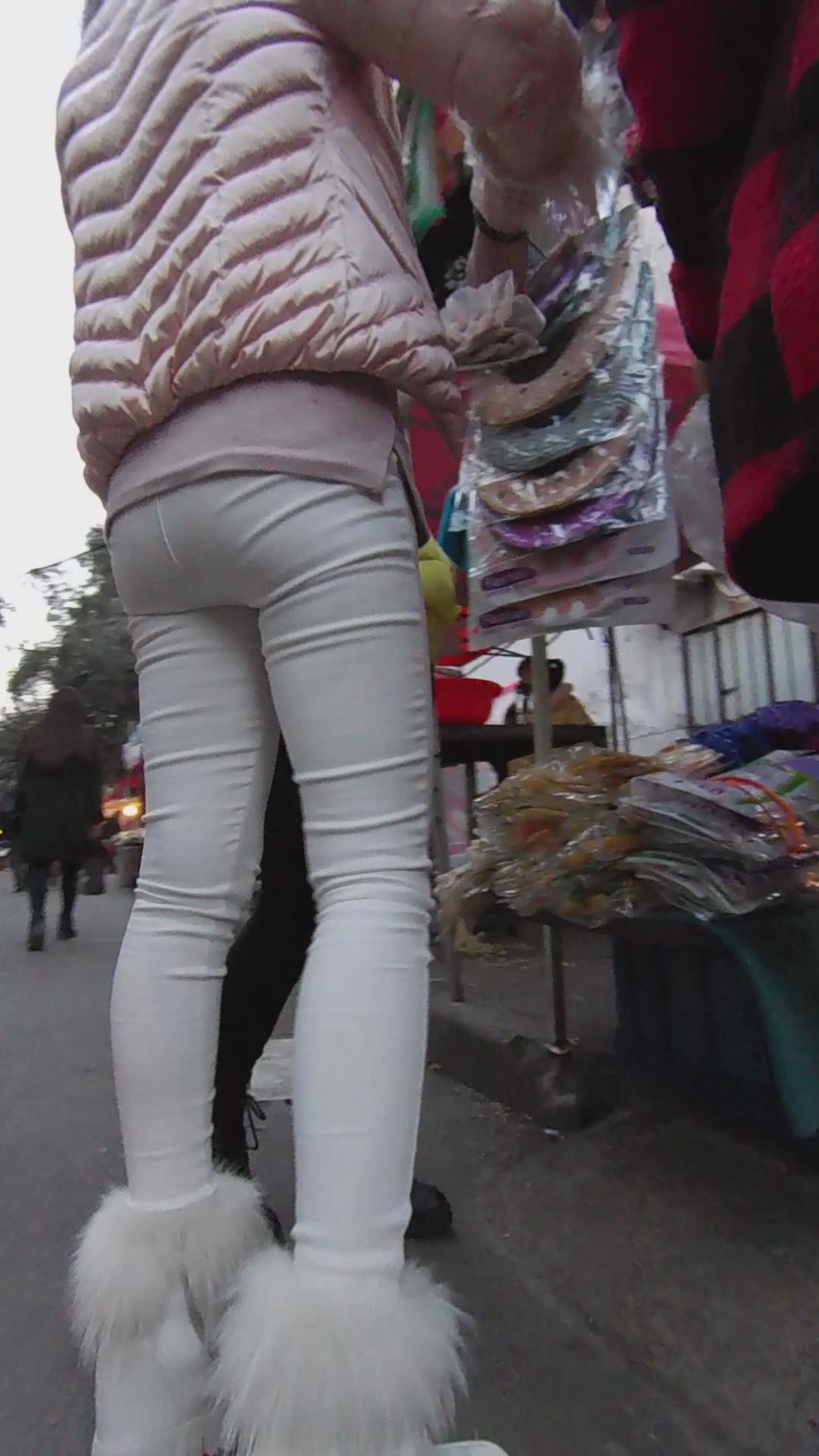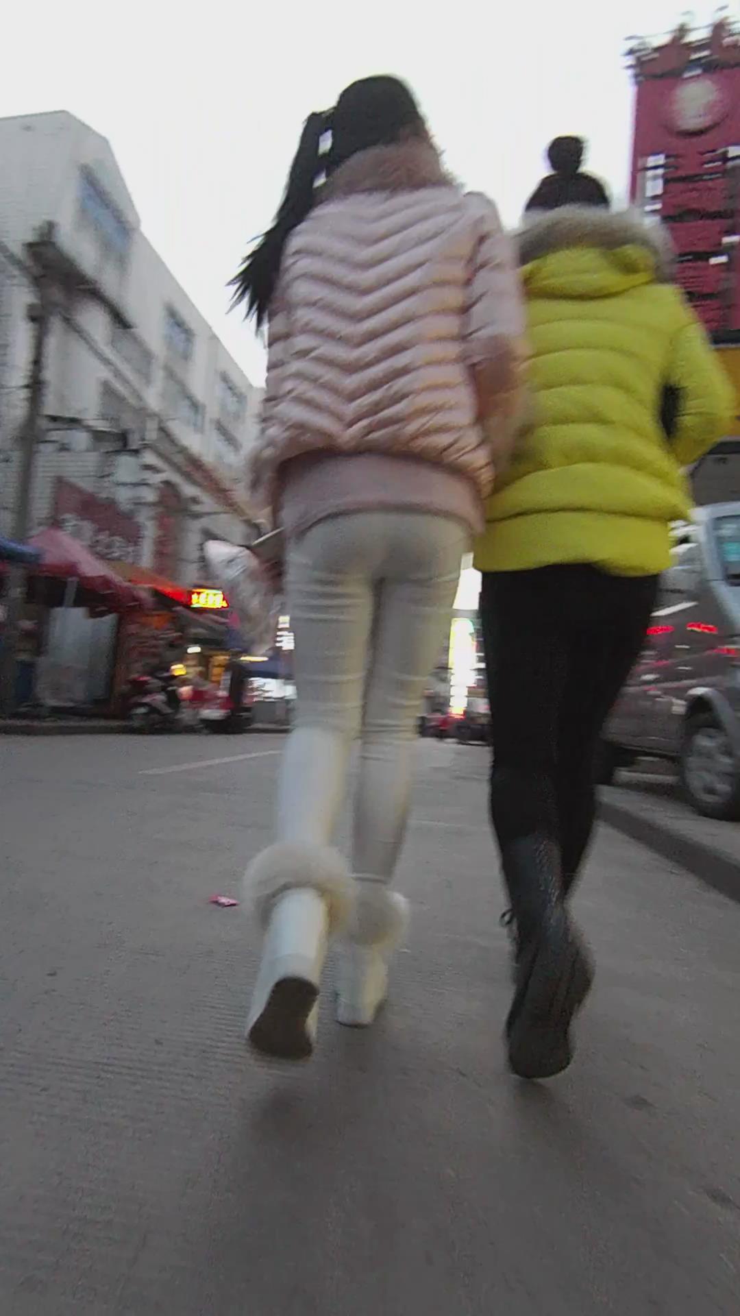 紧身白裤粉外套女孩逛街第二季 编号5538