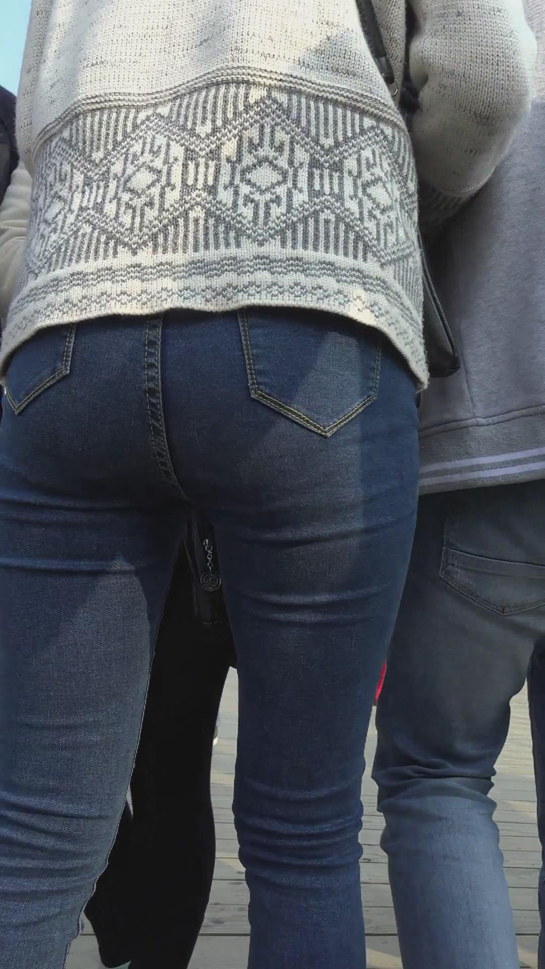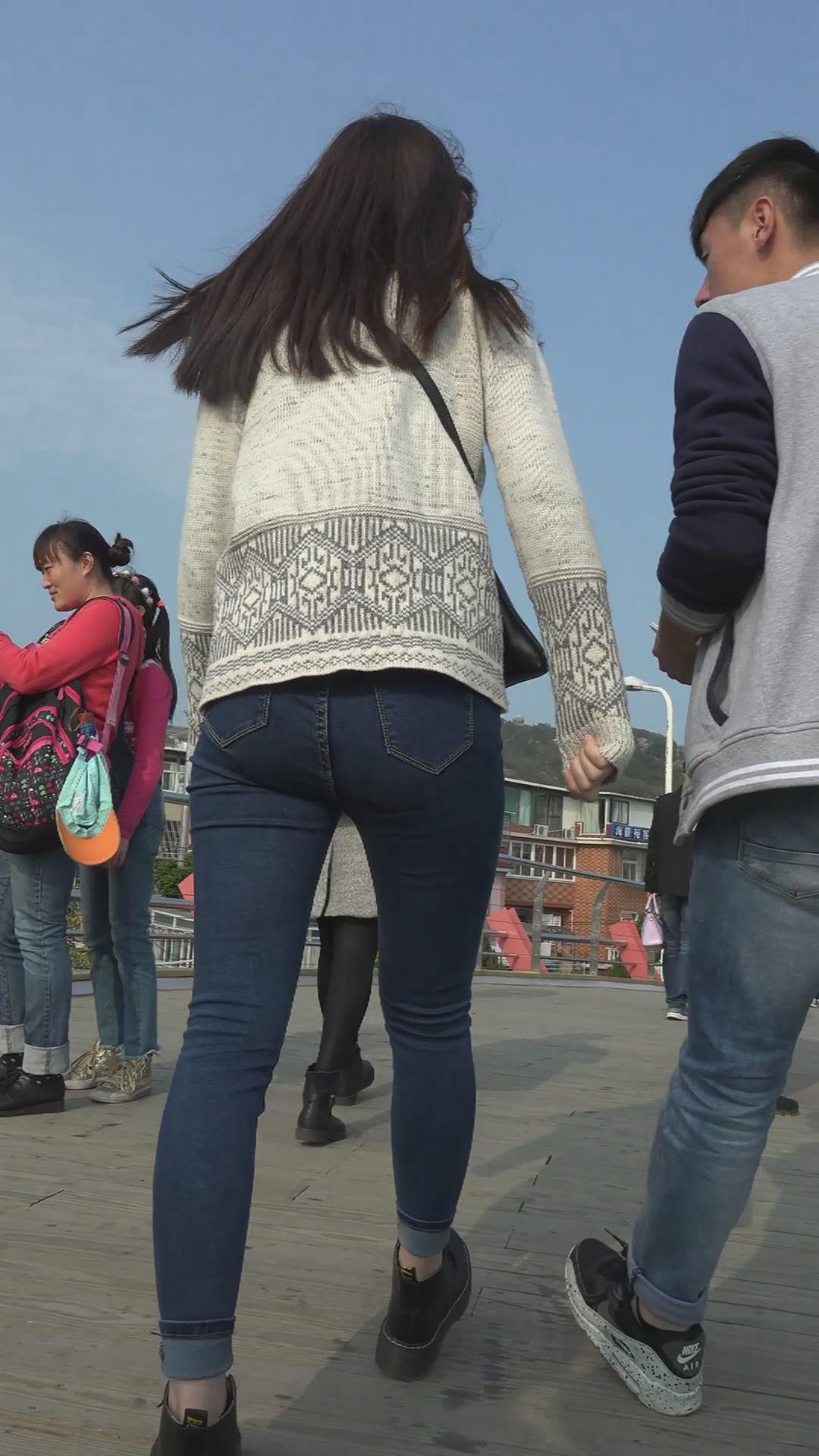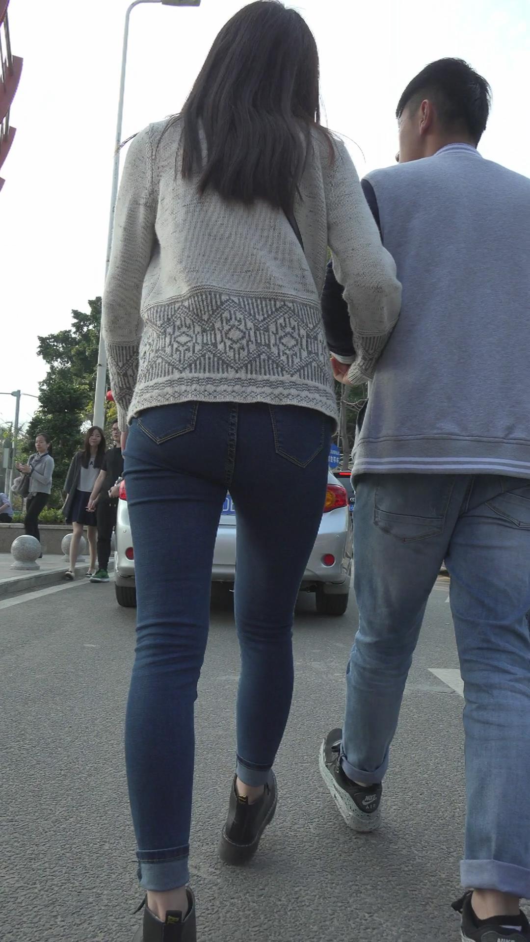 跟拍超紧身蓝色牛仔裤清纯小学妹 编号6136