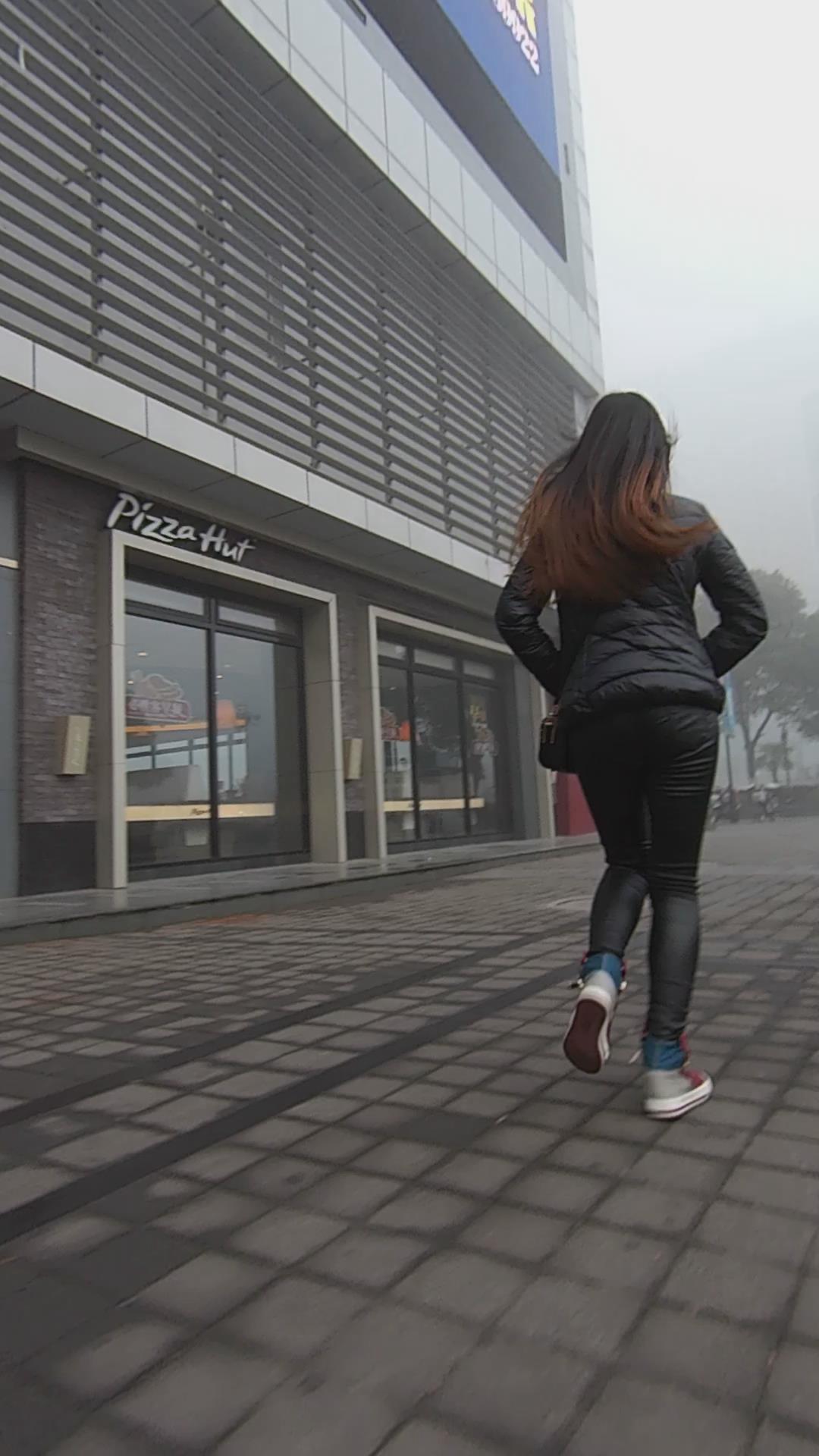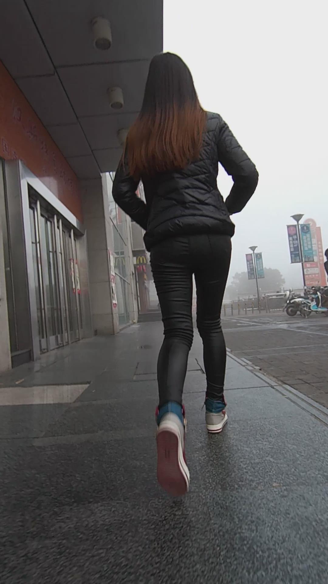 雾霾天早晨上班的紧身皮裤美眉 编号5544