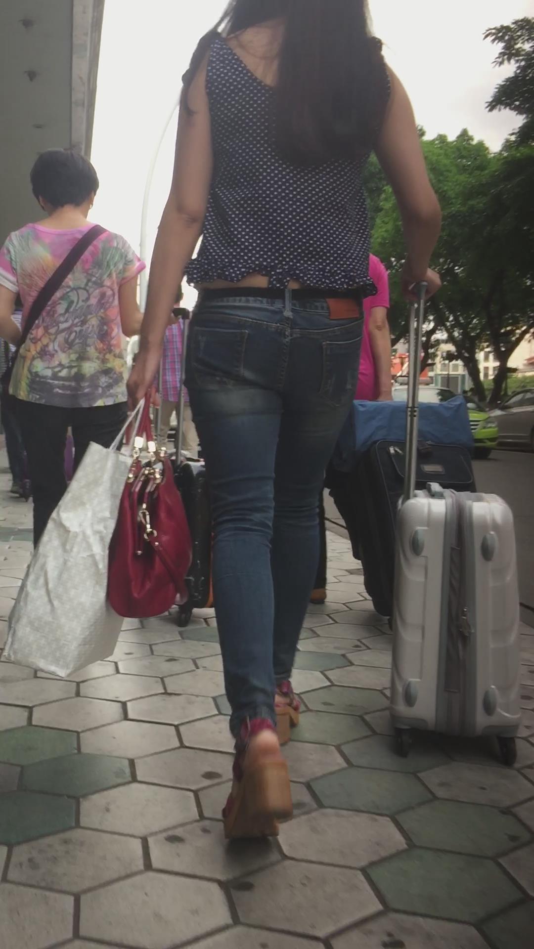 跟拍赶车的蓝牛丰臀斑点衣服美眉 编号5557