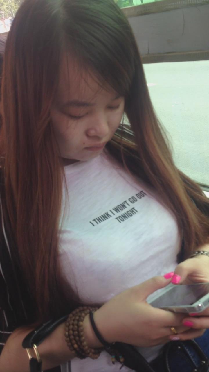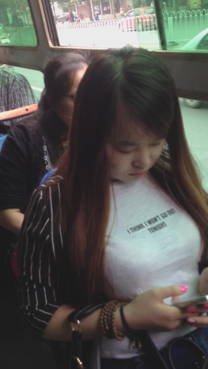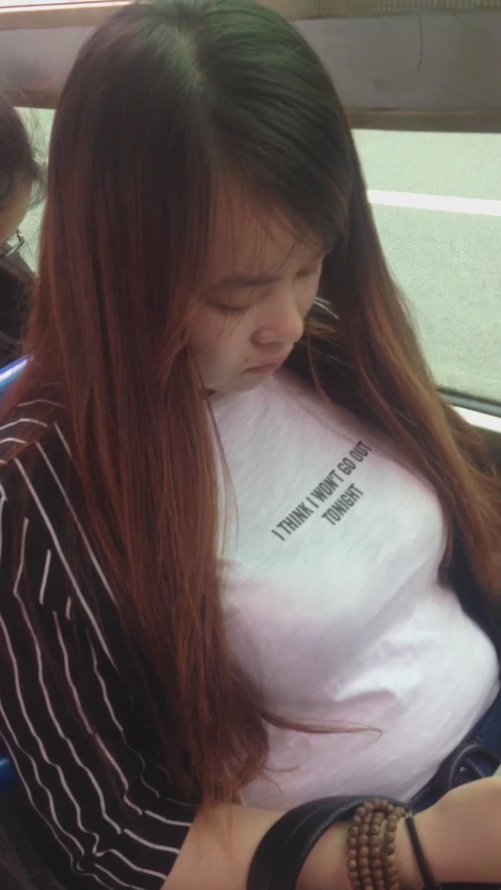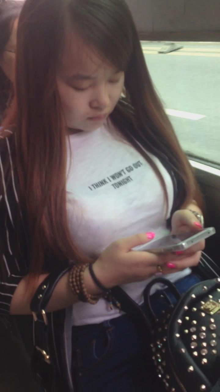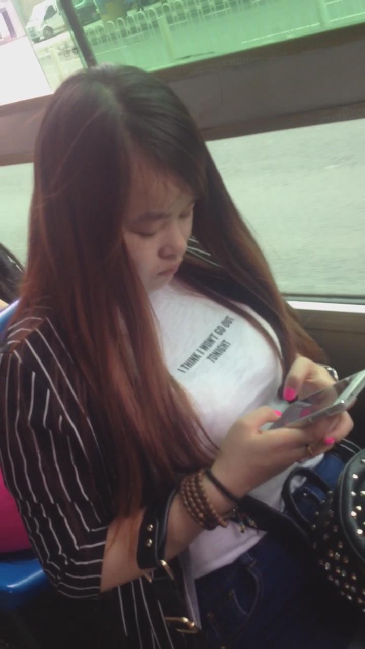 公车上低头玩手机的大咪咪美女 编号5562