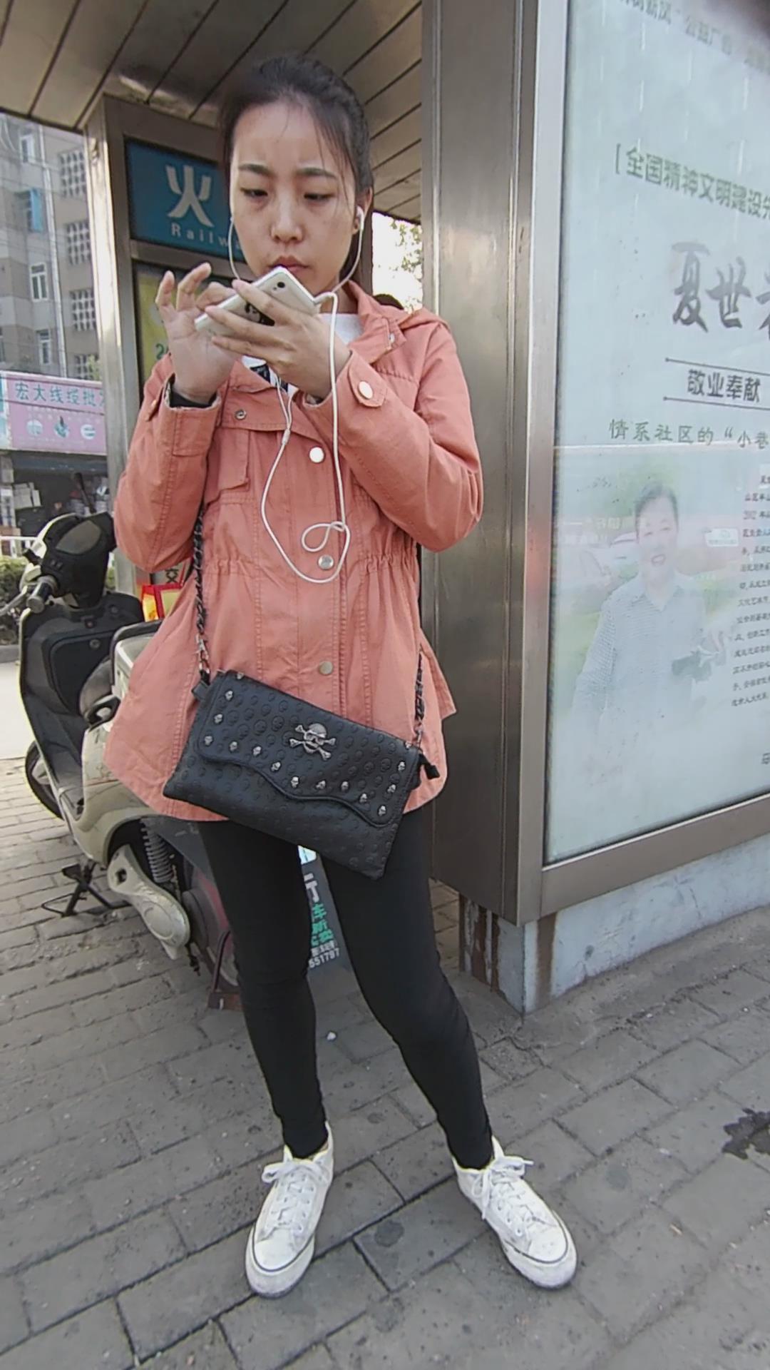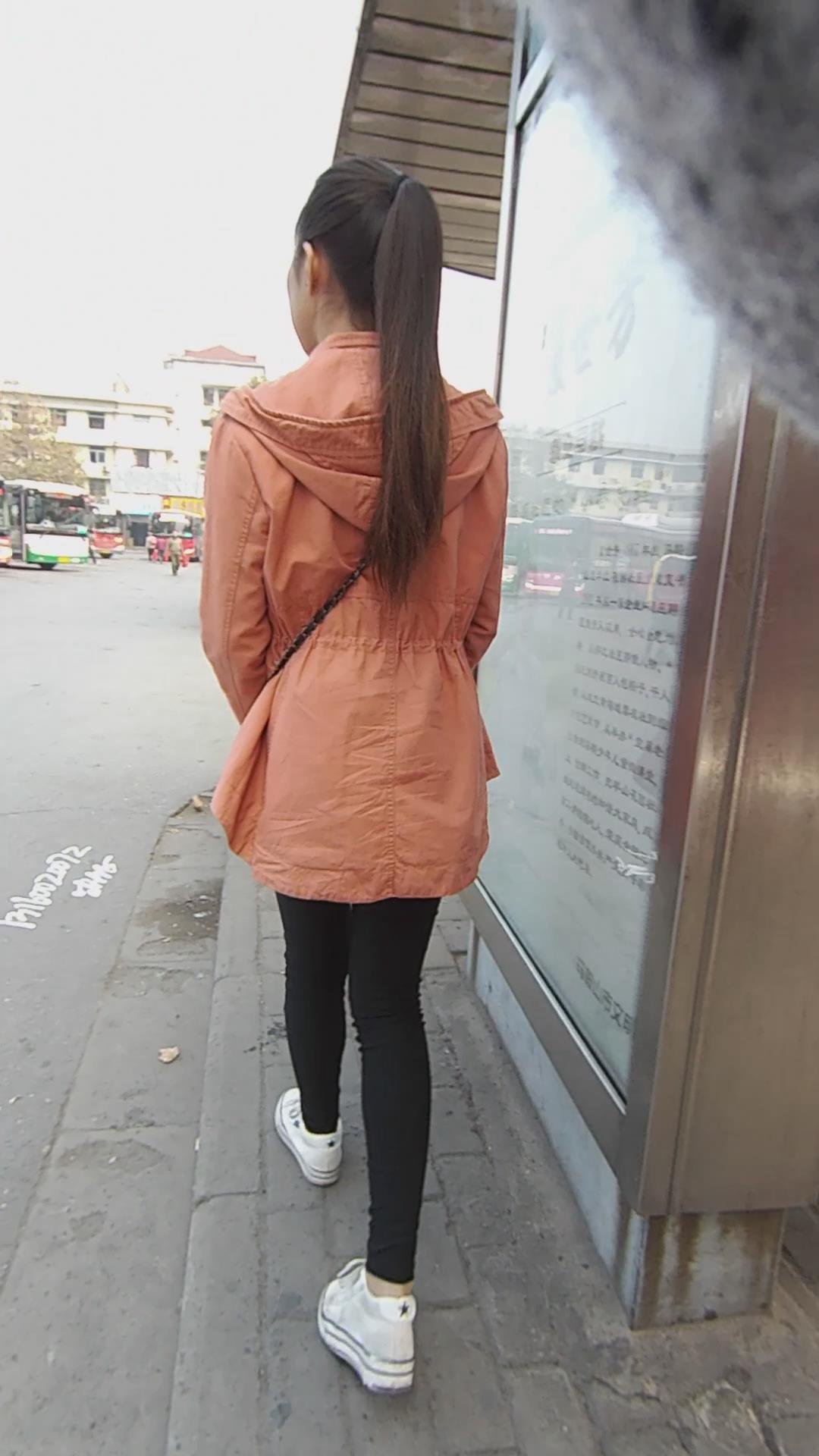 公交站等车的清纯马尾辫小美女 编号5567