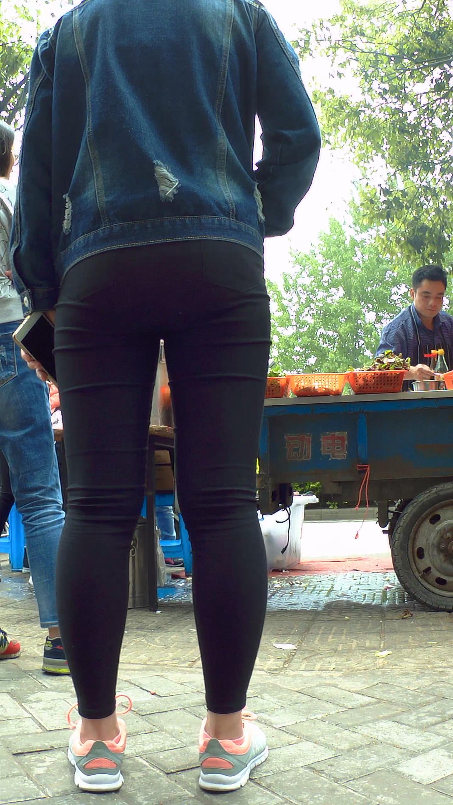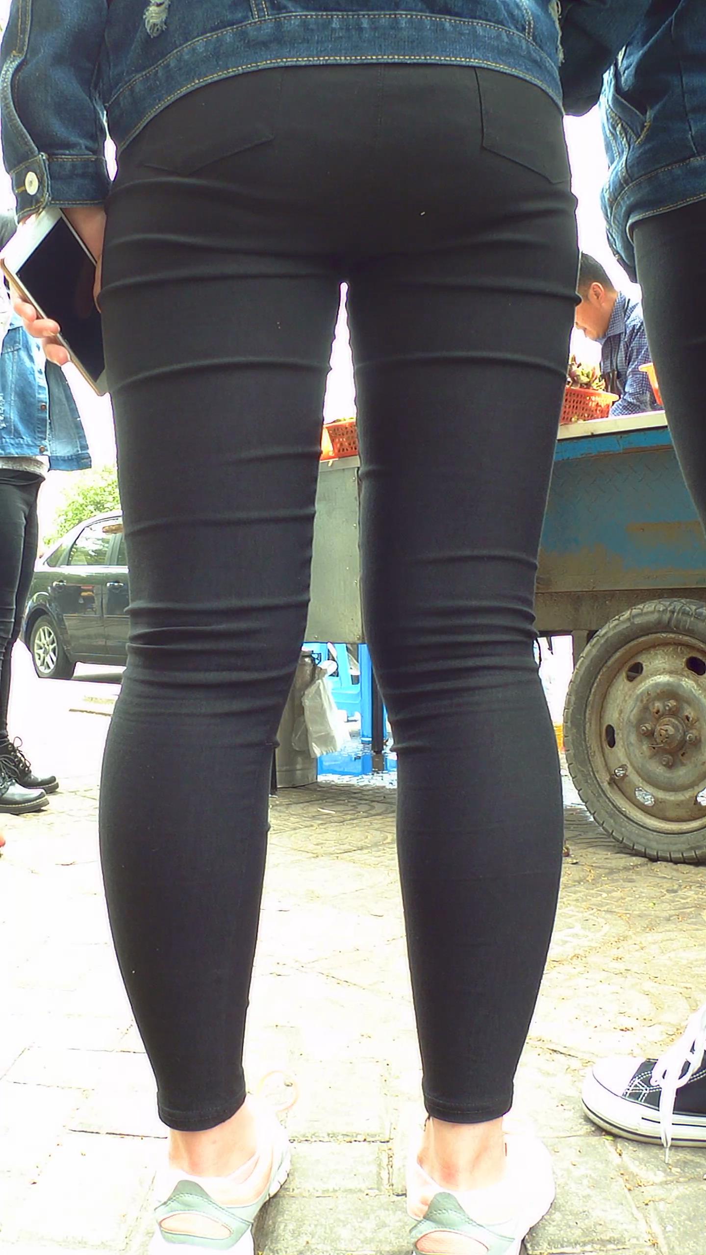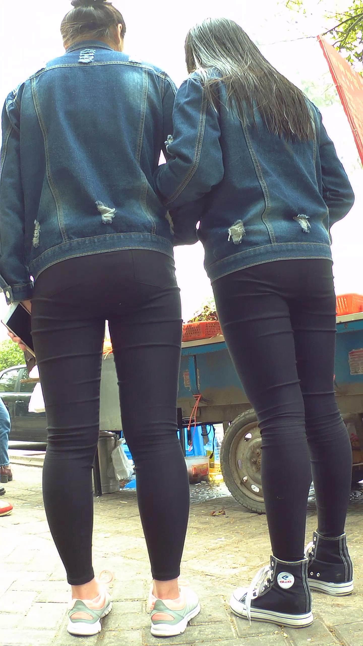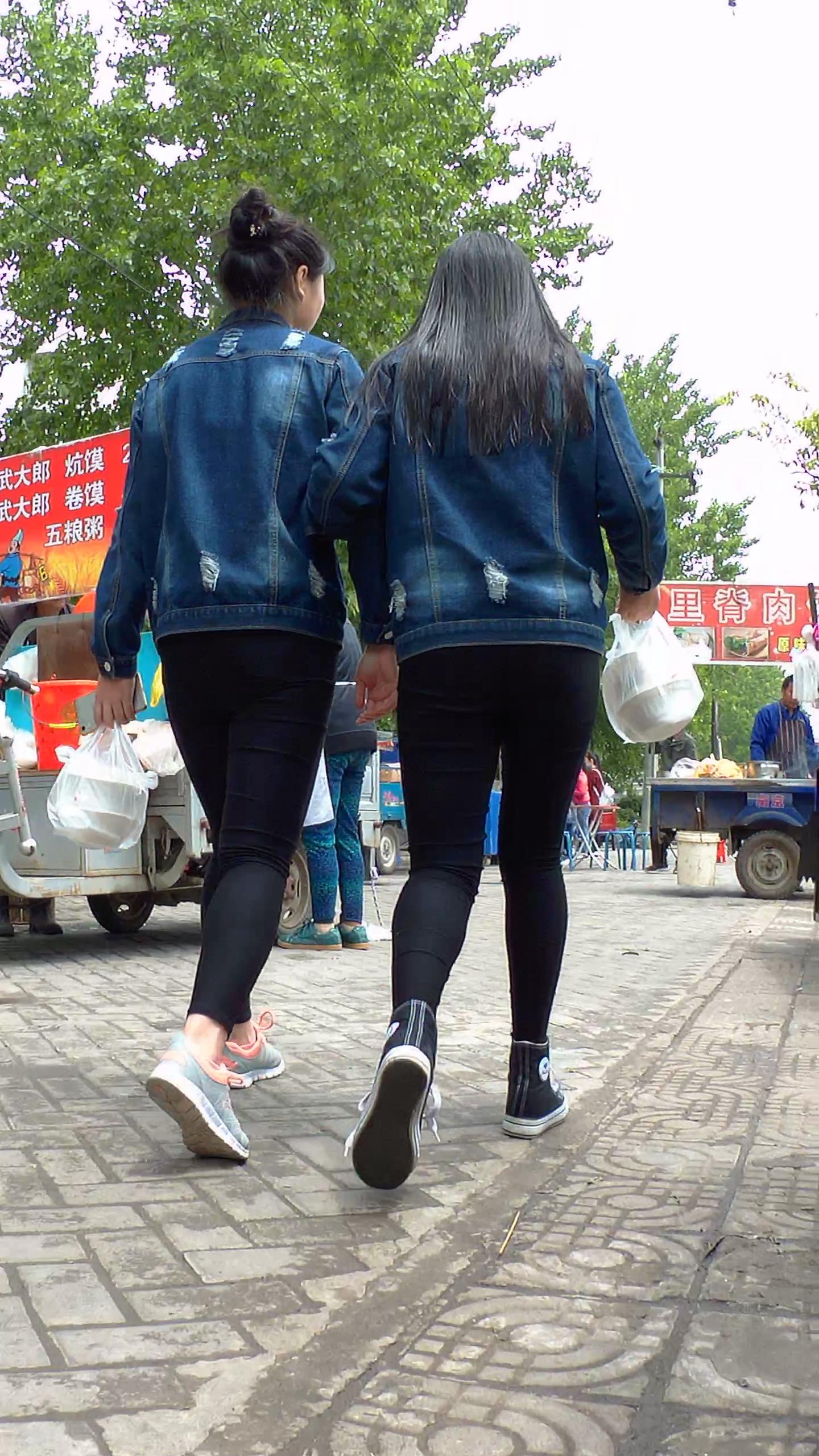 街拍紧身黑裤牛仔小外套俩姐妹 编号5572