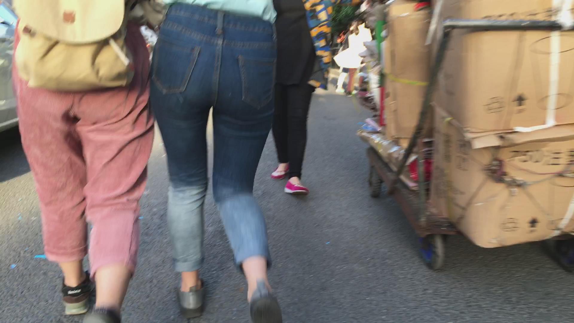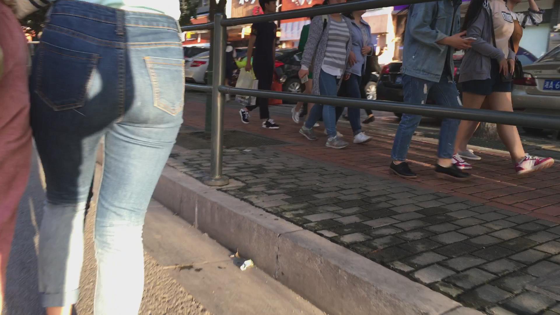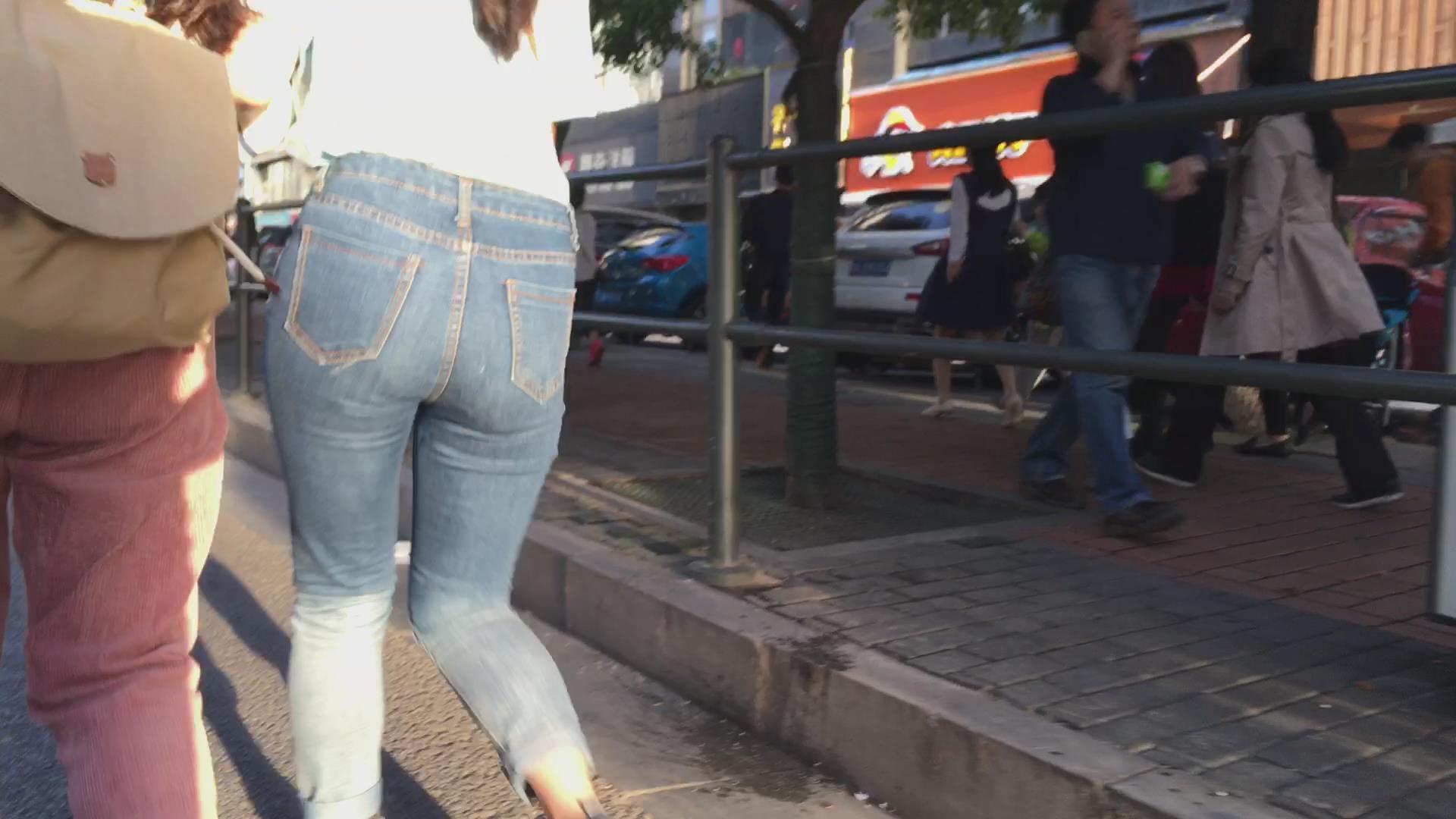 丰满肉臀紧身蓝色牛仔裤妹子 编号5590
