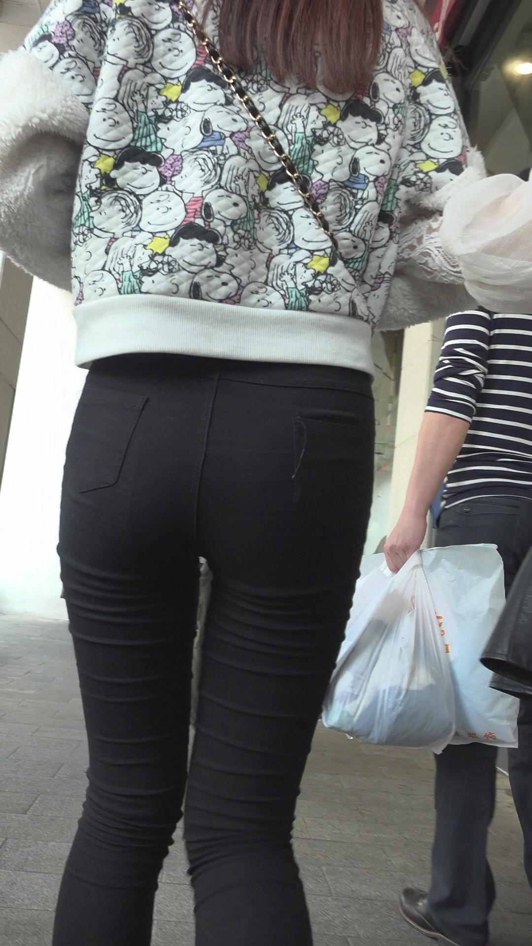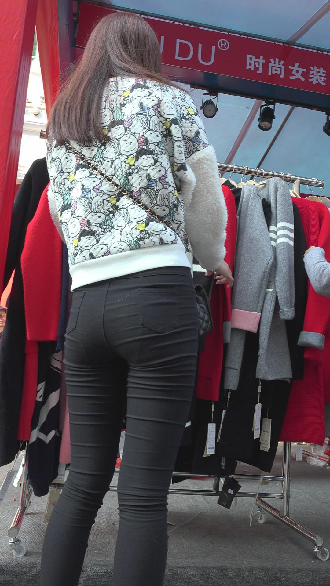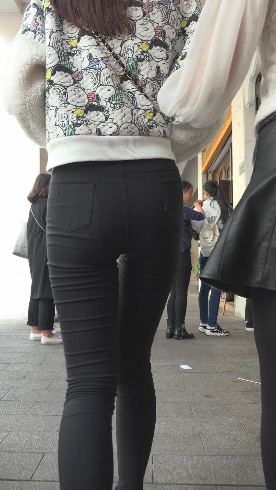 黑色紧身裤苹果臀美眉 编号5599
