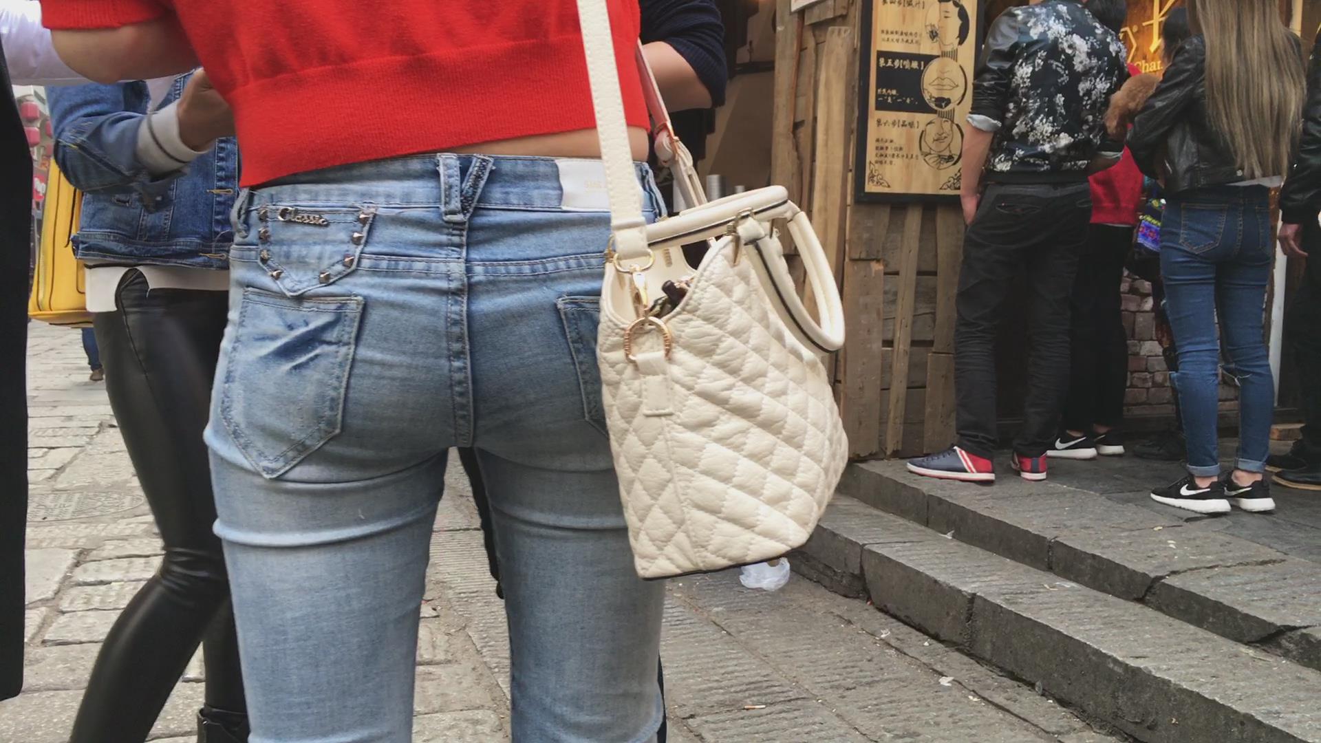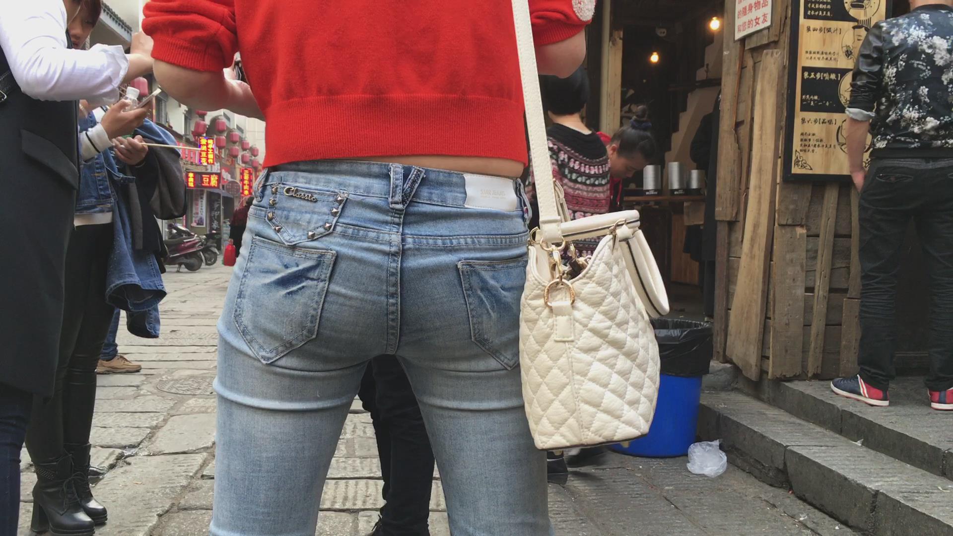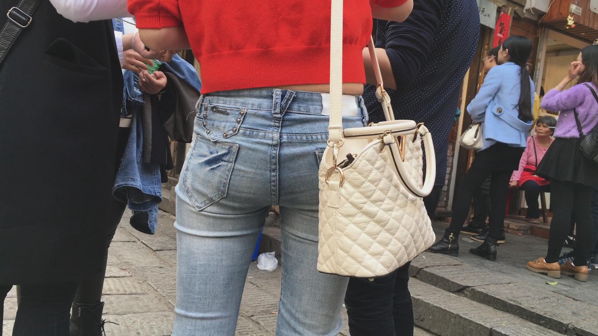 俏丽美臀紧身蓝牛美女 编号5601