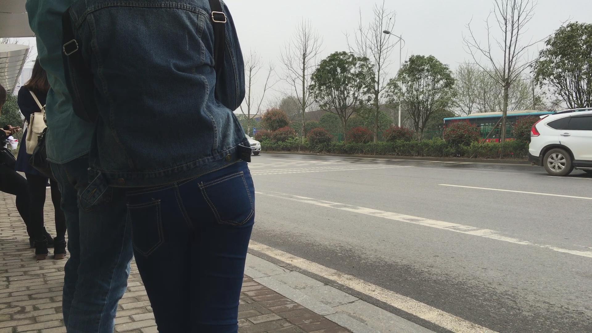 蓝色紧身牛仔裤美眉 编号5611