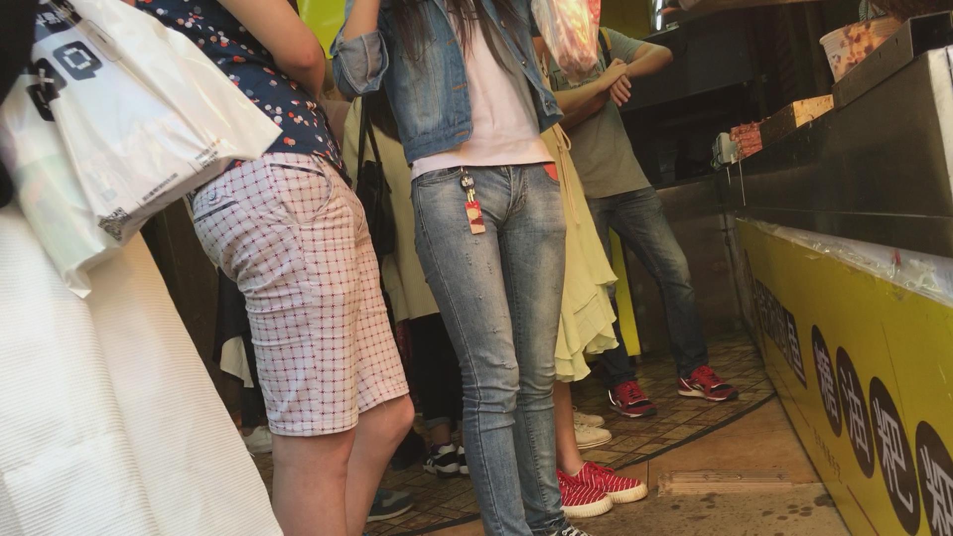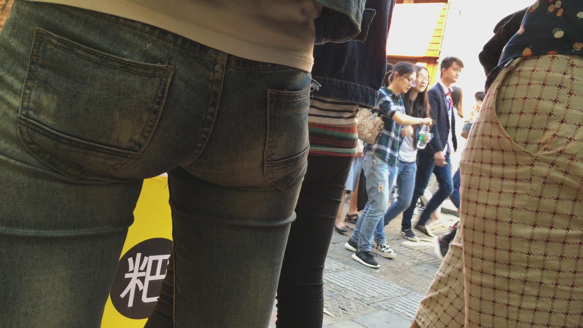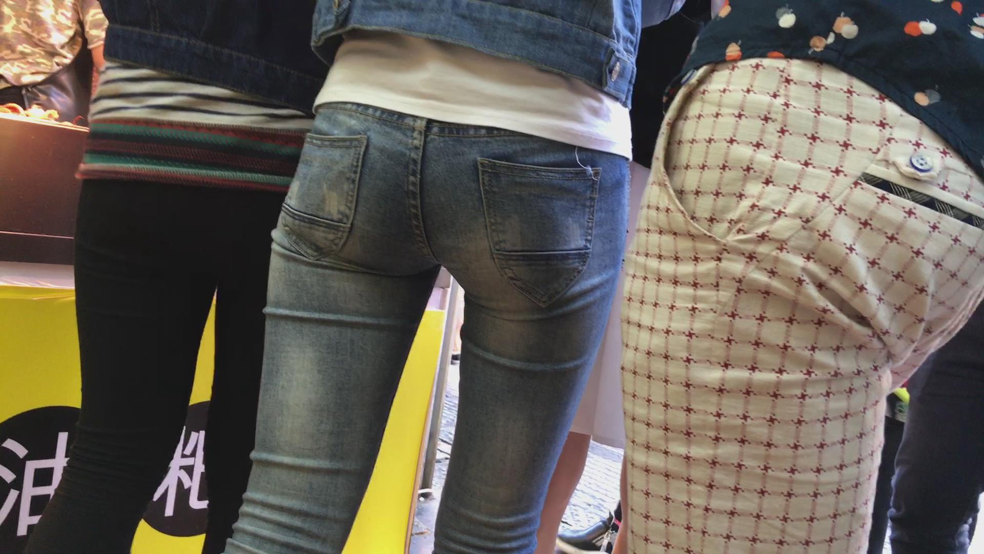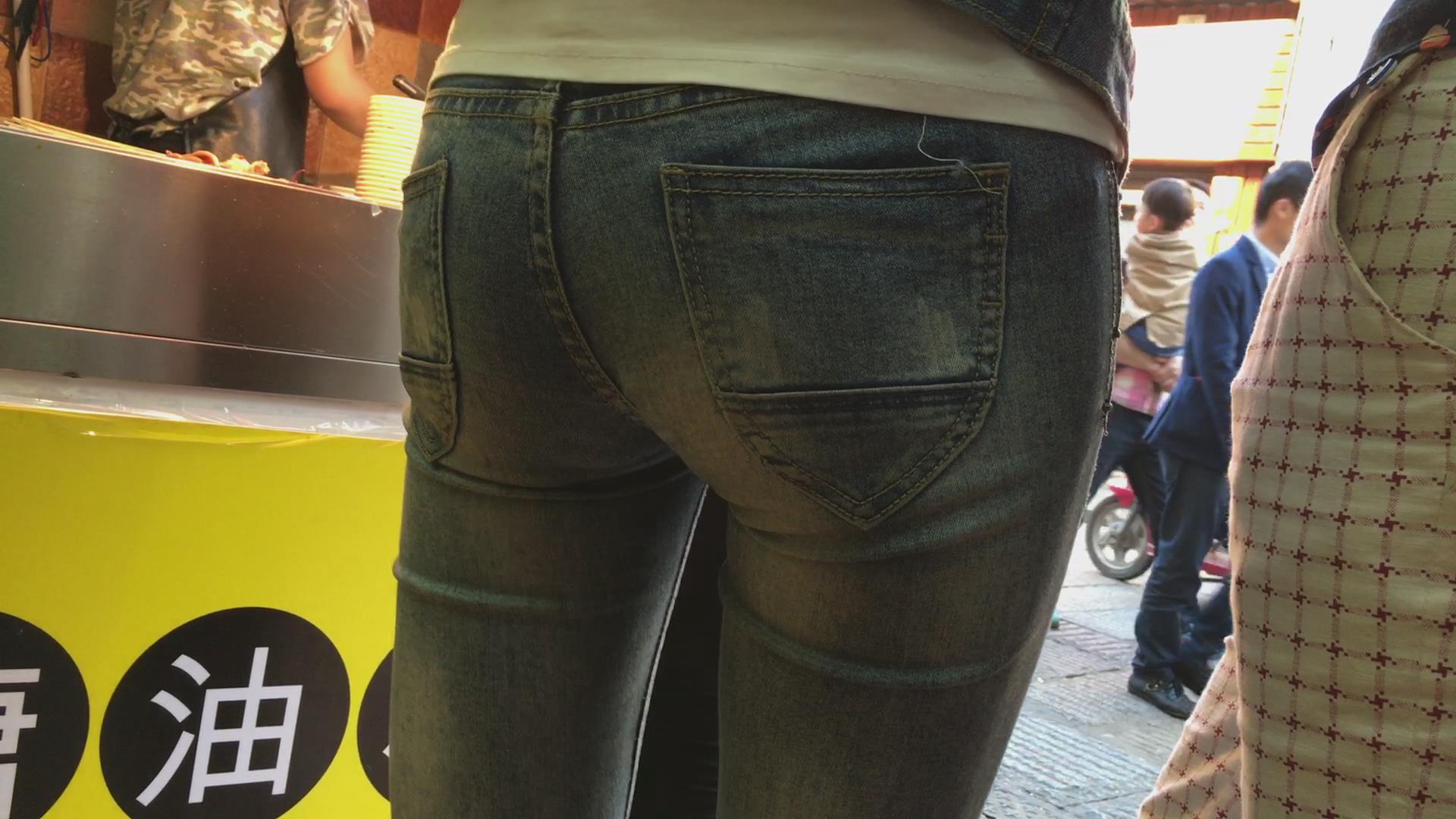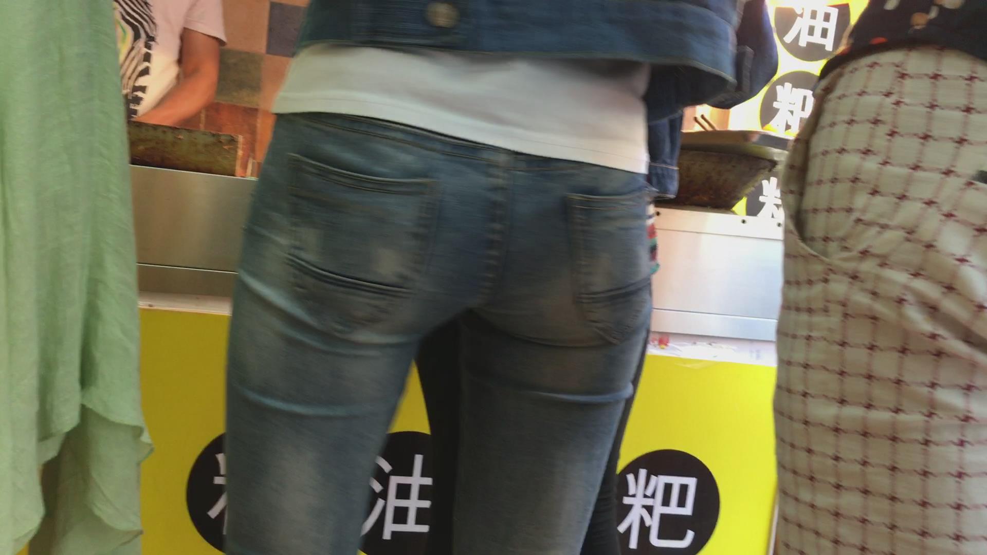 紧身蓝色牛仔裤极品美女 编号5613