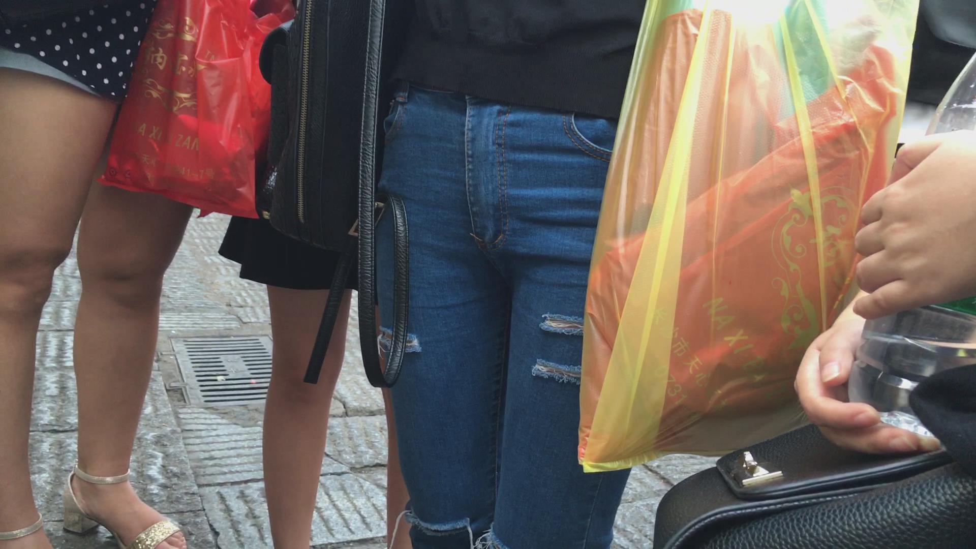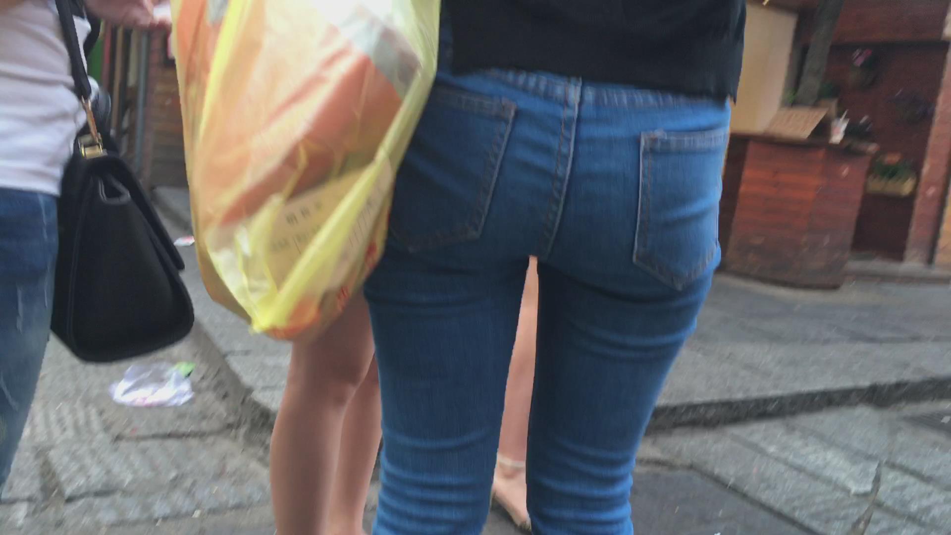 街拍蓝色牛仔裤美臀MM 编号5629