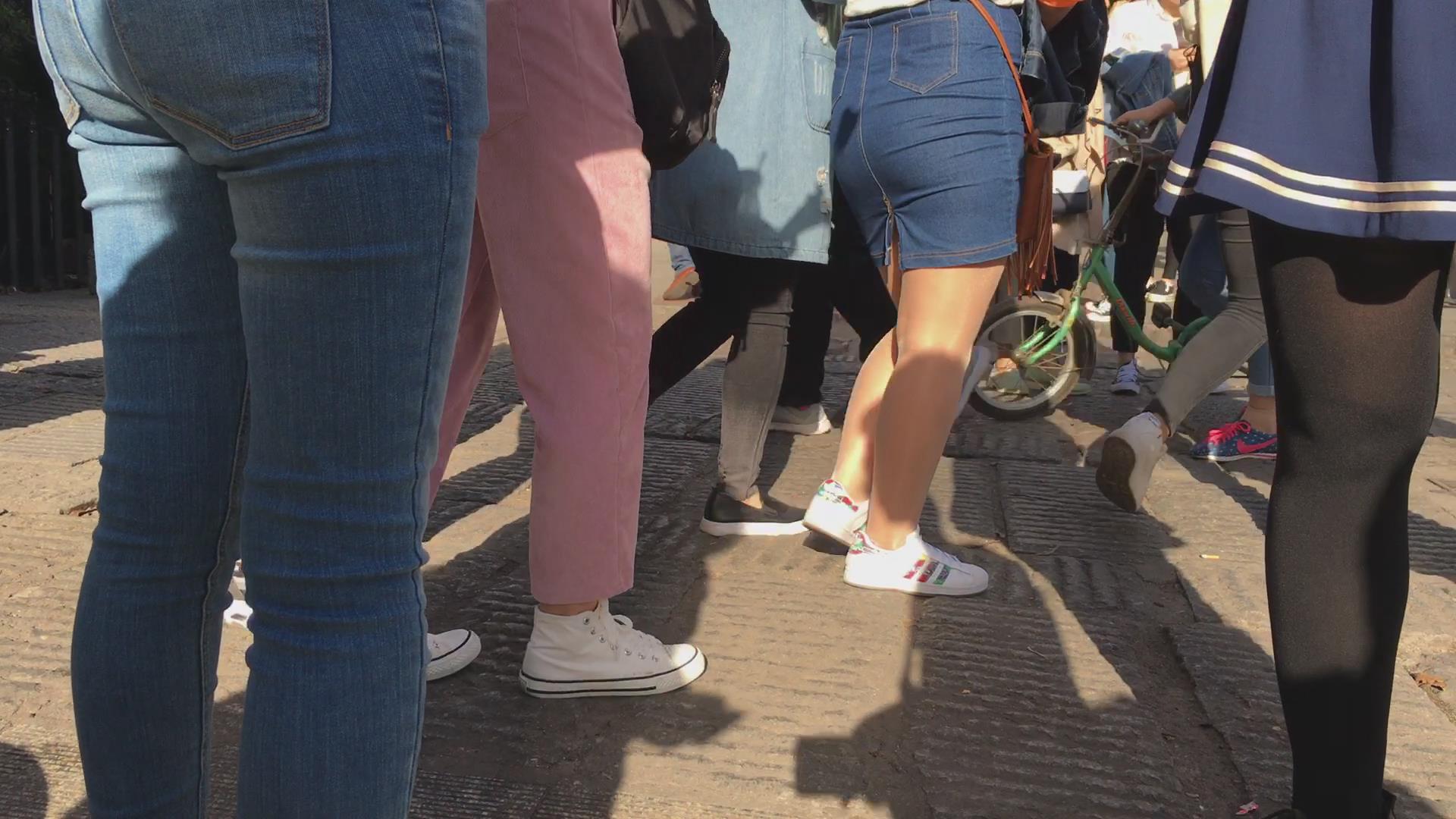 街拍超紧身蓝色牛仔裤宽臀美女 编号5633
