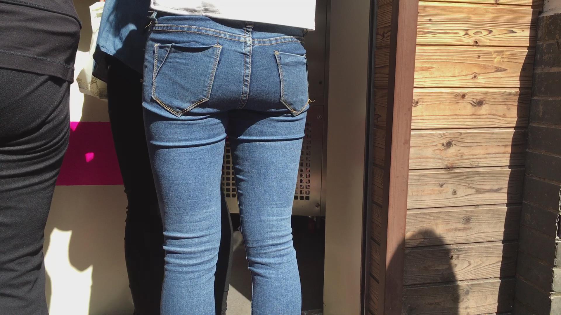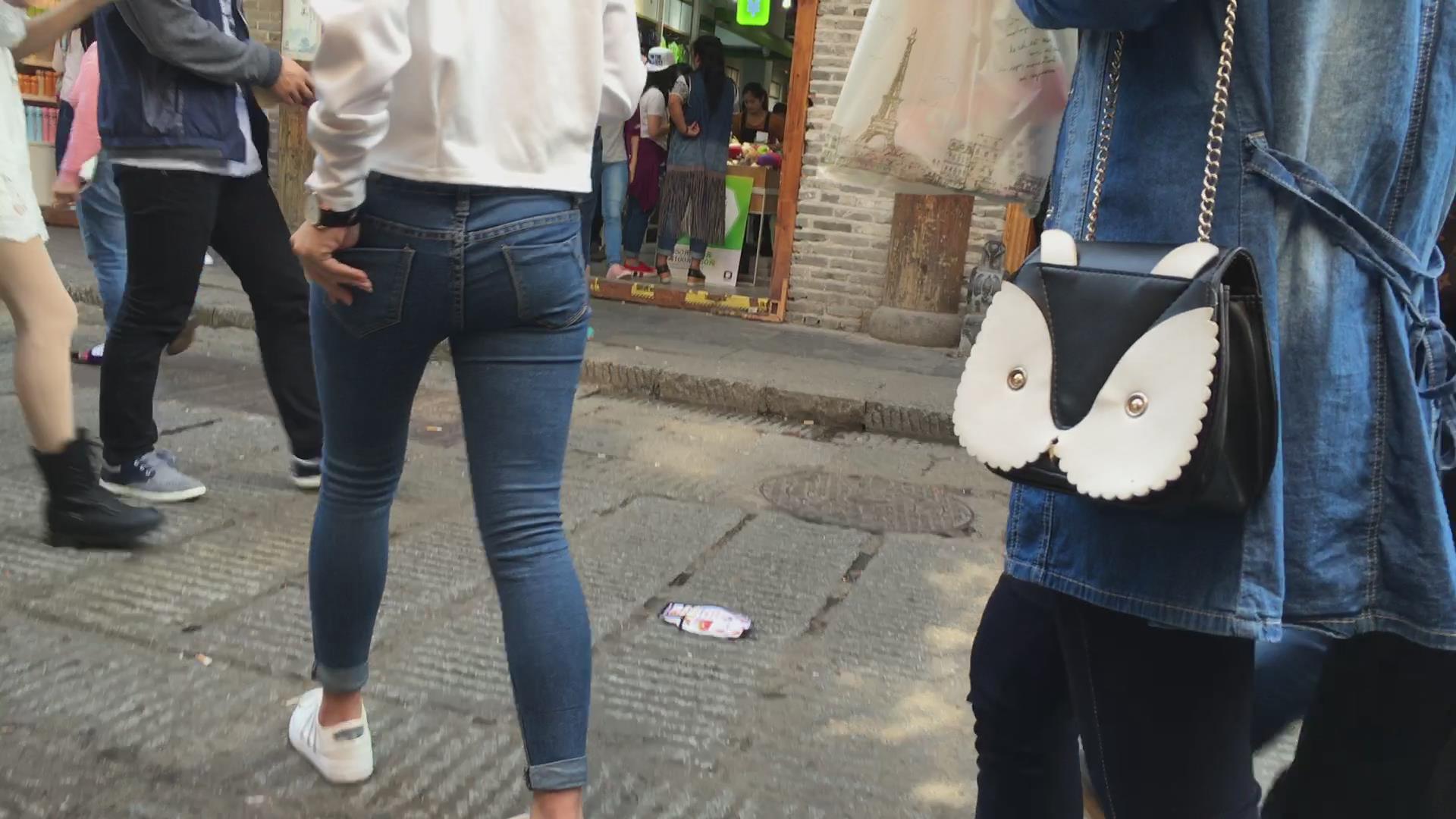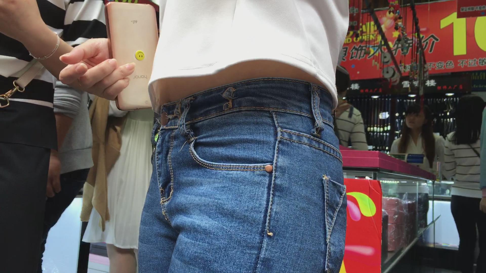 美臀紧身蓝色牛仔裤女孩 编号5638