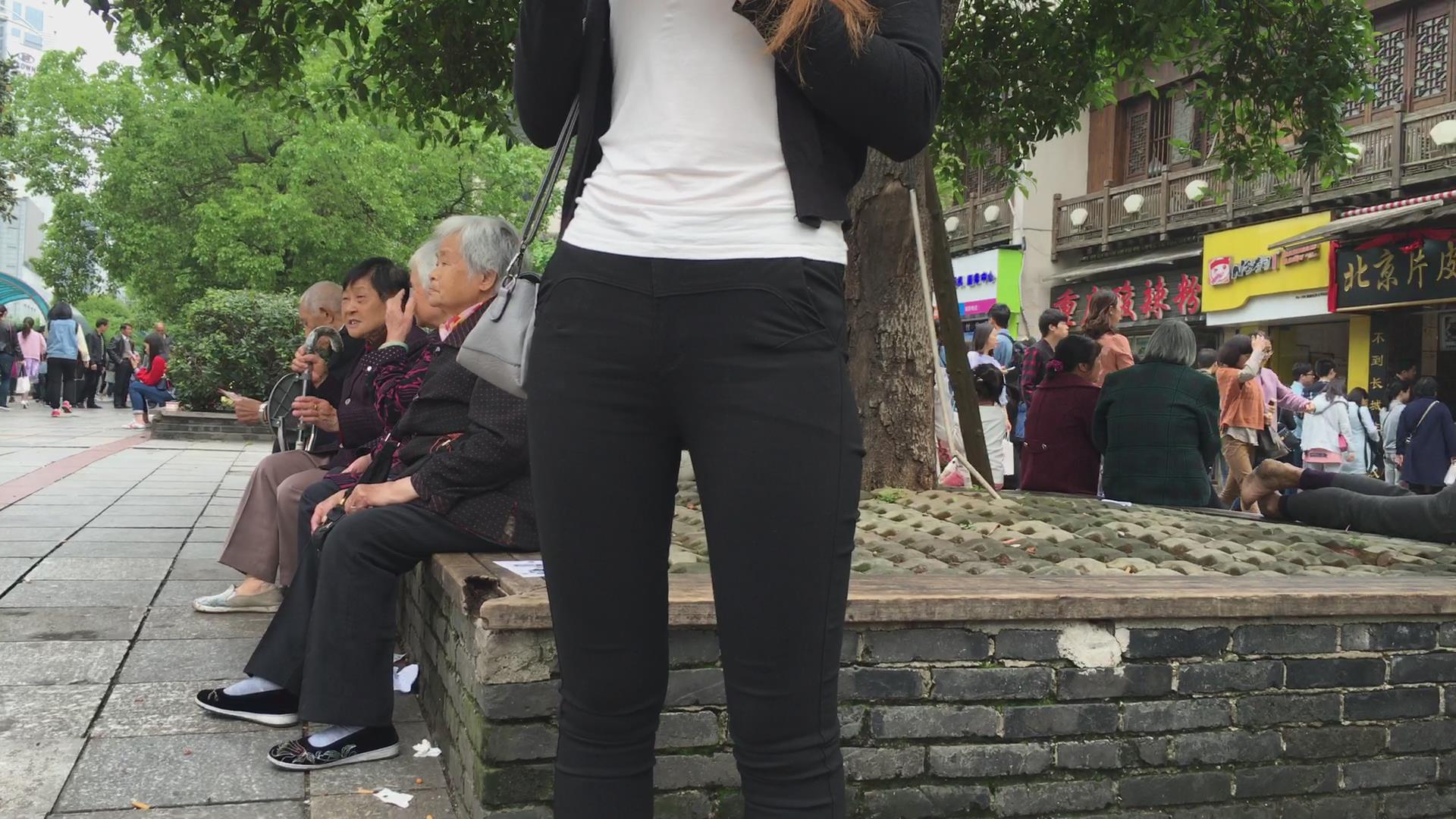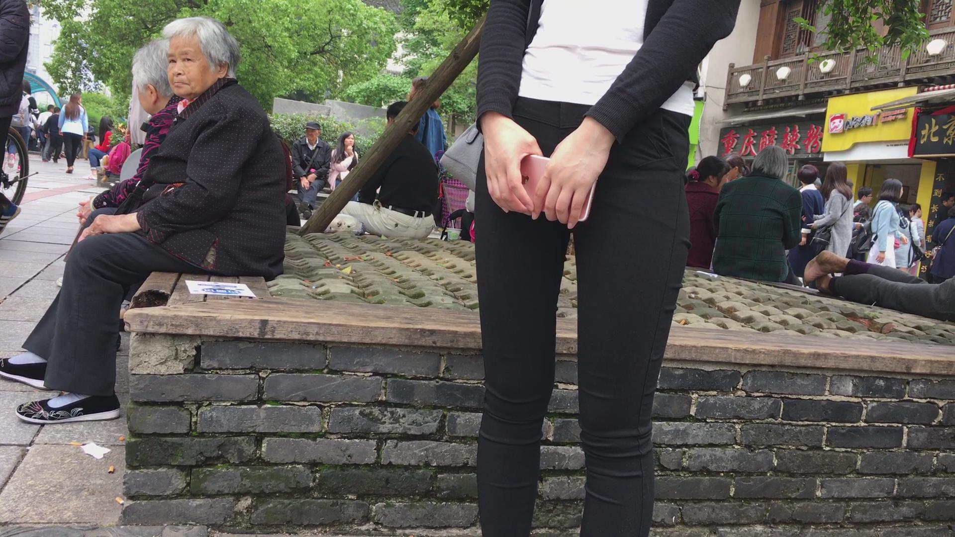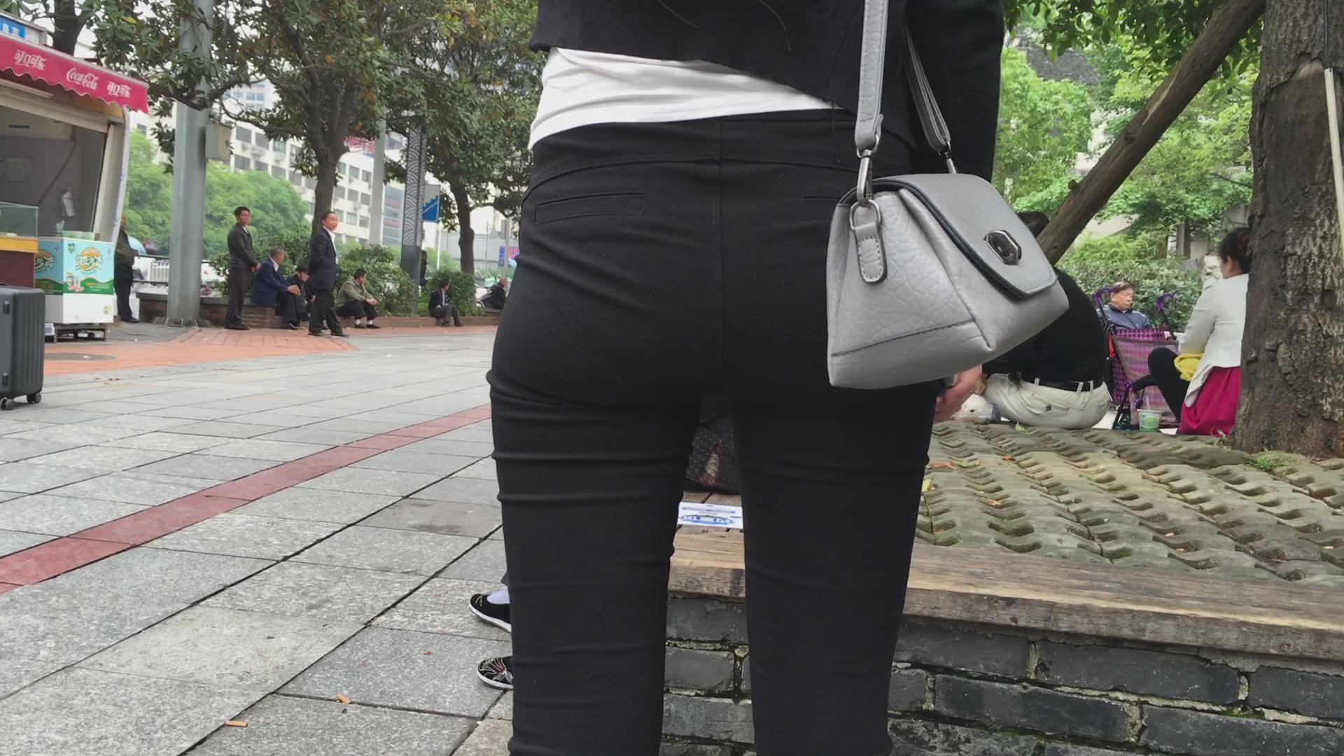 街拍紧身黑裤颜值小美女 编号5641