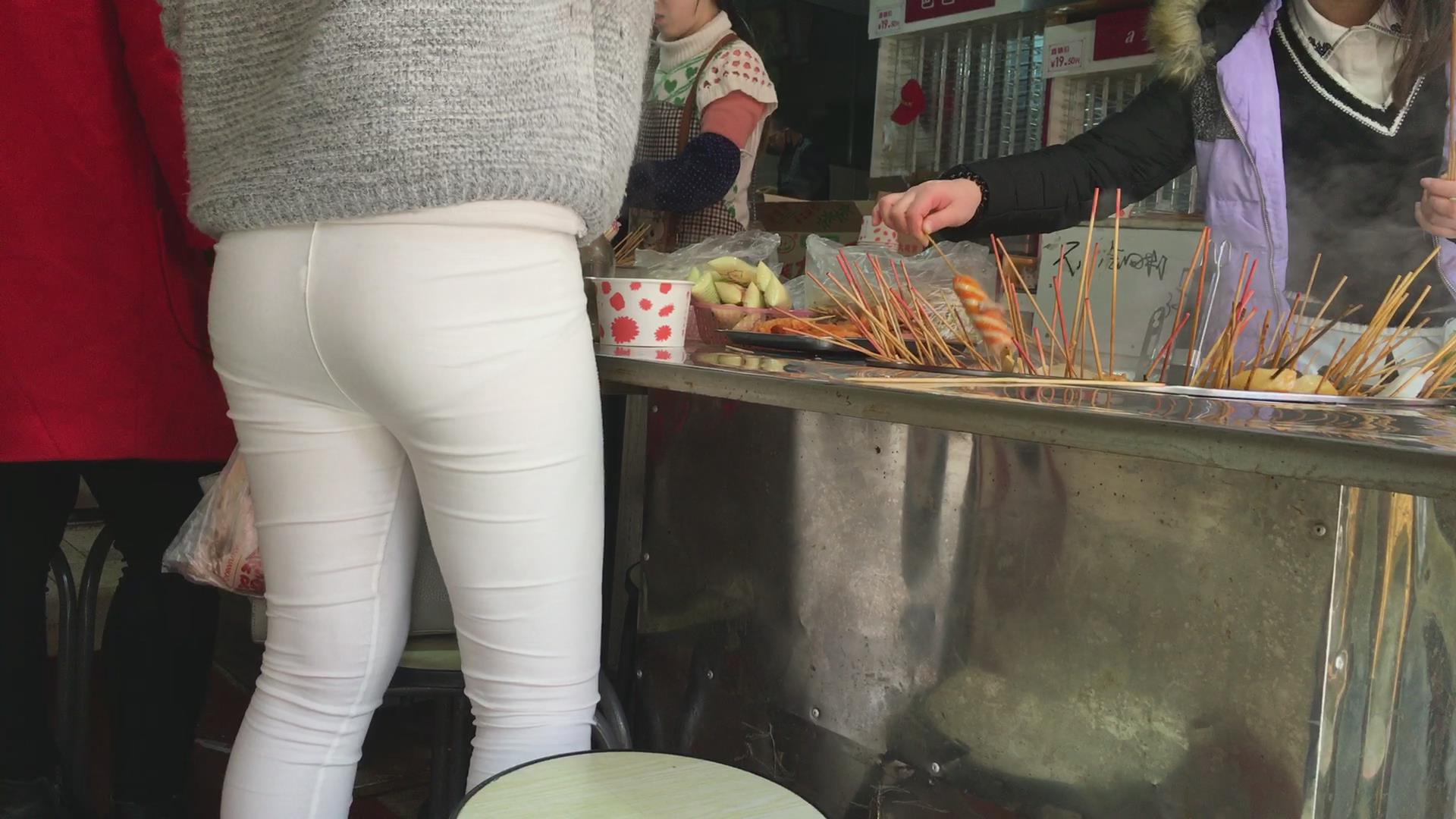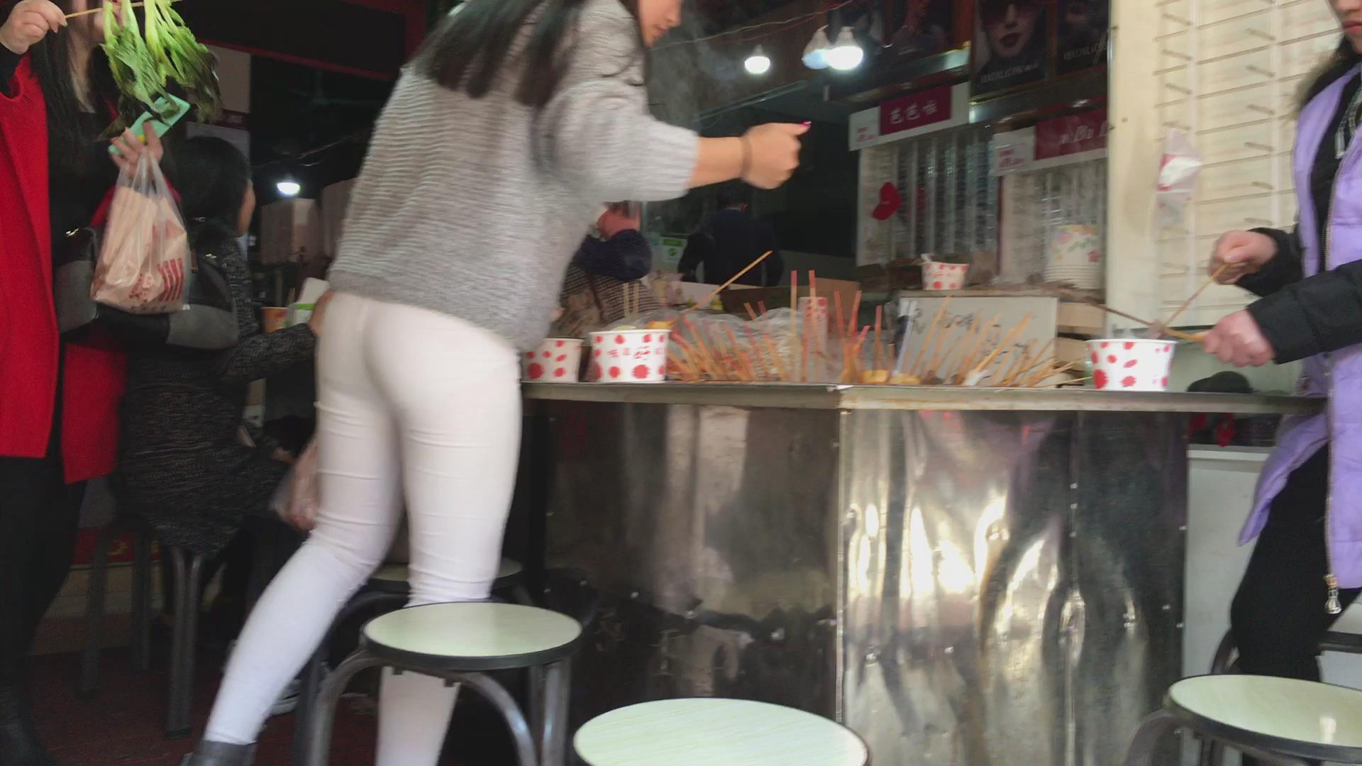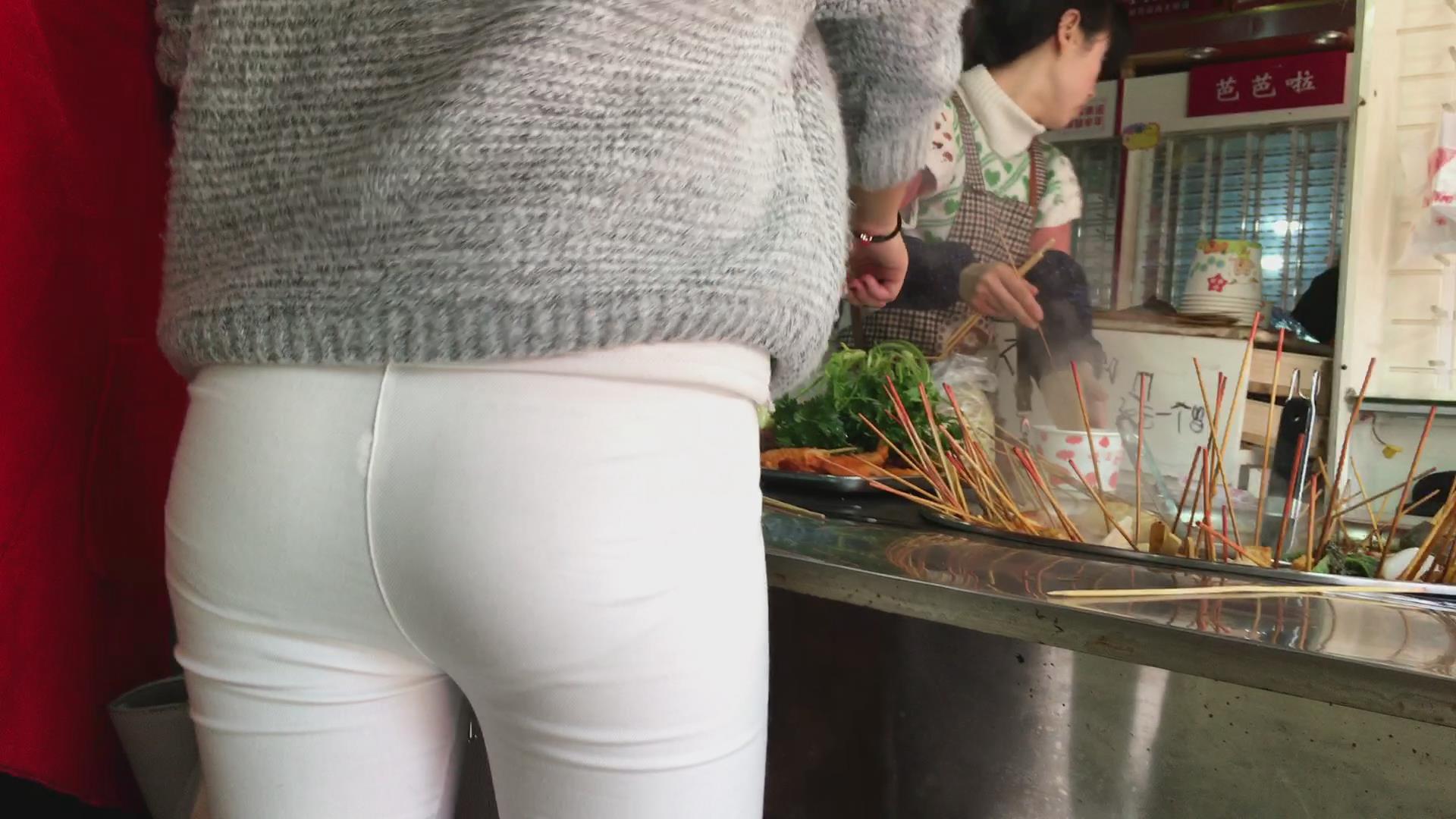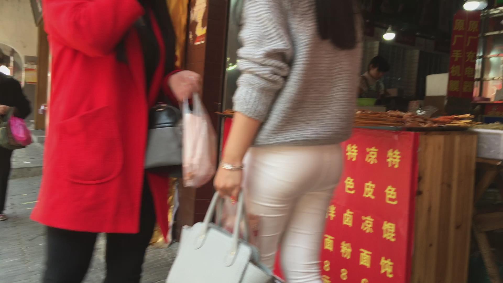 极品紧身白裤圆臀美女 编号5643