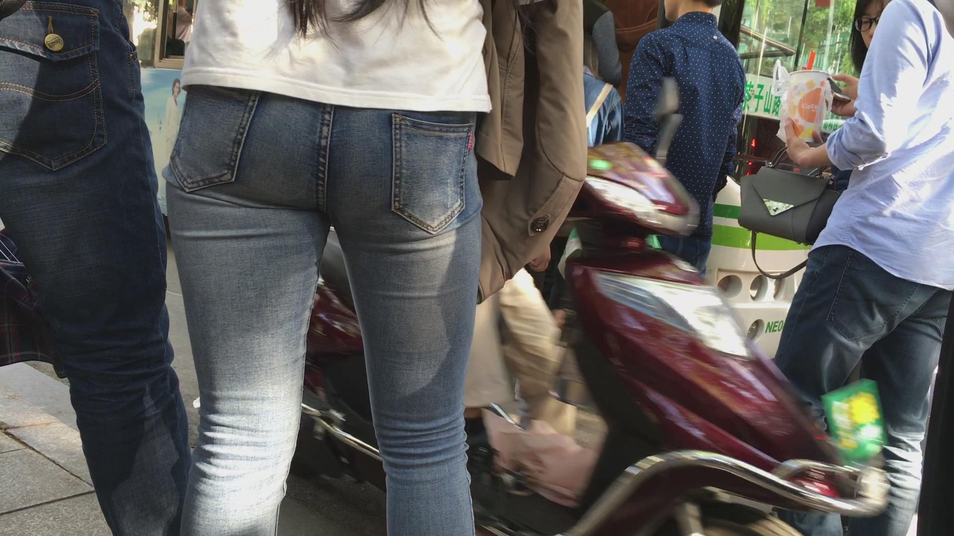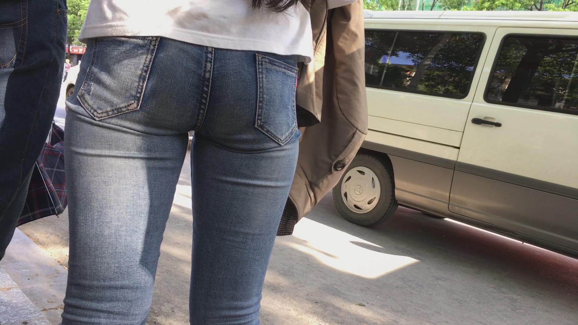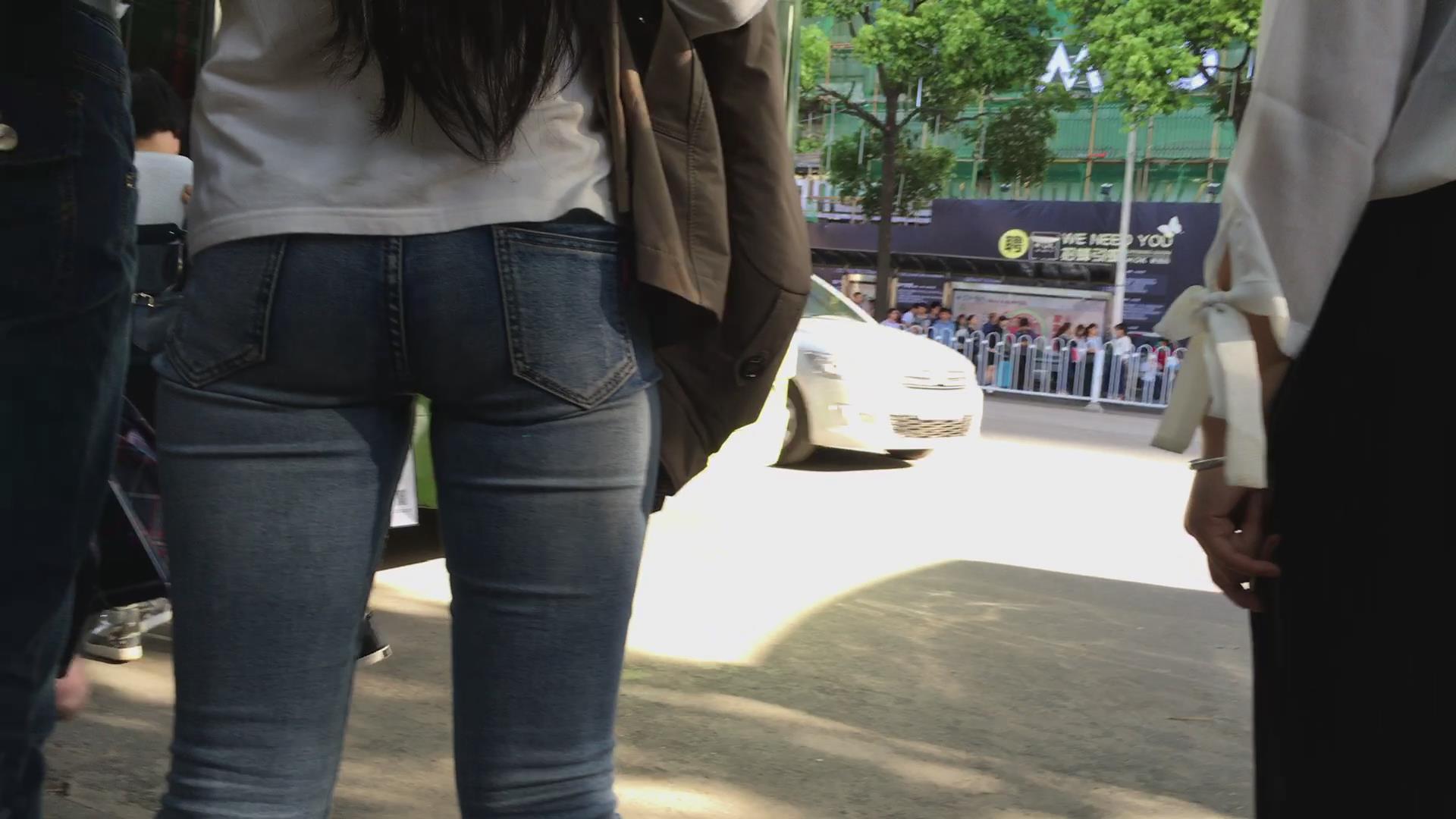 街拍等公交车的极品紧身蓝牛宽臀妹子 编号5649