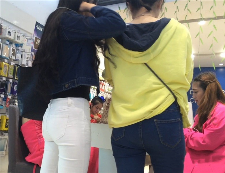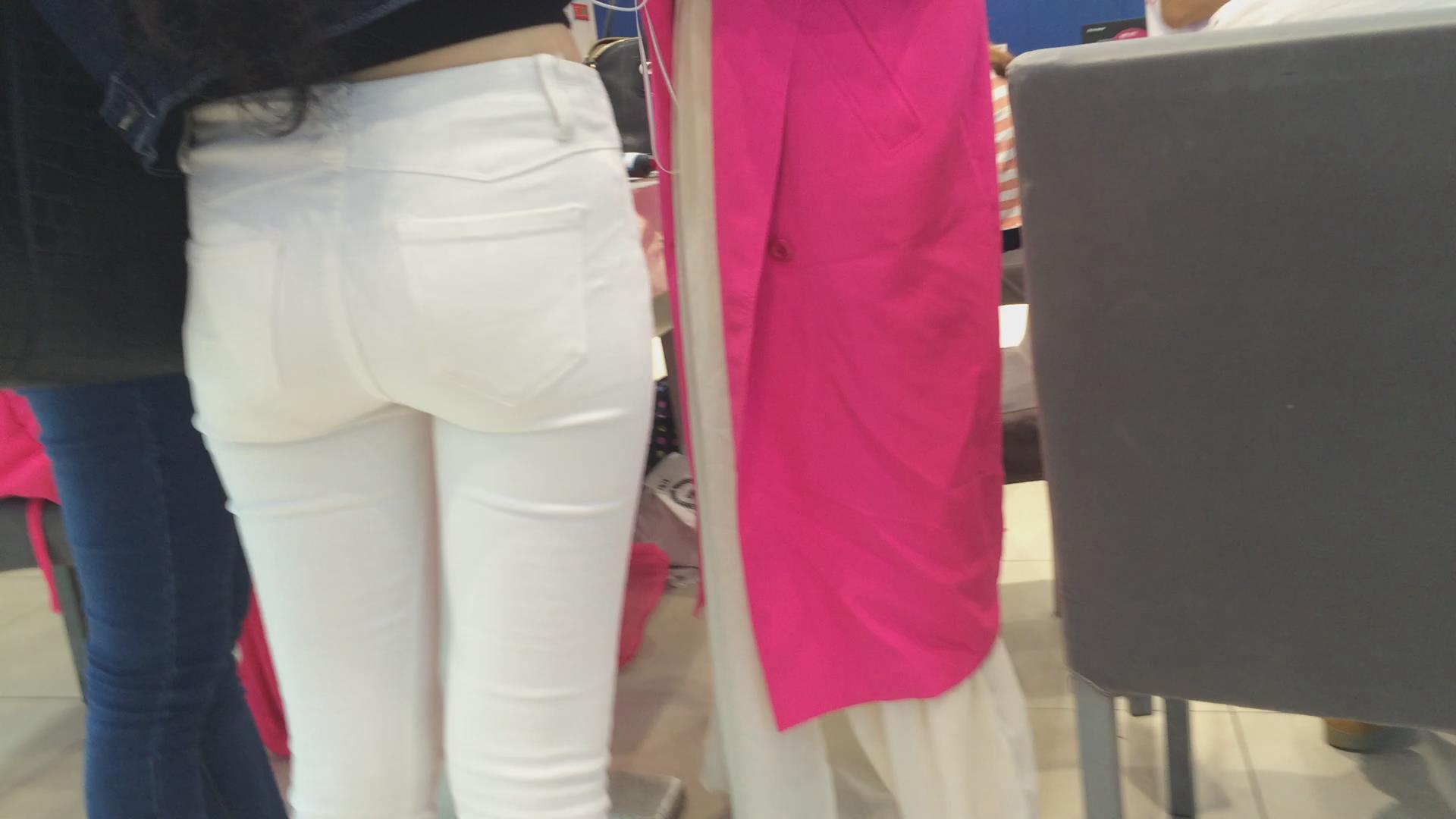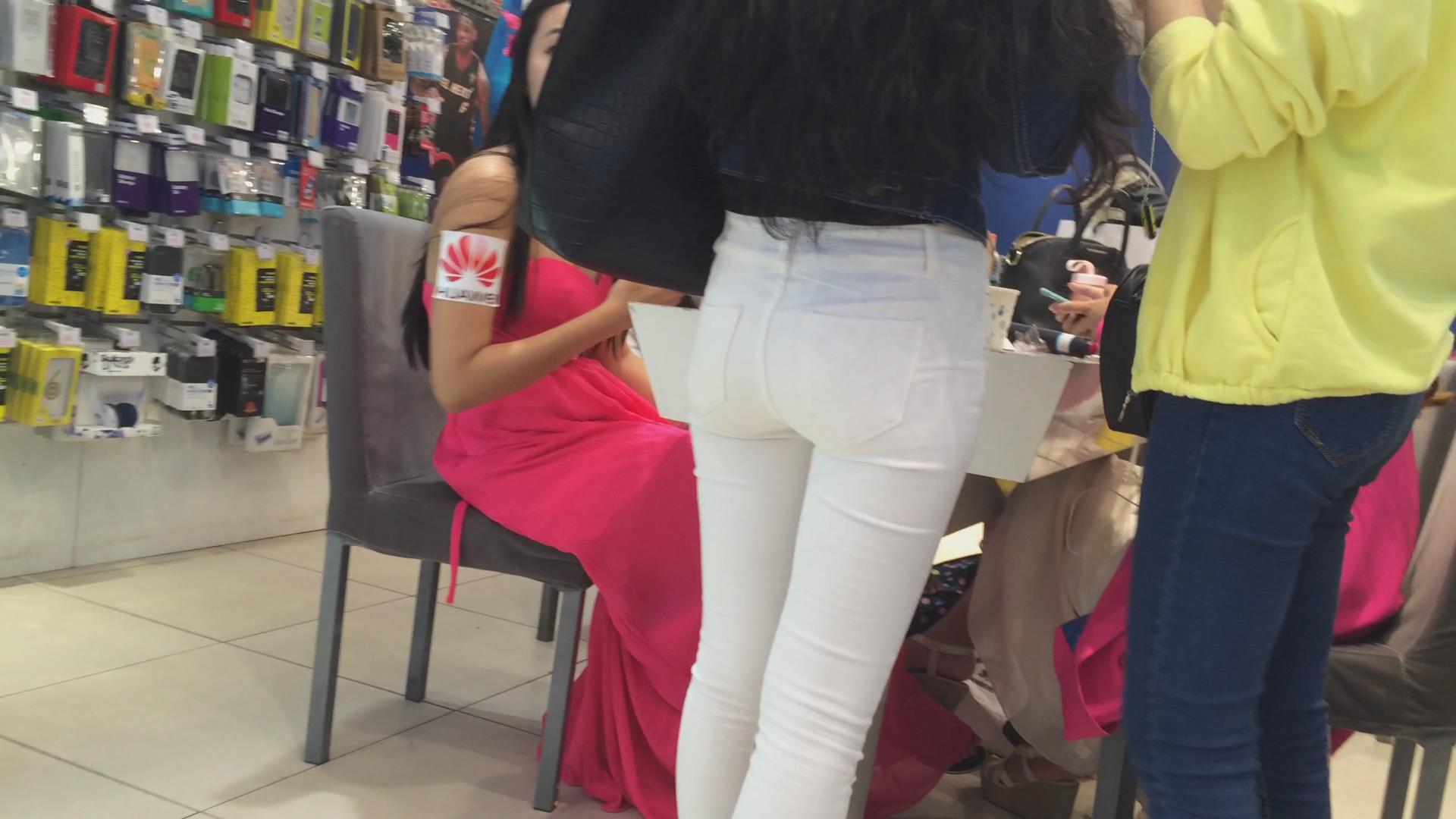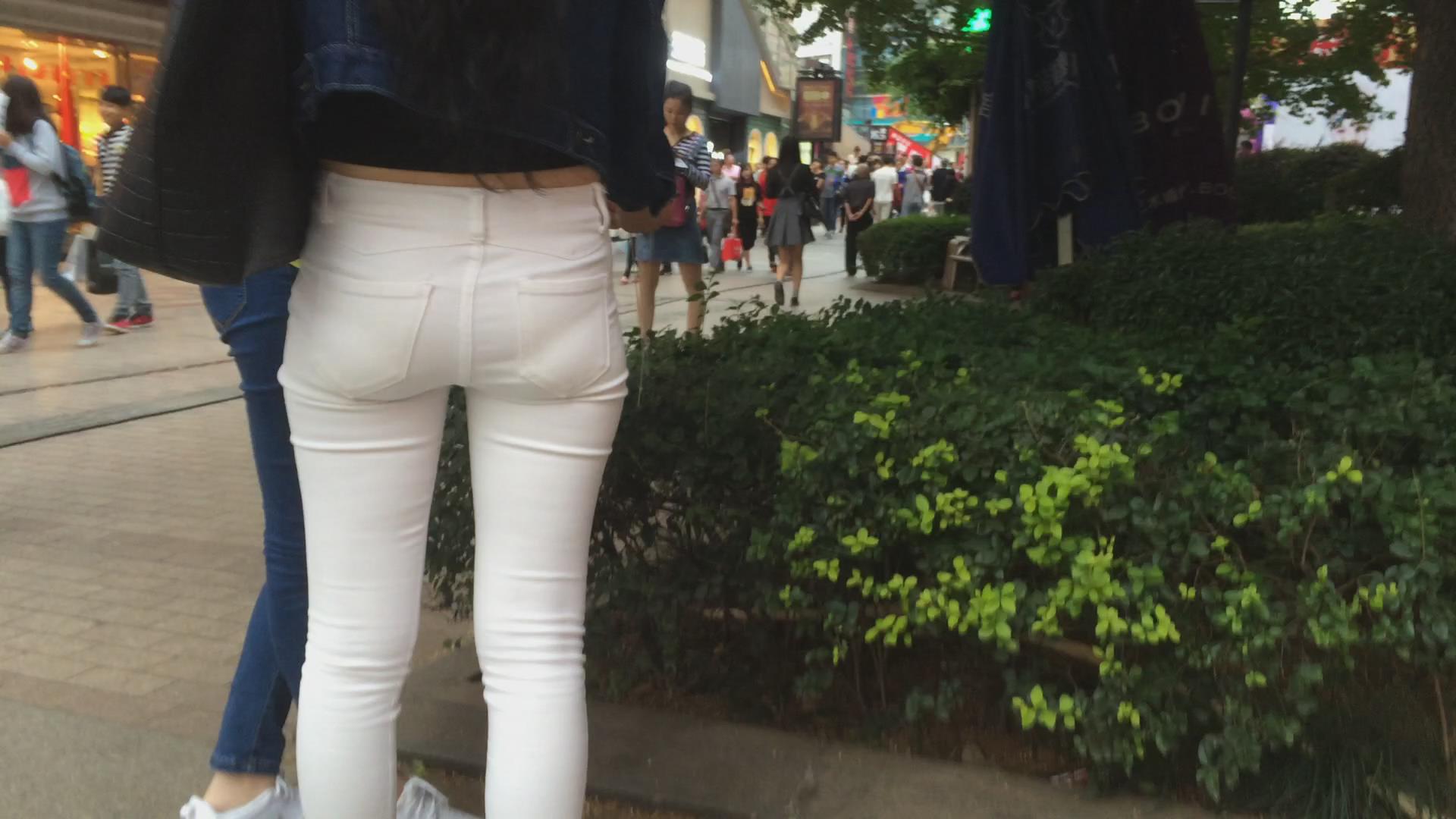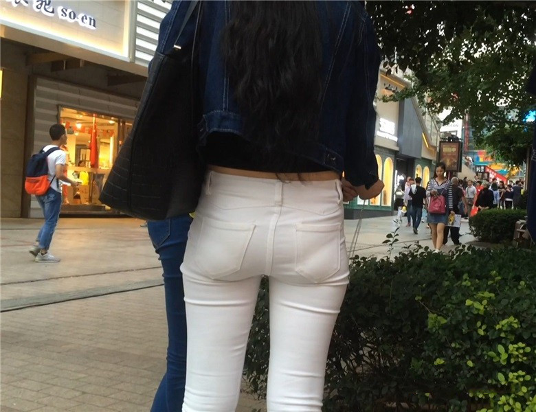 紧身白裤宽臀学生妹 编号5655