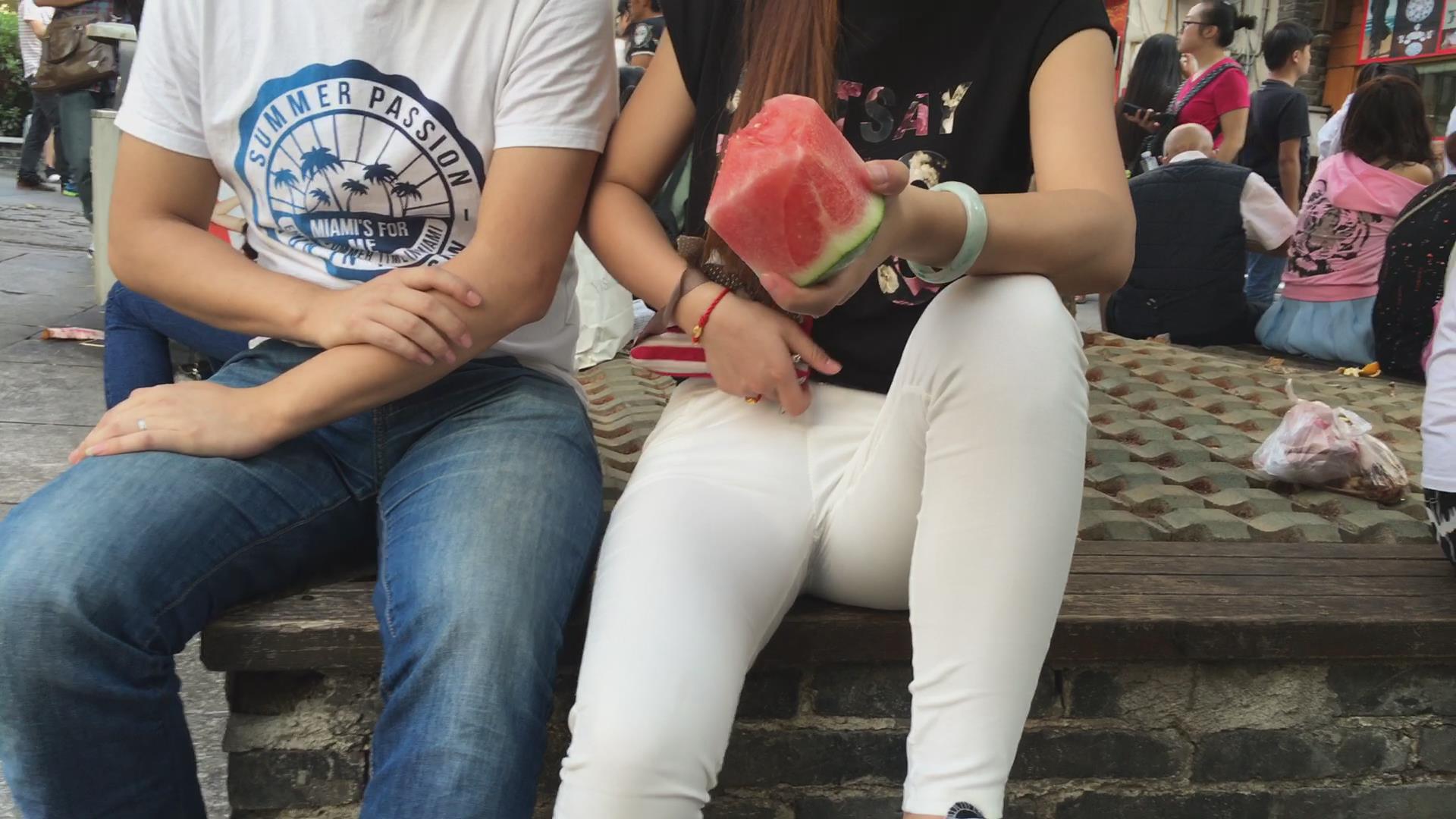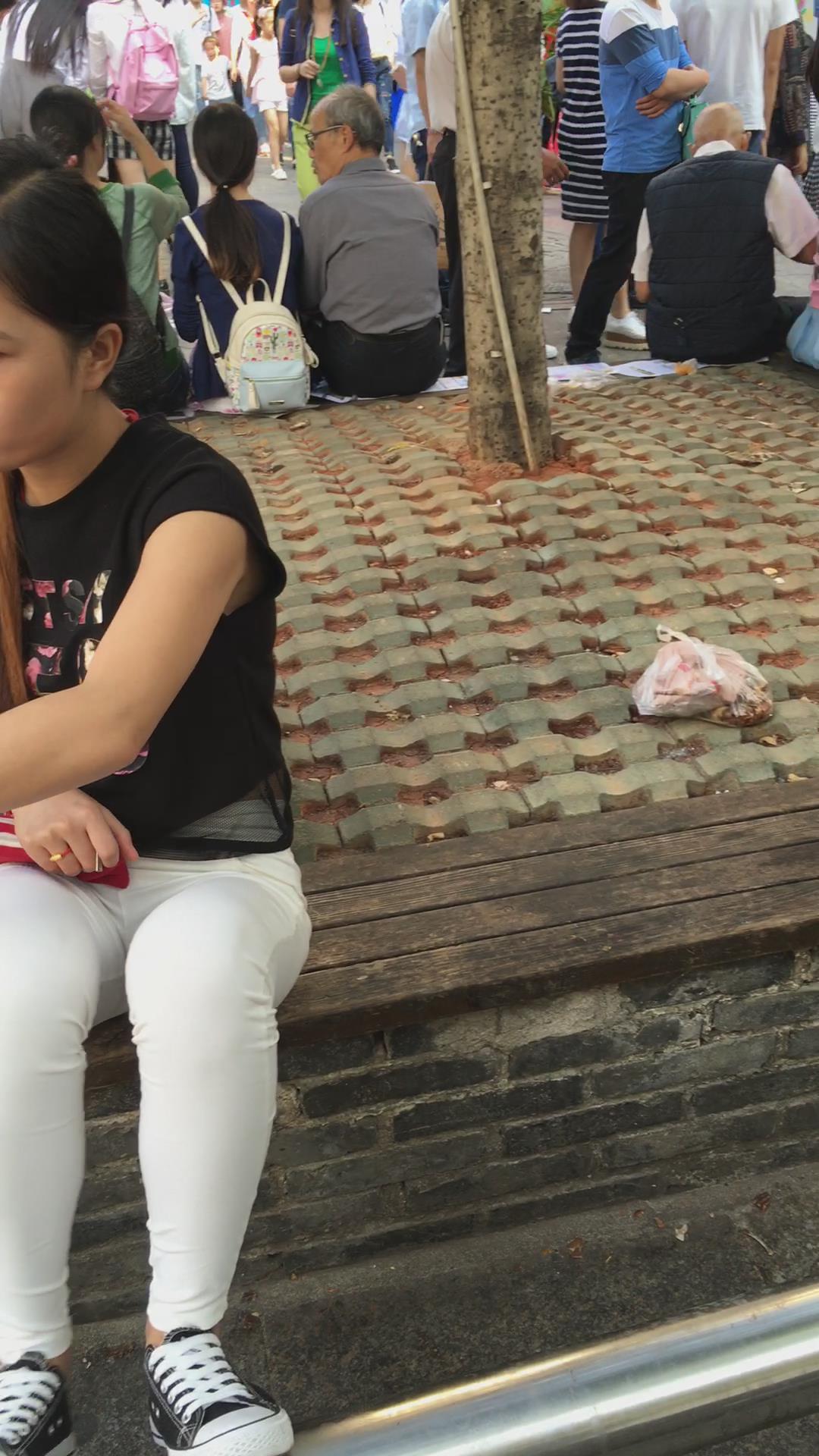 超紧白裤女孩花坛边霸气的坐姿 编号5657