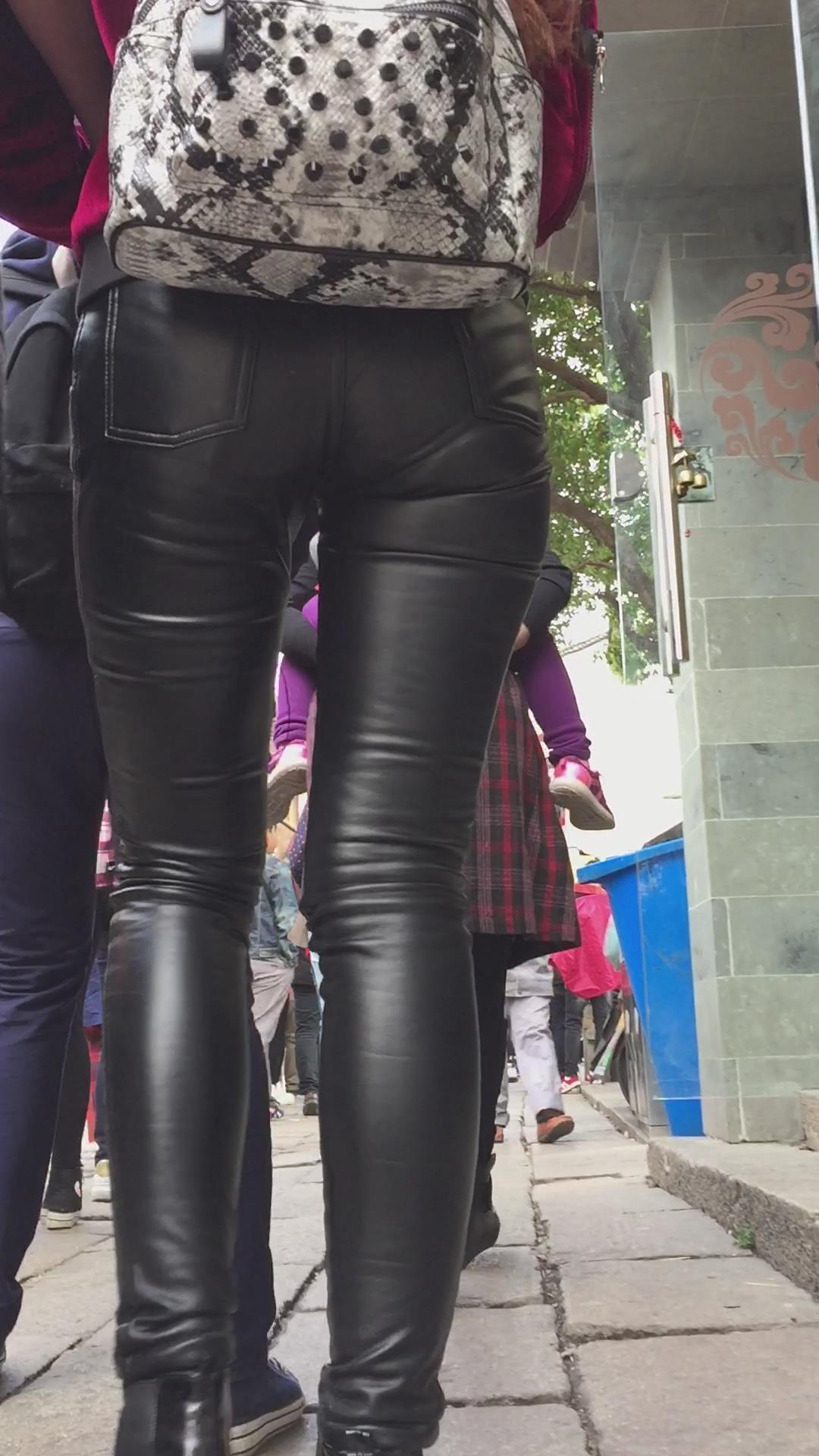 三角区饱满的紧身皮裤长腿妹子 编号5679