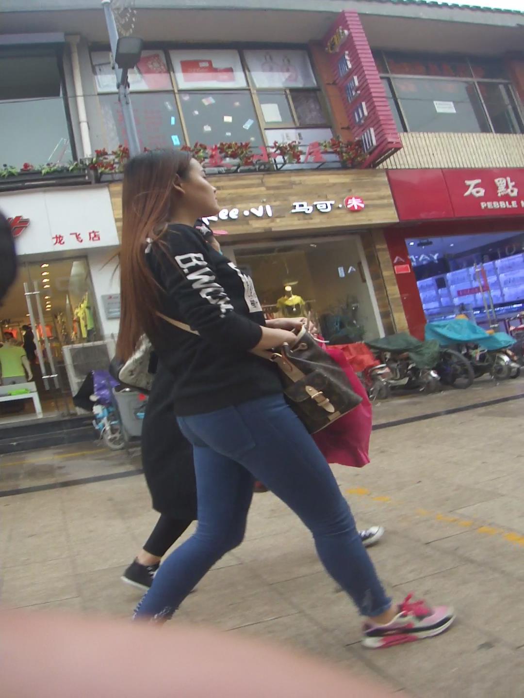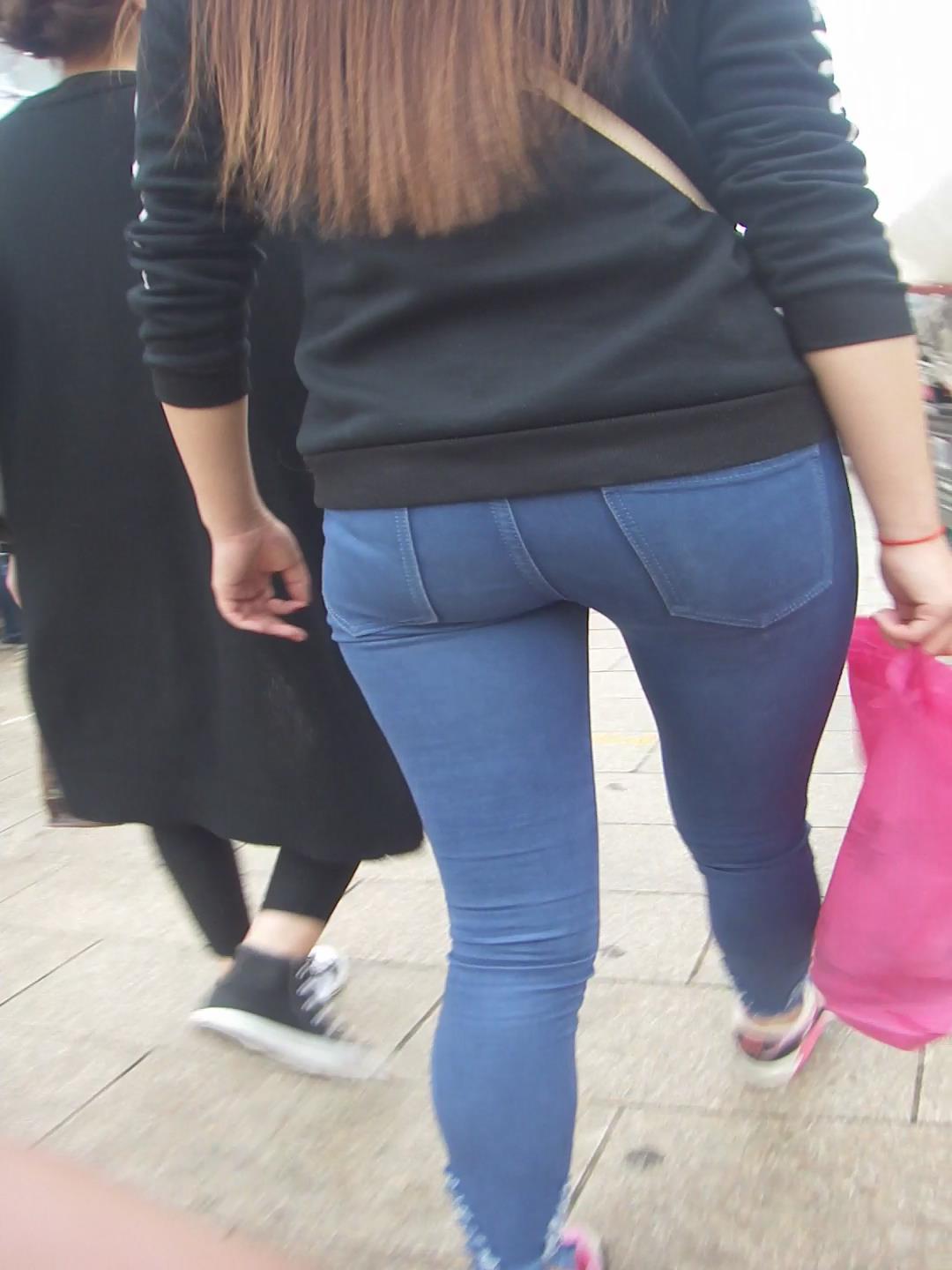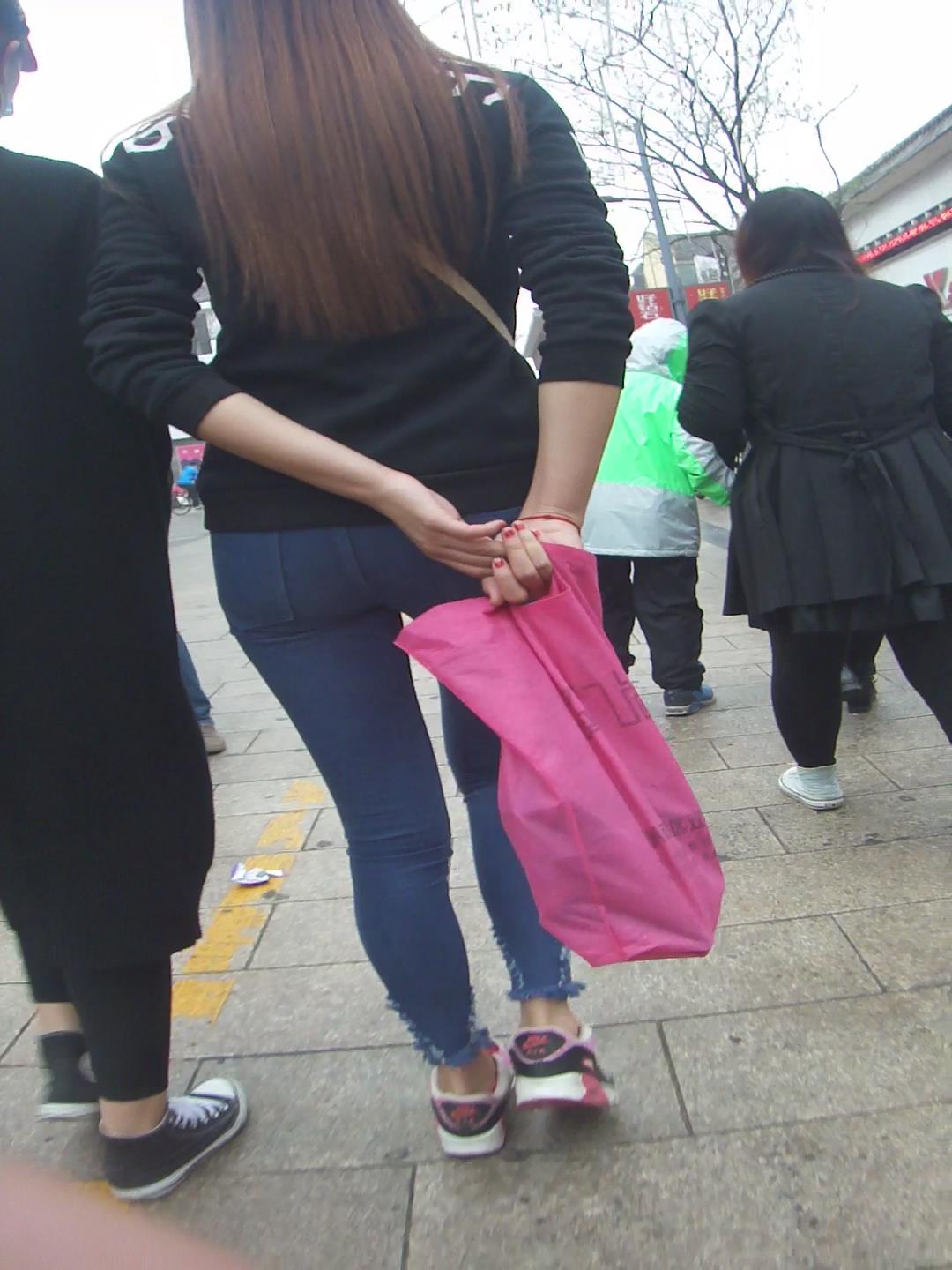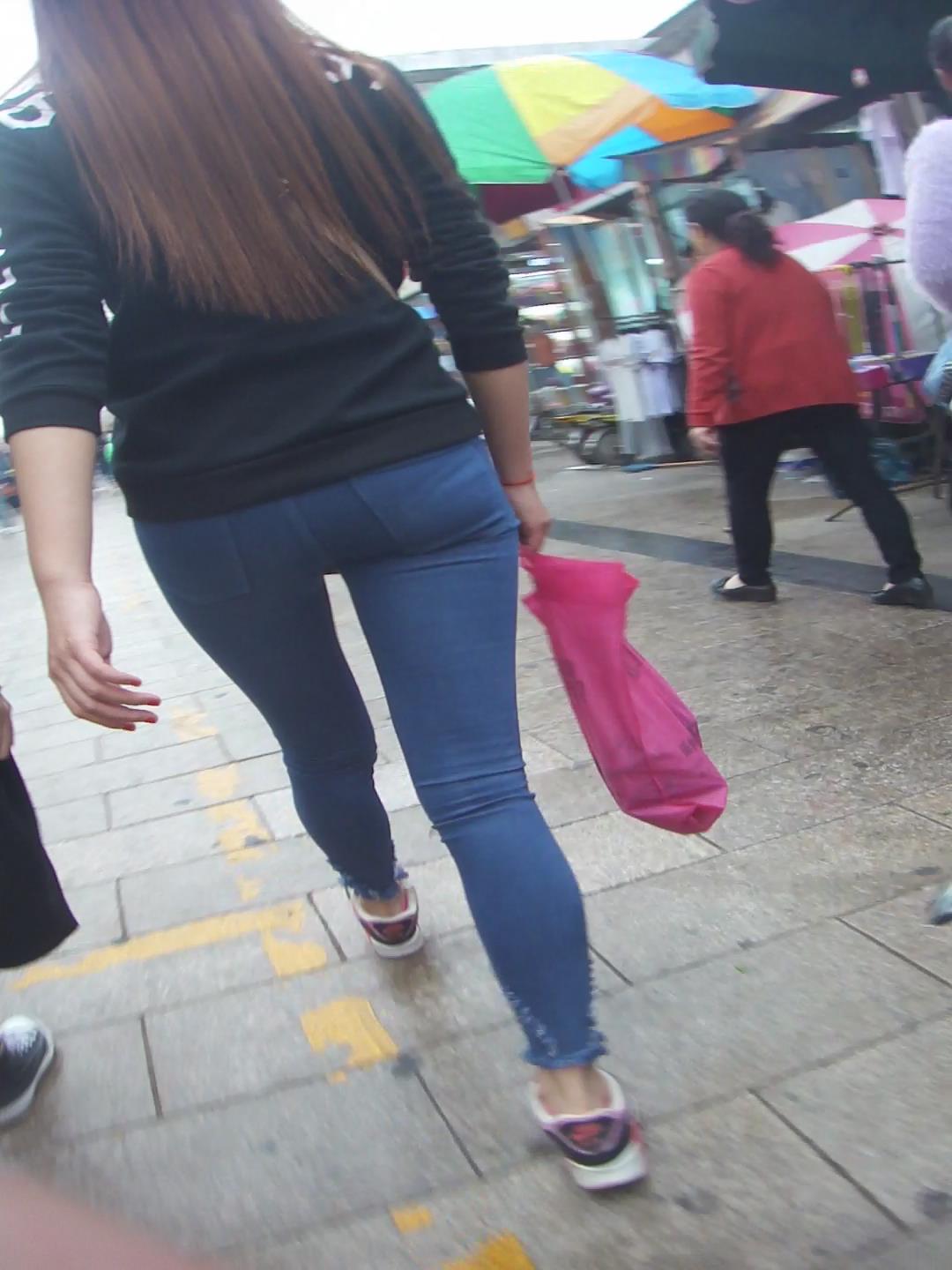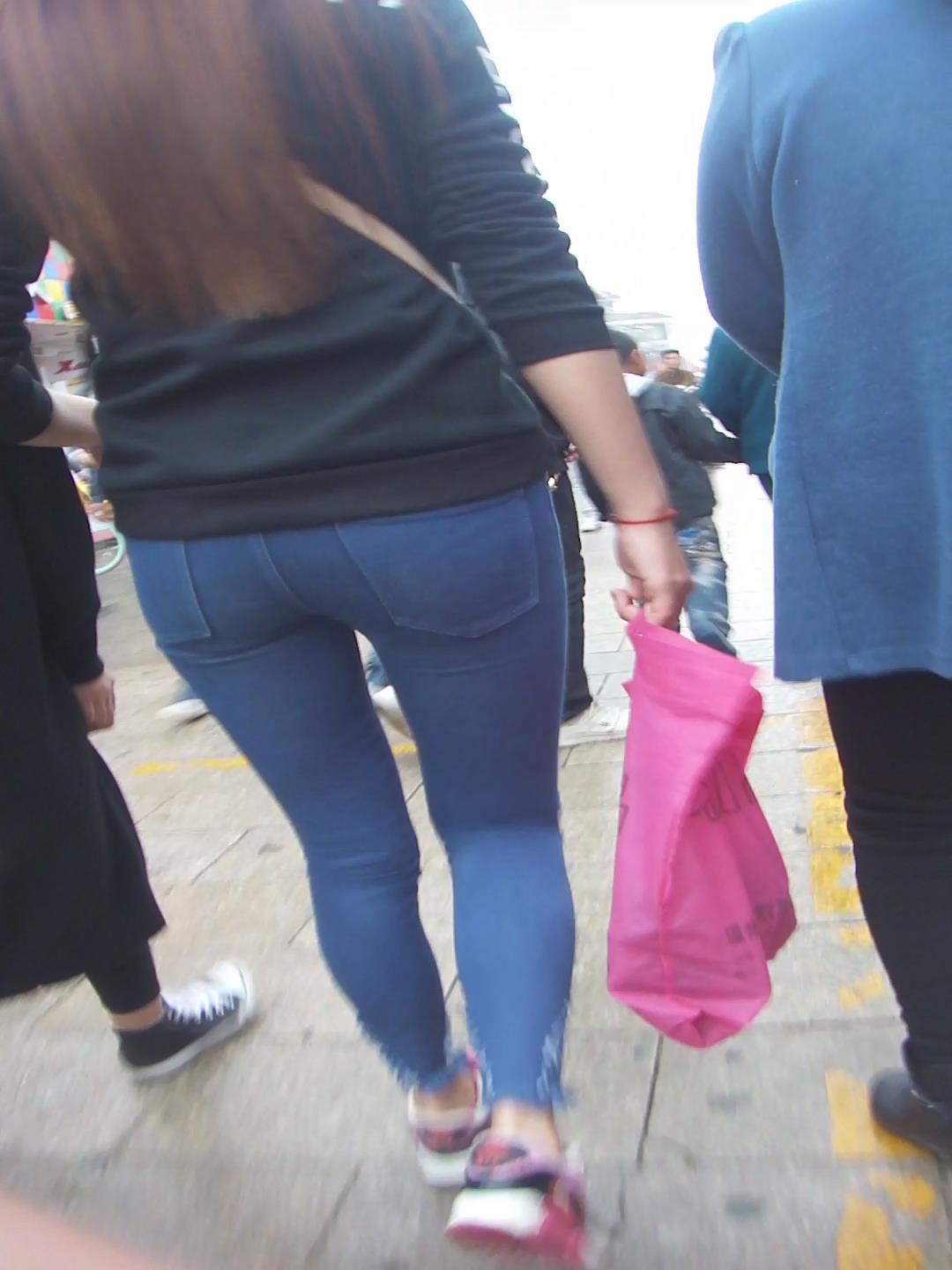 紧身蓝色牛仔裤丰臀美眉逛街 编号5702