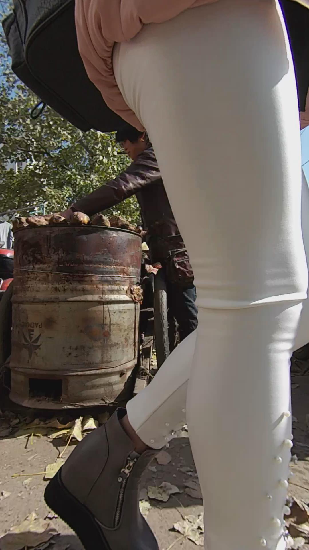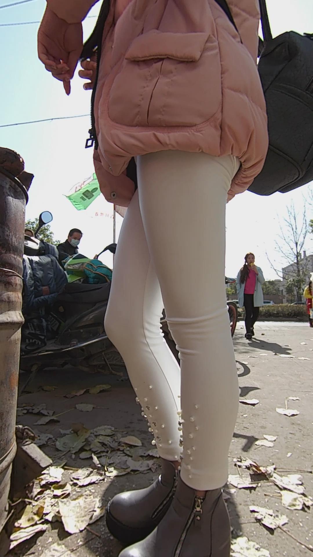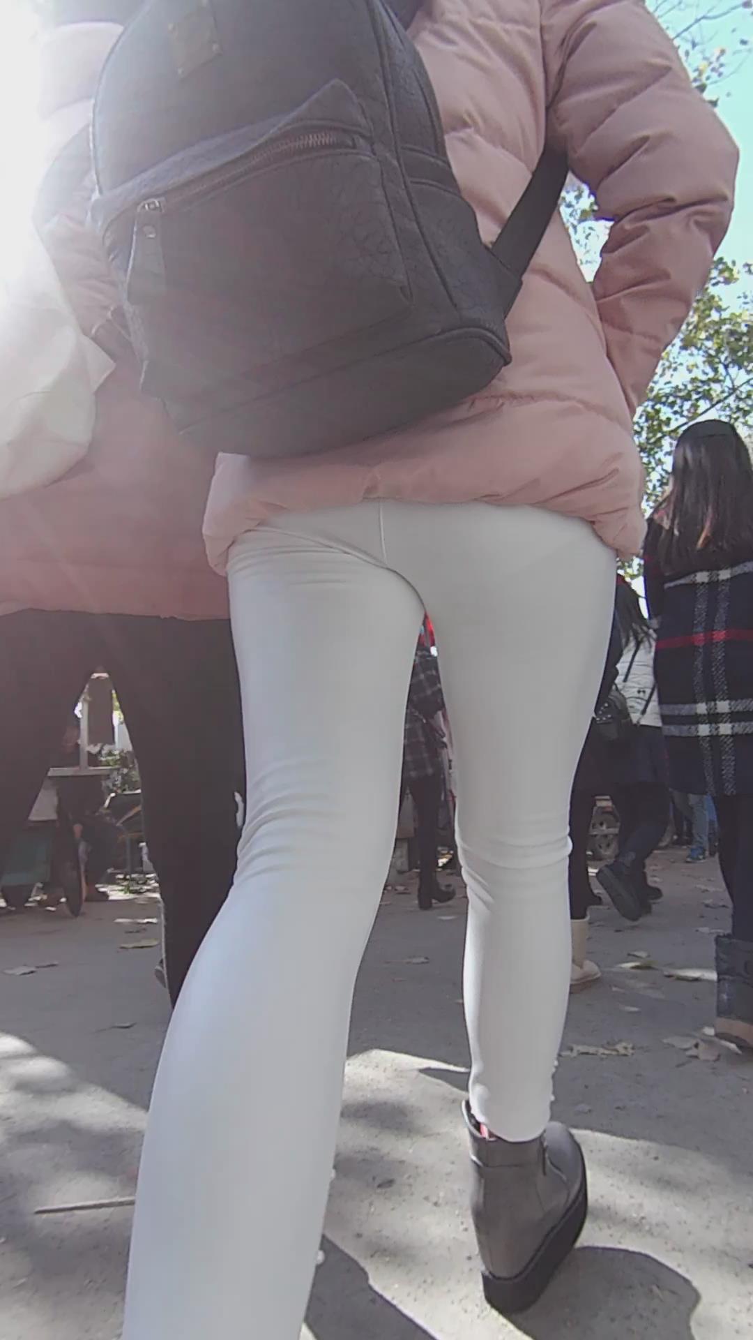 丰臀紧身白裤妹子,屁屁圆又圆 编号5705