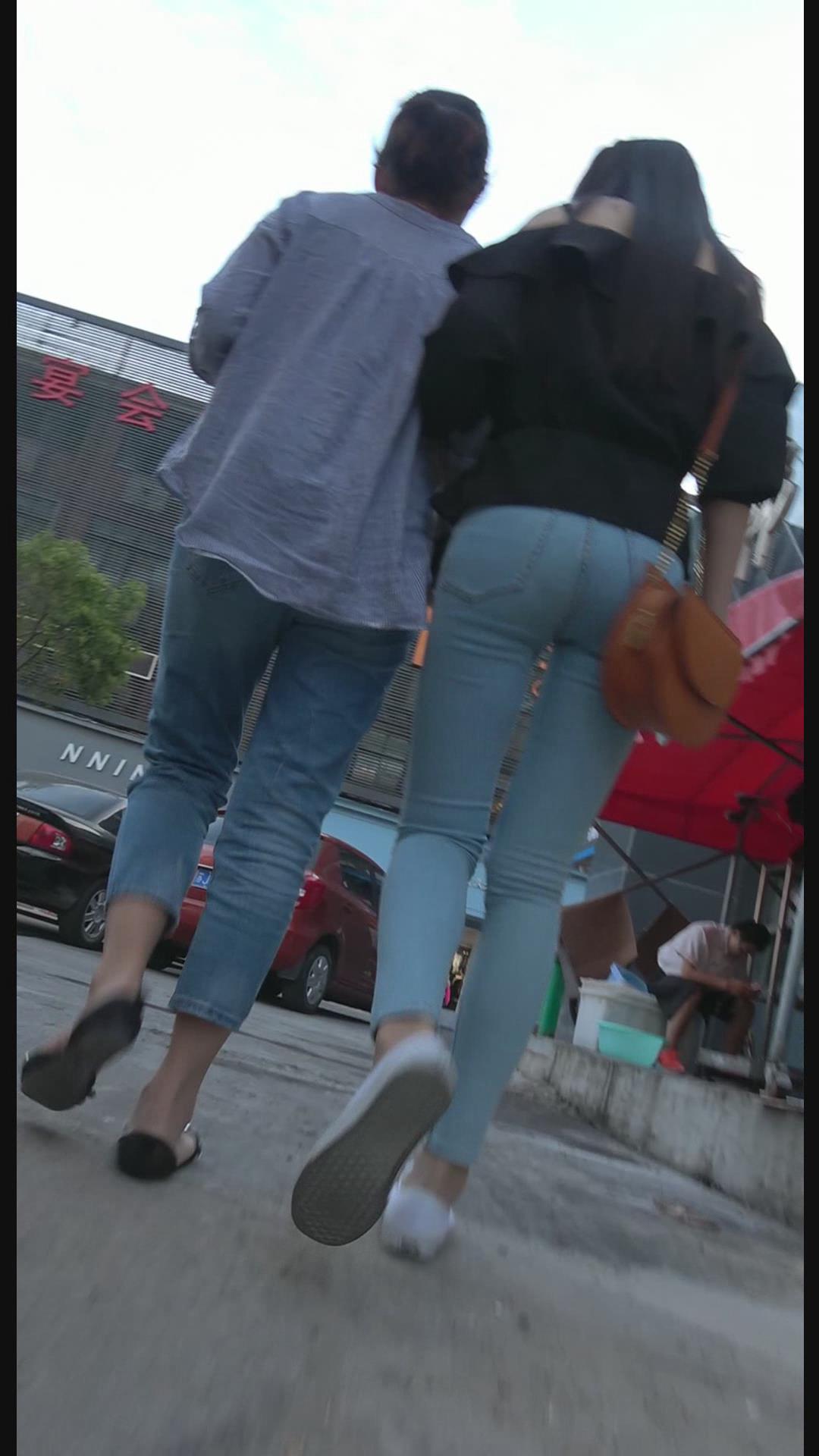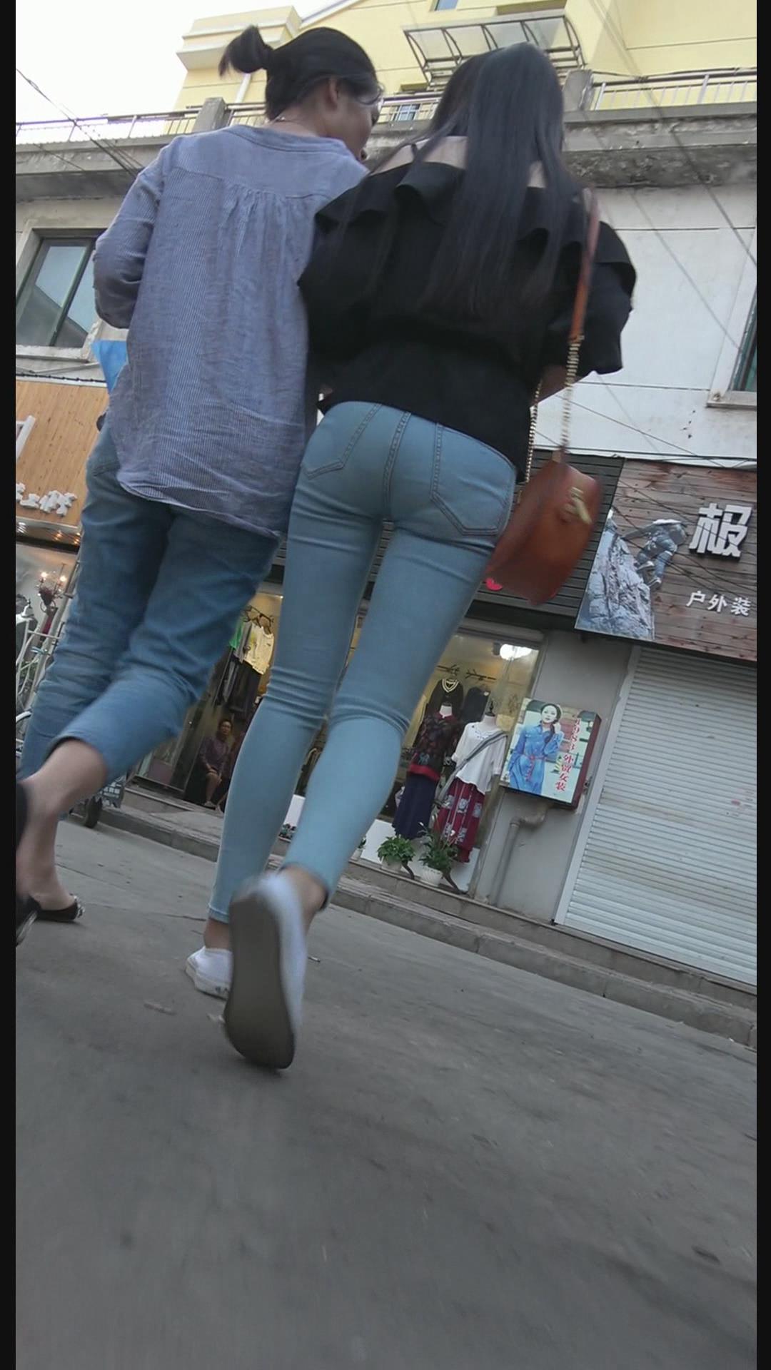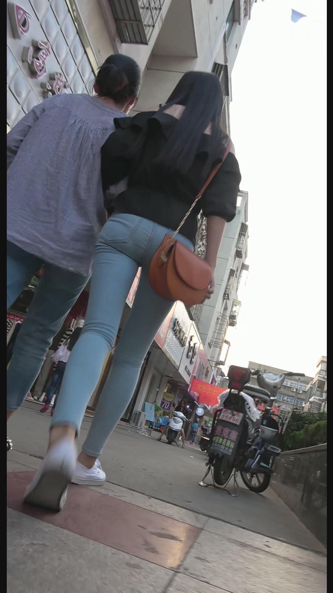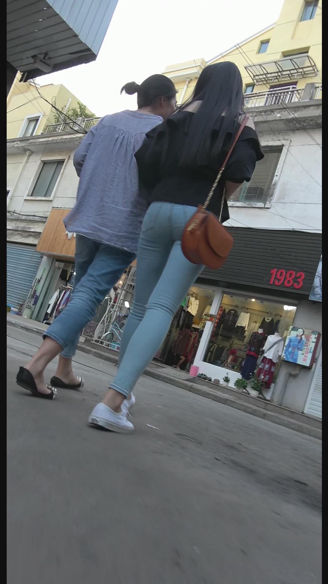 街拍紧身蓝牛细腿姐妹花手挽着手 编号5706