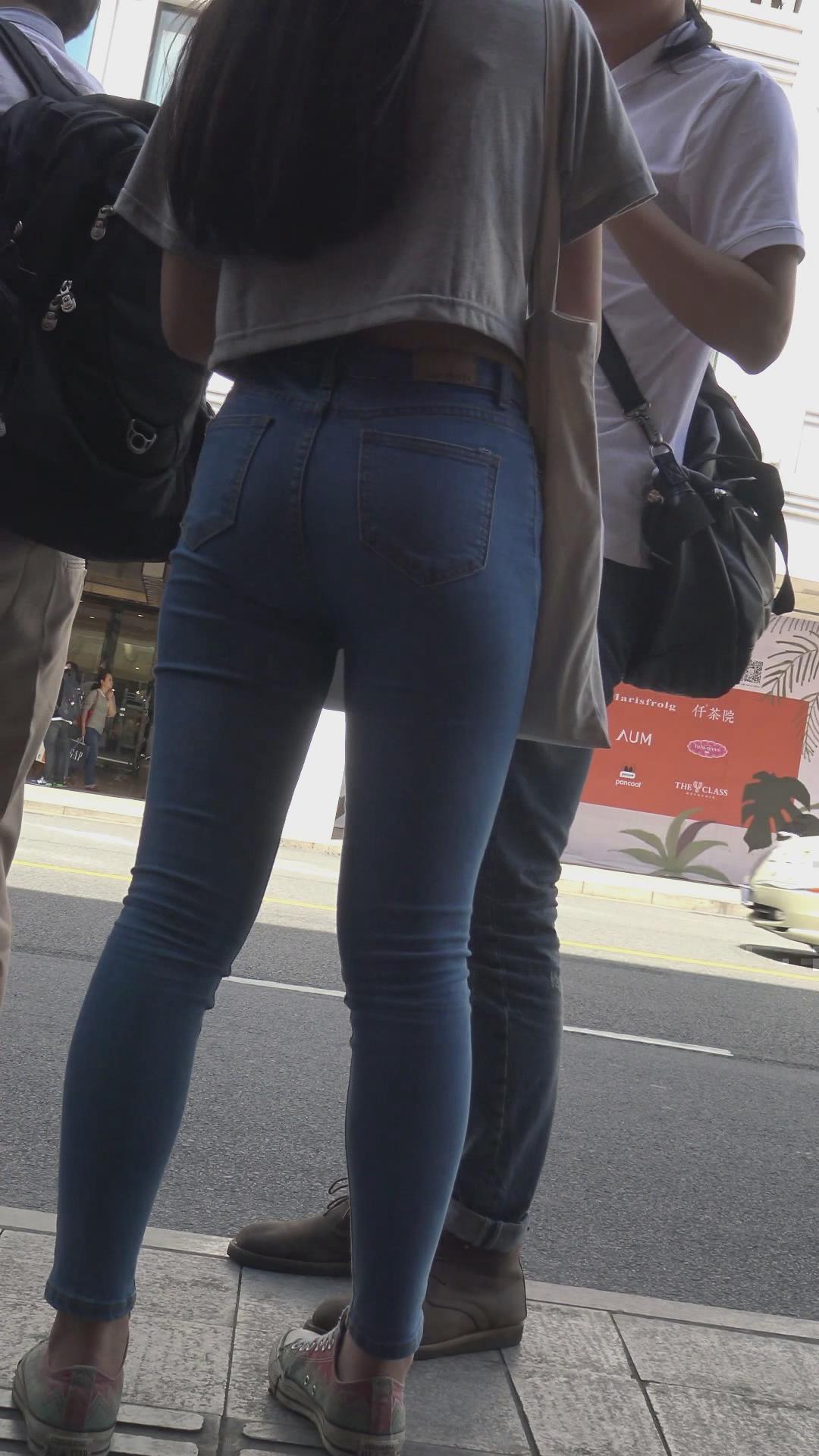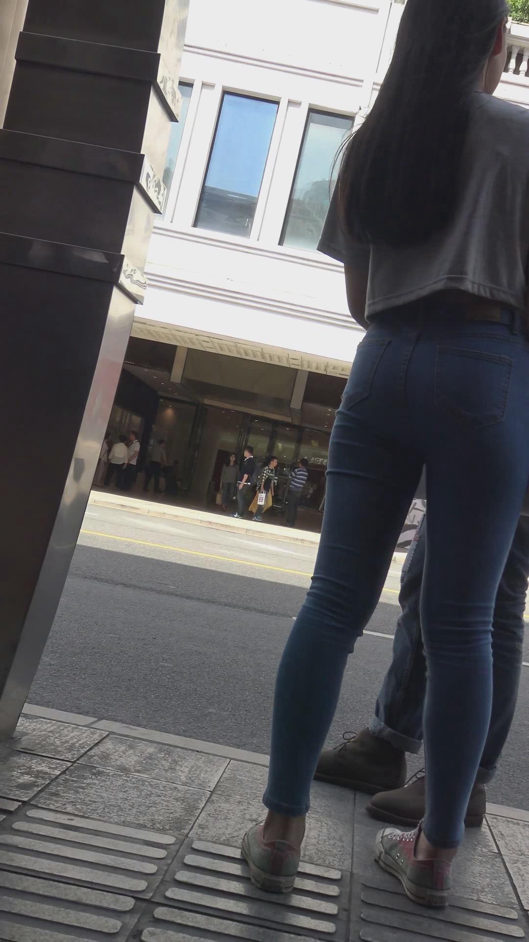 街拍等公交的极品美臀紧身蓝牛美女 编号6151