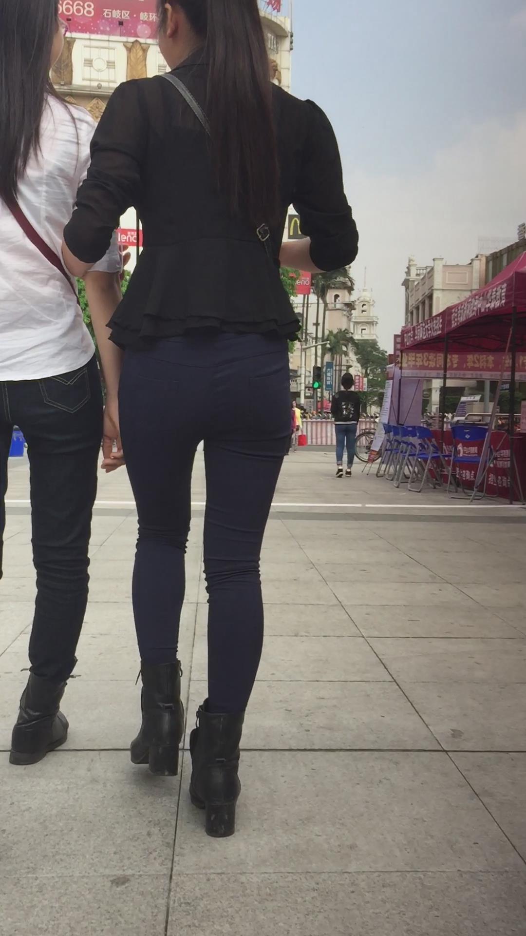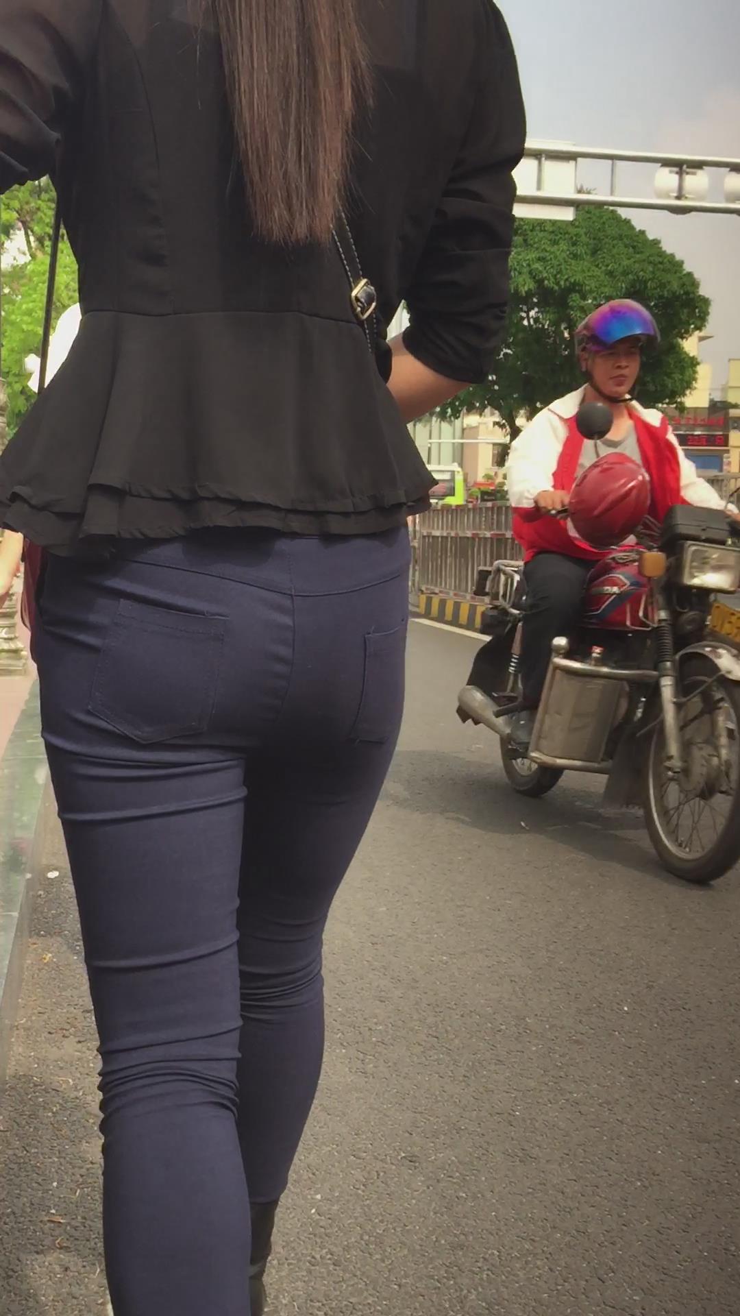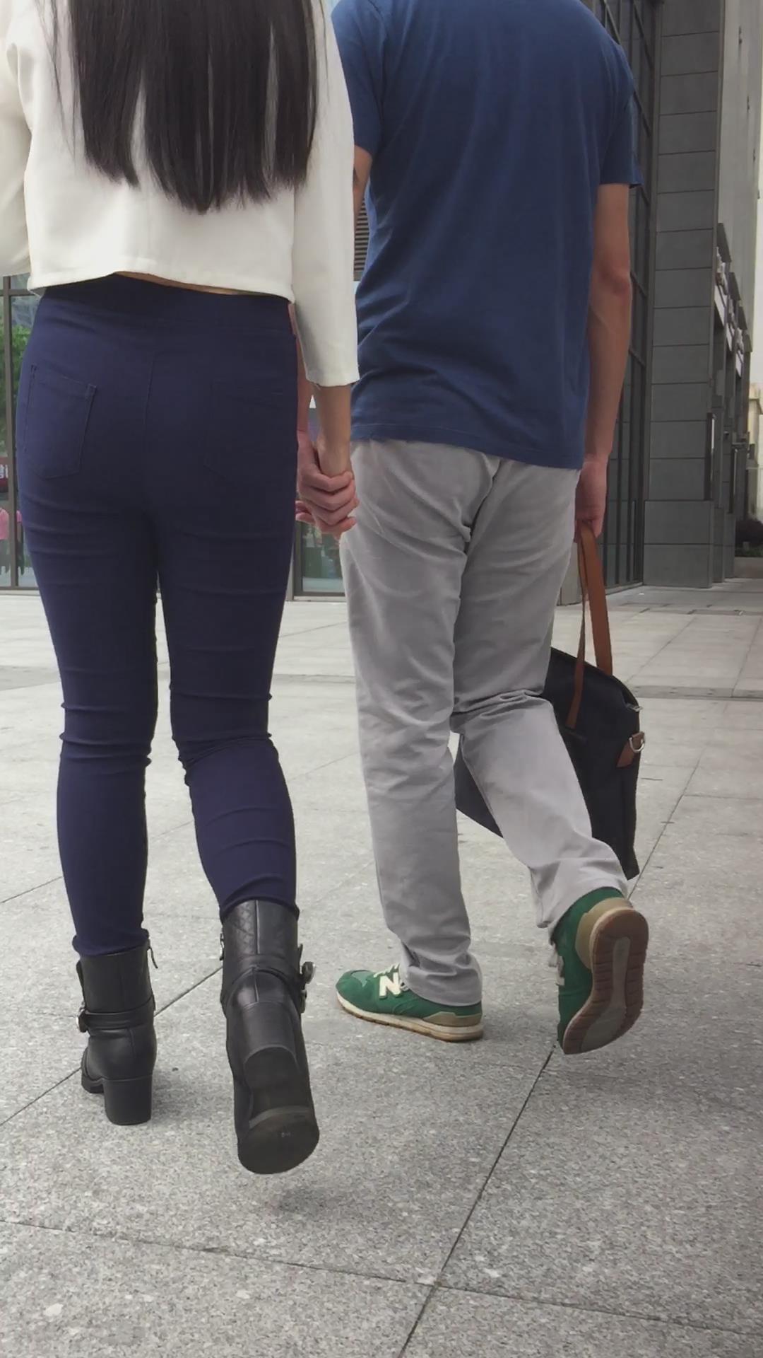 圆臀深蓝色紧身牛仔裤美女,跟男友压马路 编号5717
