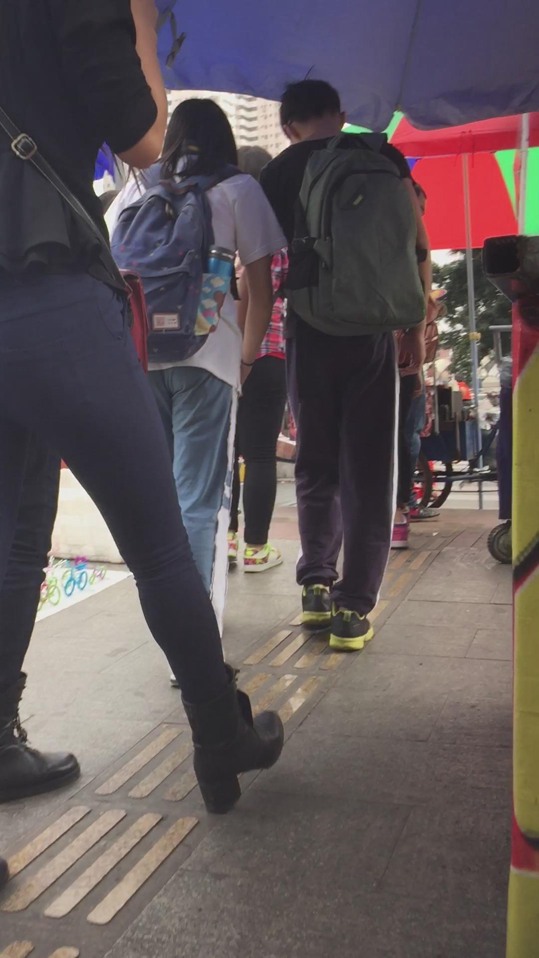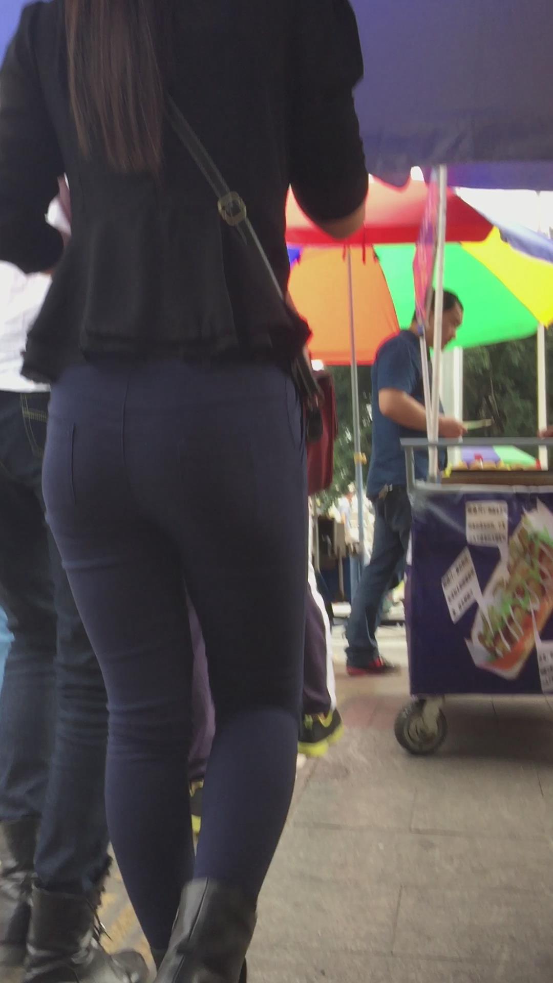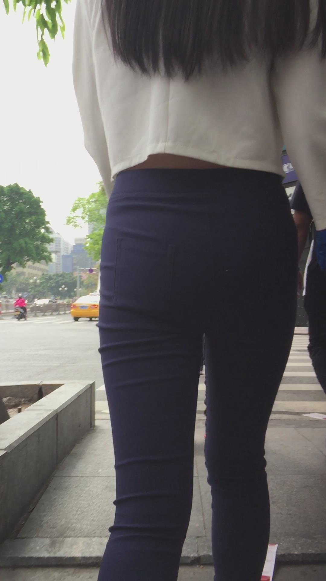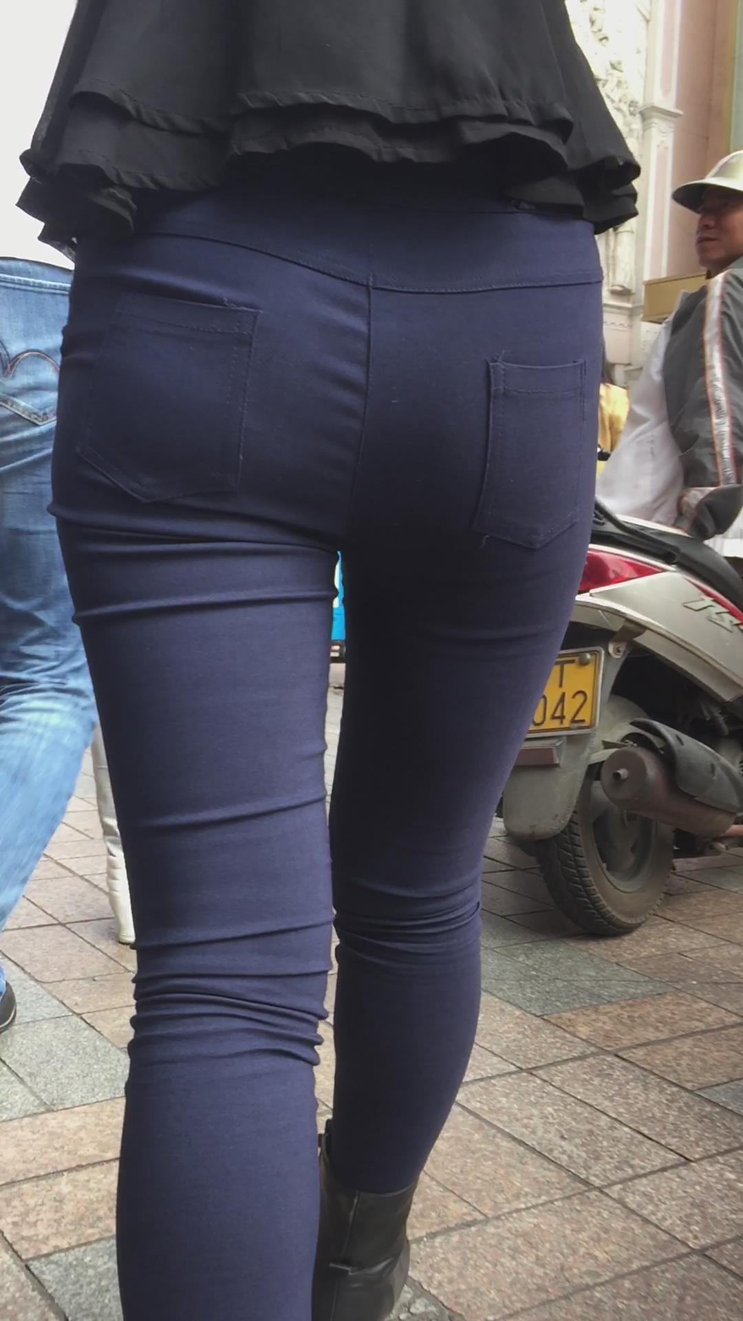 圆臀深蓝色紧身牛仔裤美女,跟男友压马路 编号5717