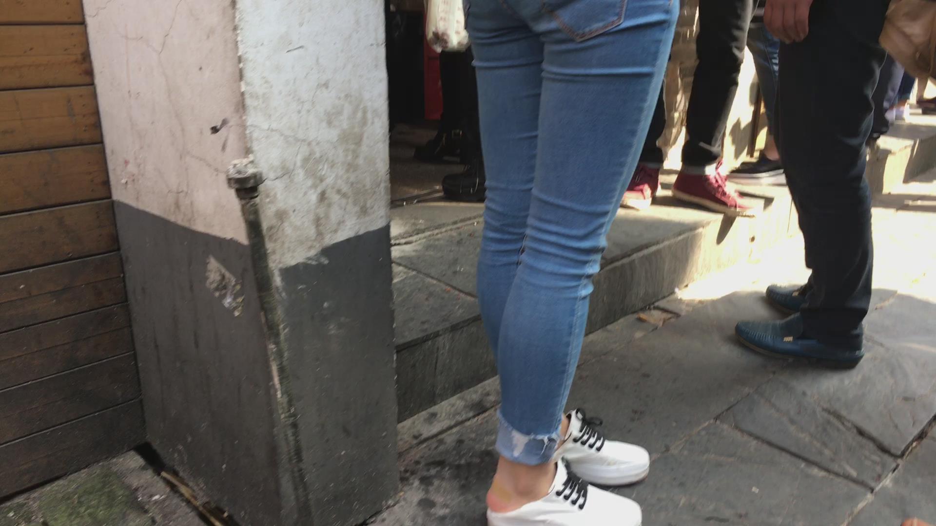 阳光下的紧身蓝牛美臀学生妹,PP结实坚挺 编号5734