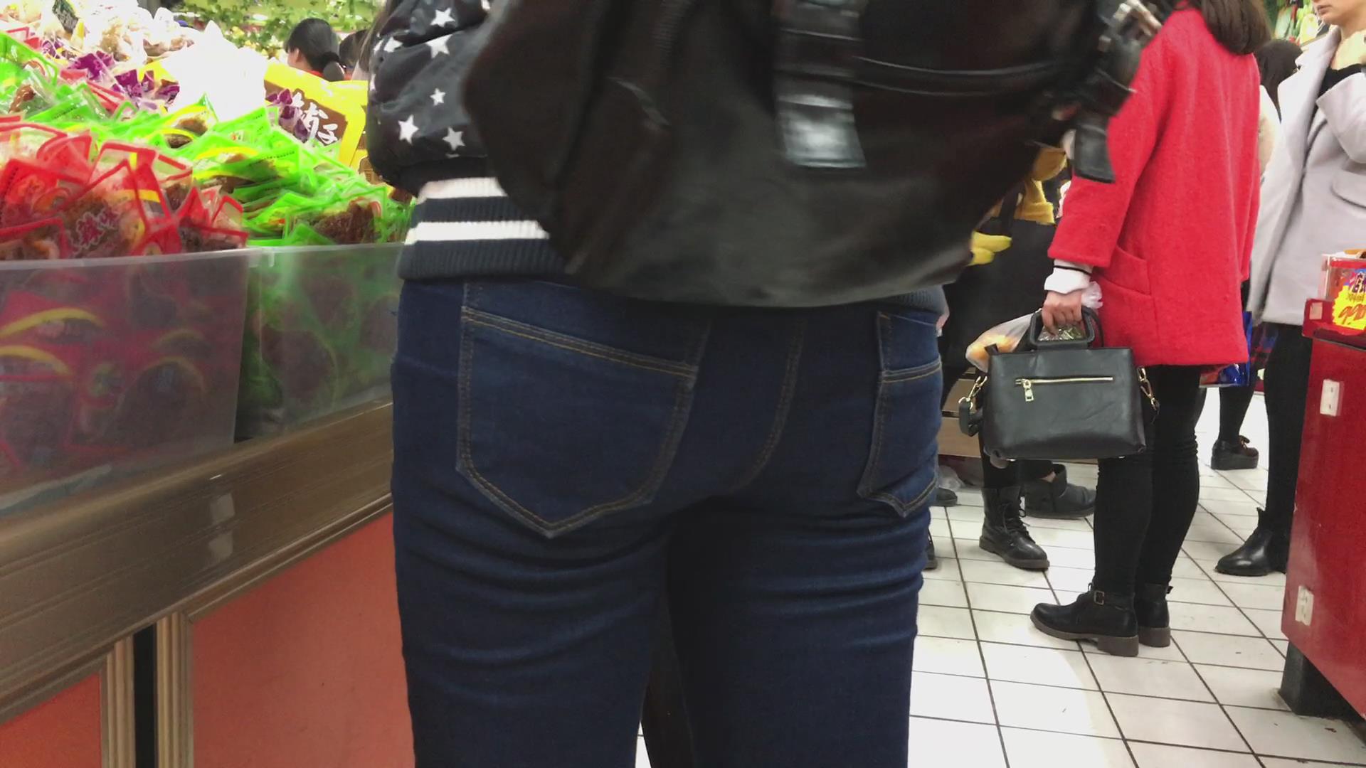 超市特写蓝牛学生妹的饱满圆臀 编号5752