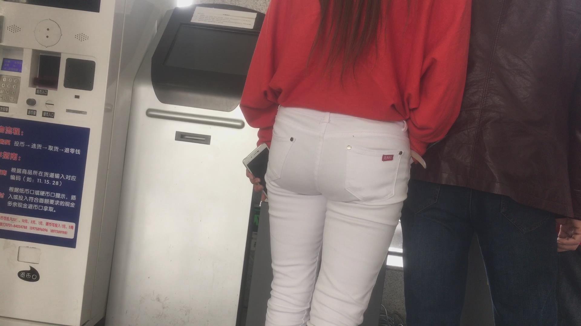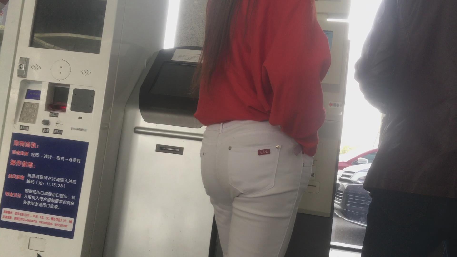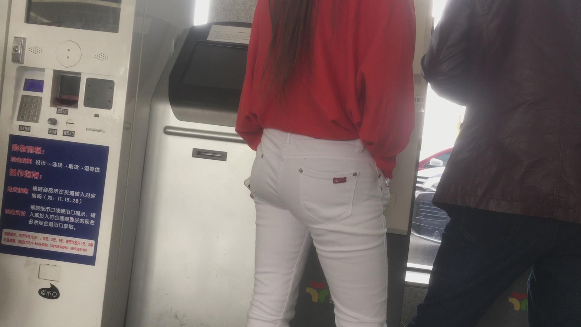 ATM机前取款的白色紧身圆臀小妹妹 编号5756