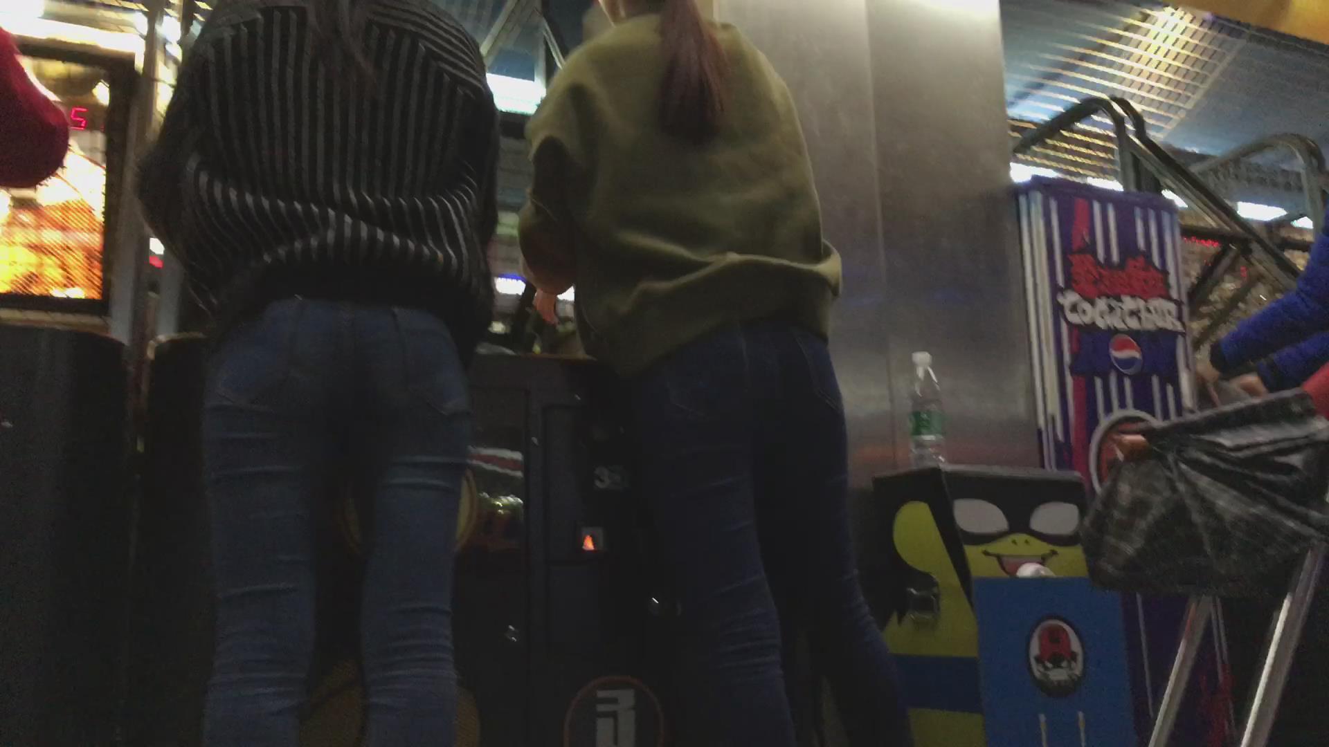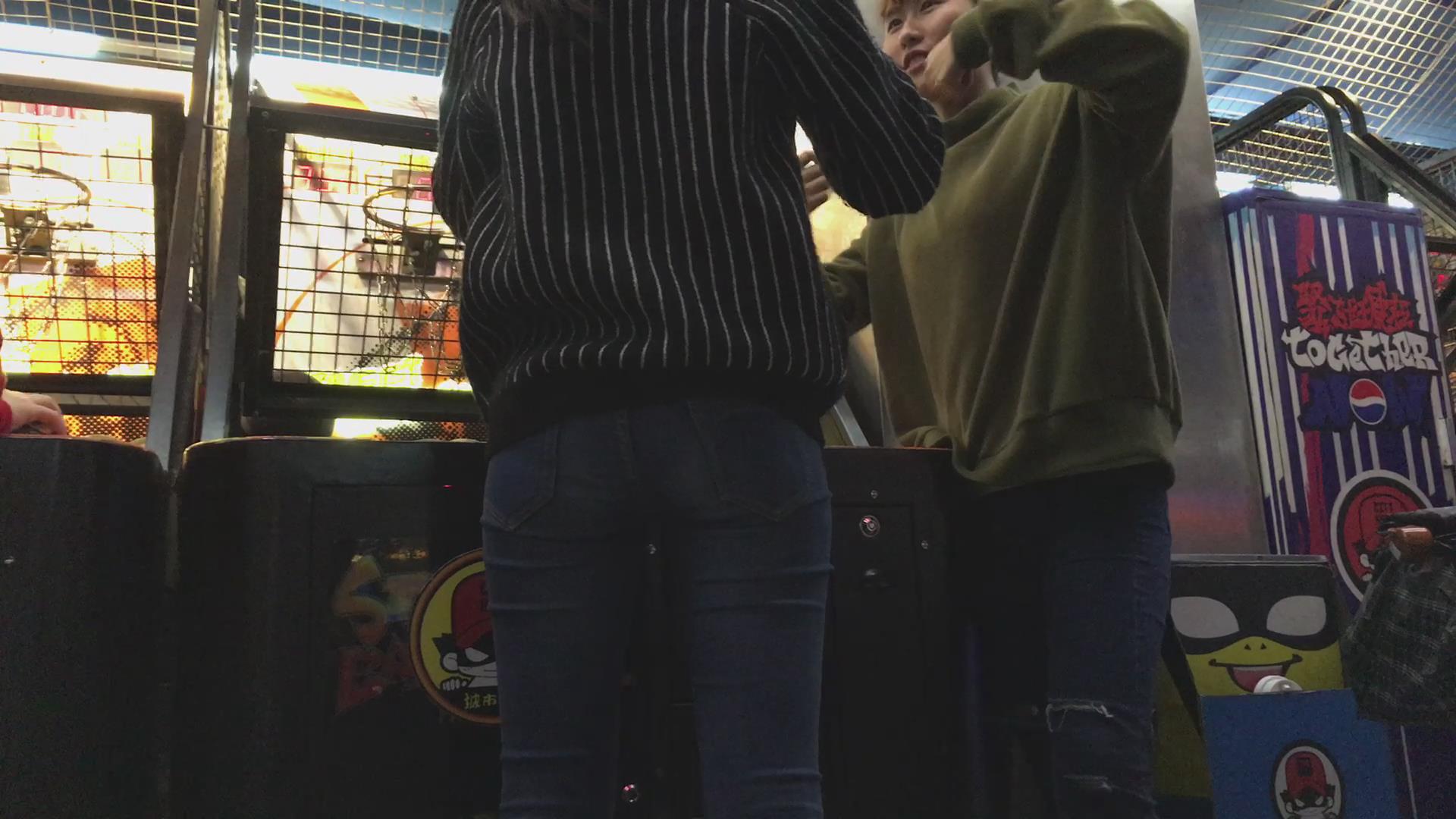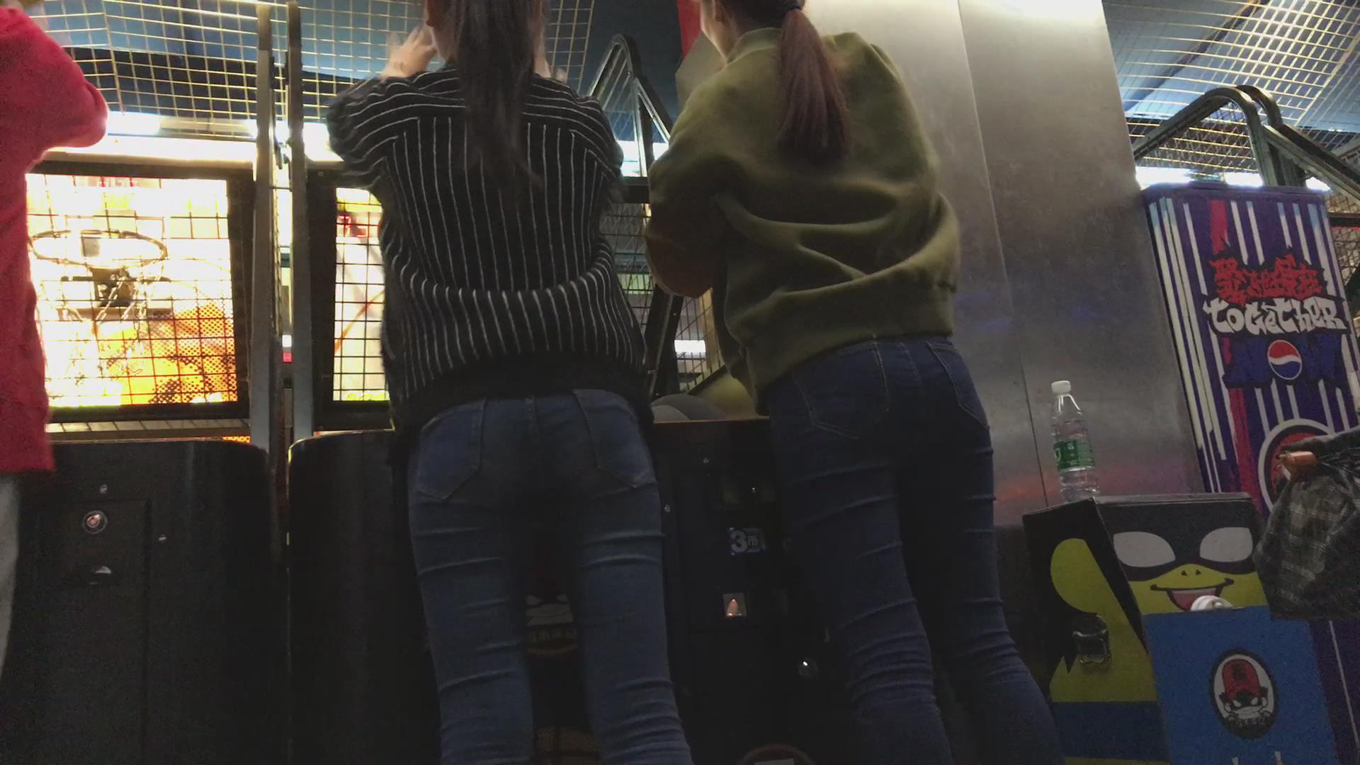 紧身蓝牛姐妹花电玩城玩投篮机很high啊 编号5759