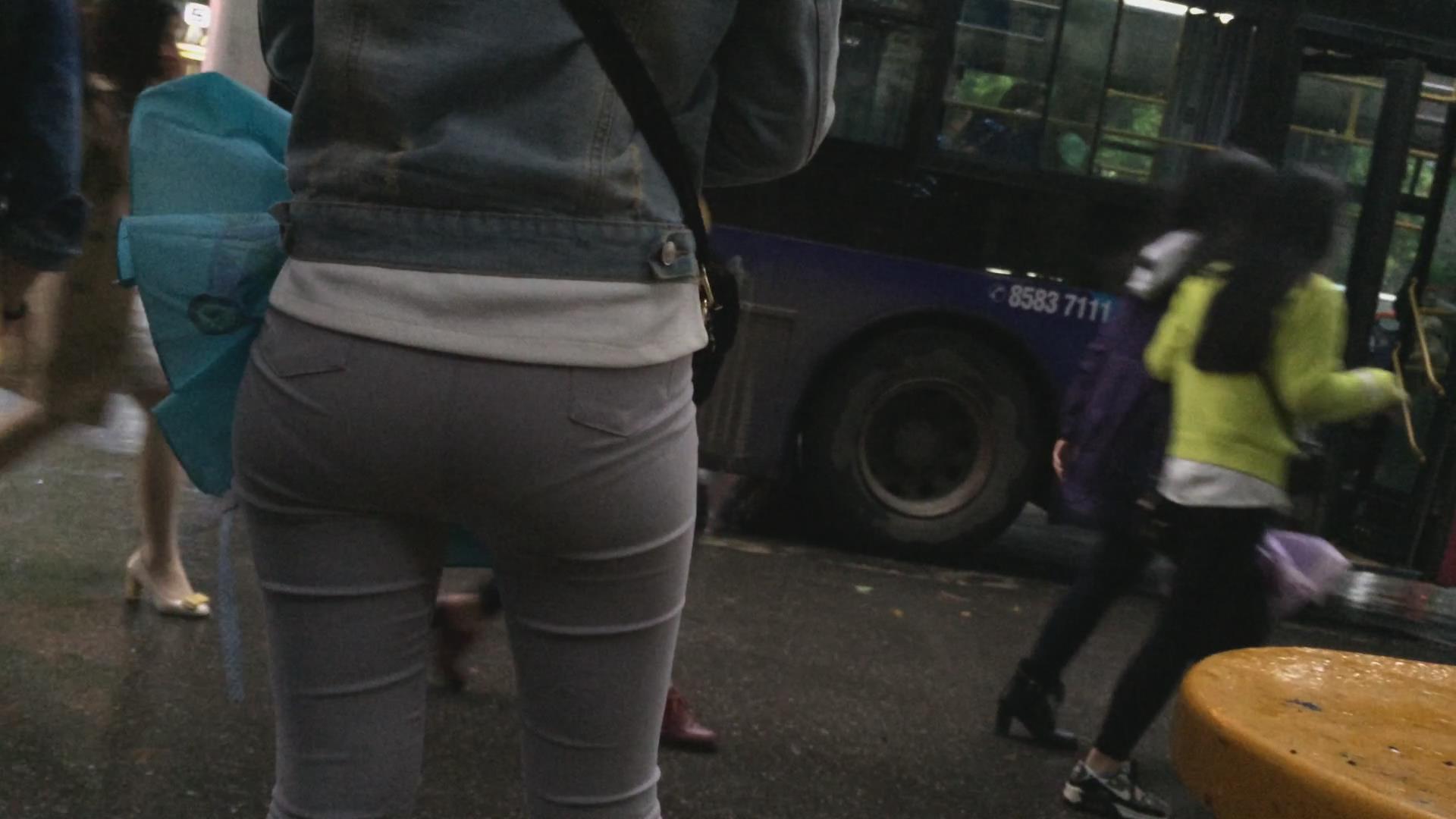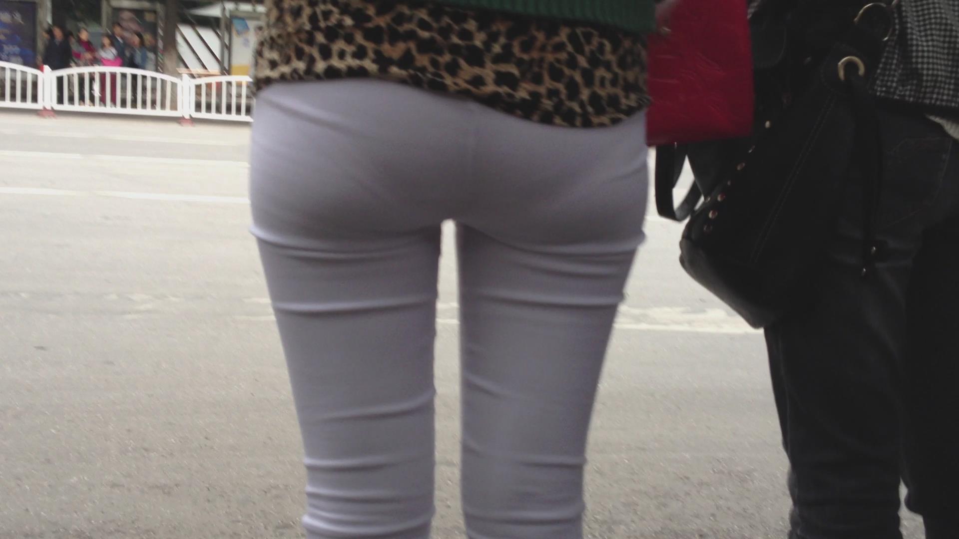 圆润紧致的白裤美女,倒三角勒痕很清晰 编号5772