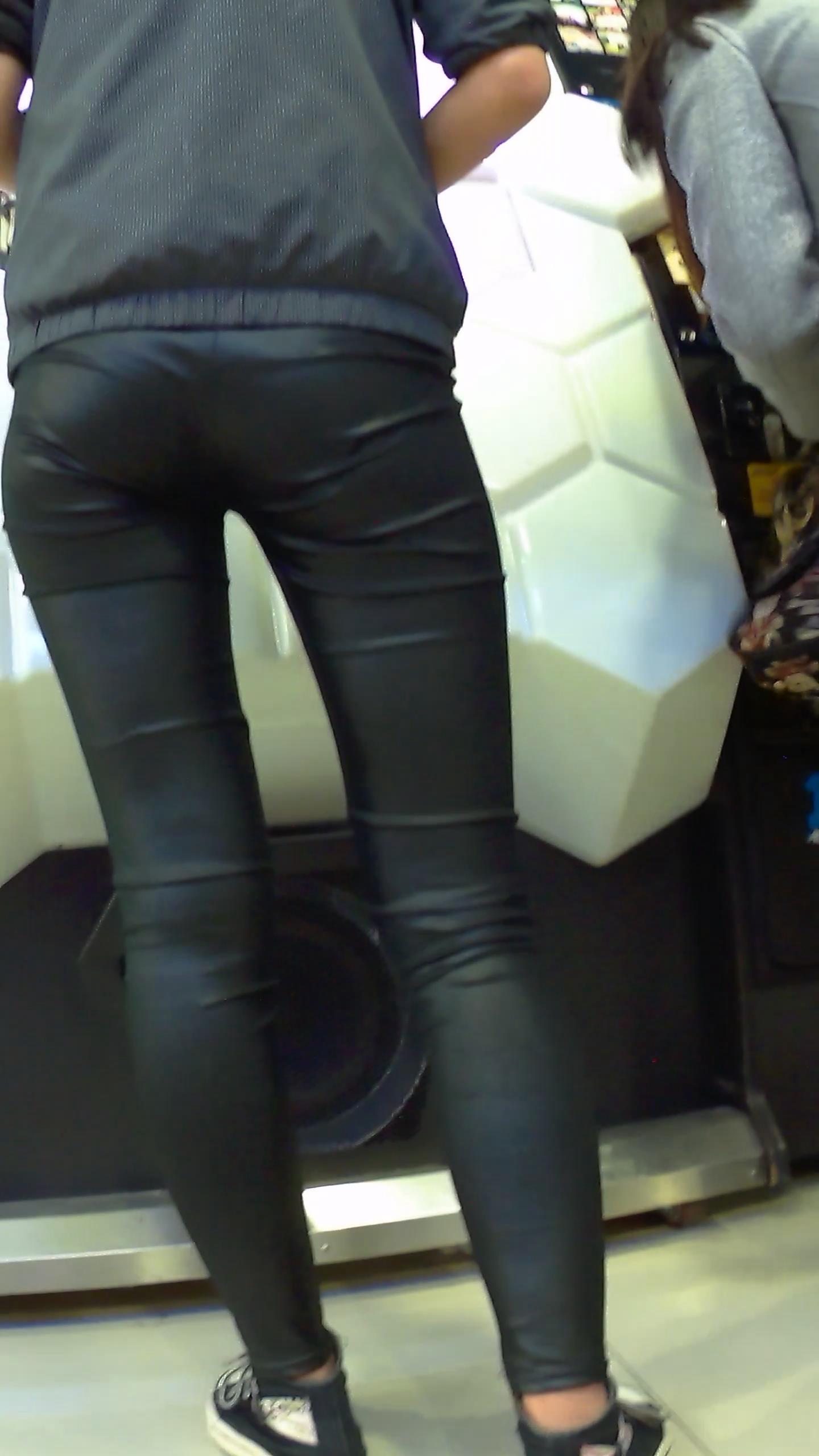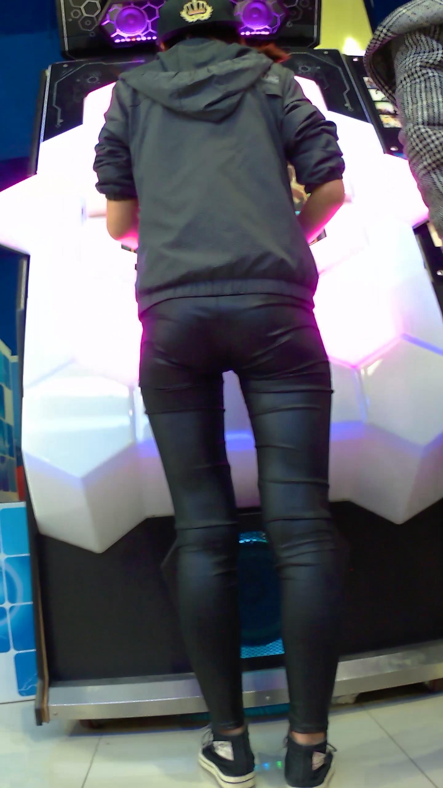 黑色紧身皮裤小美女电玩城玩游戏 编号5781