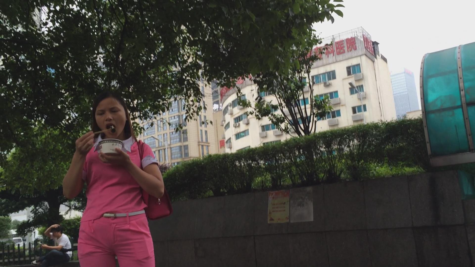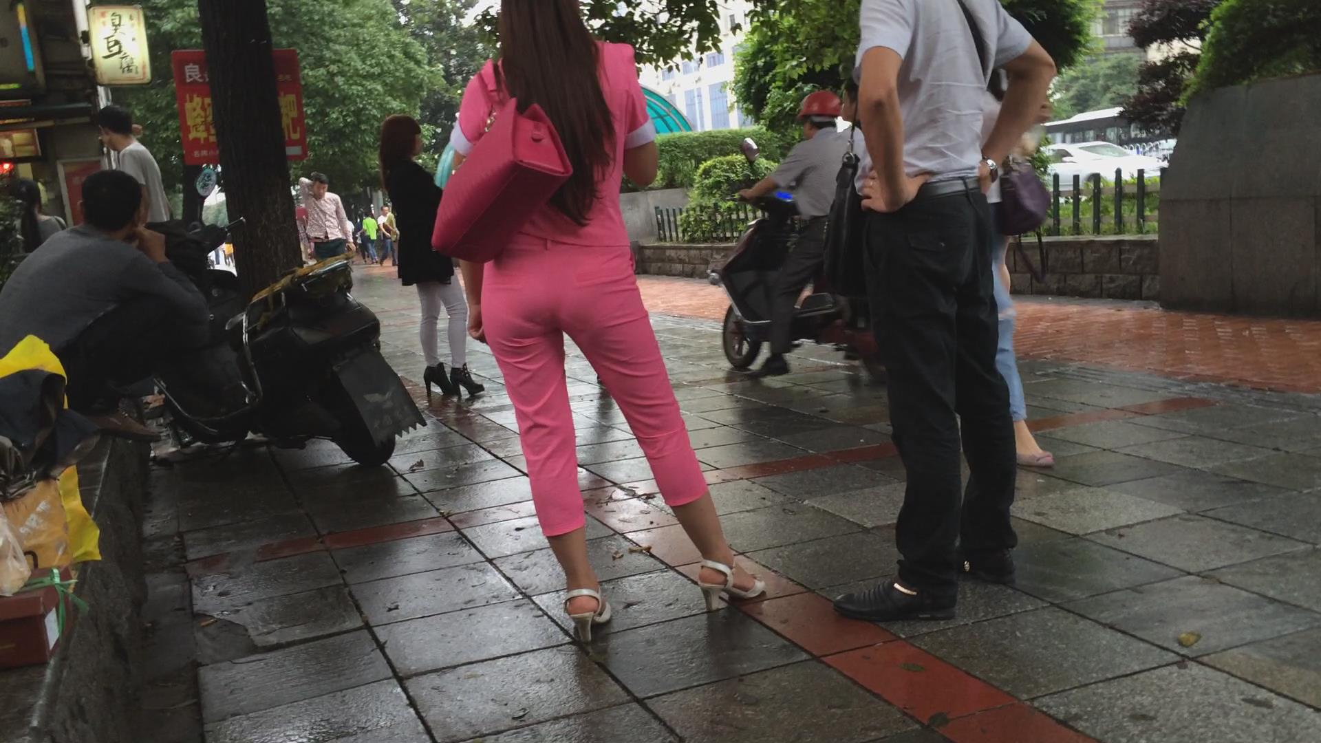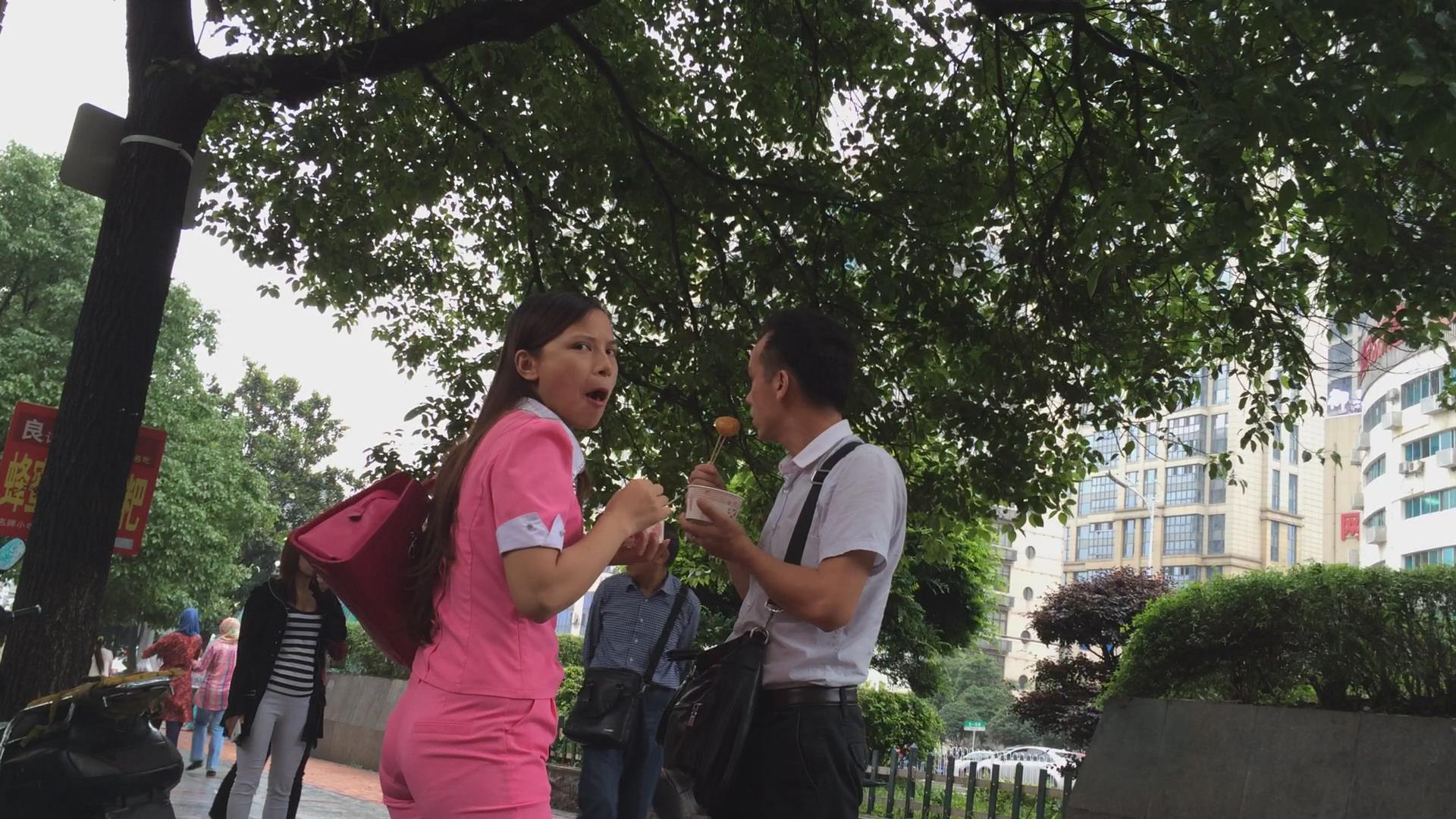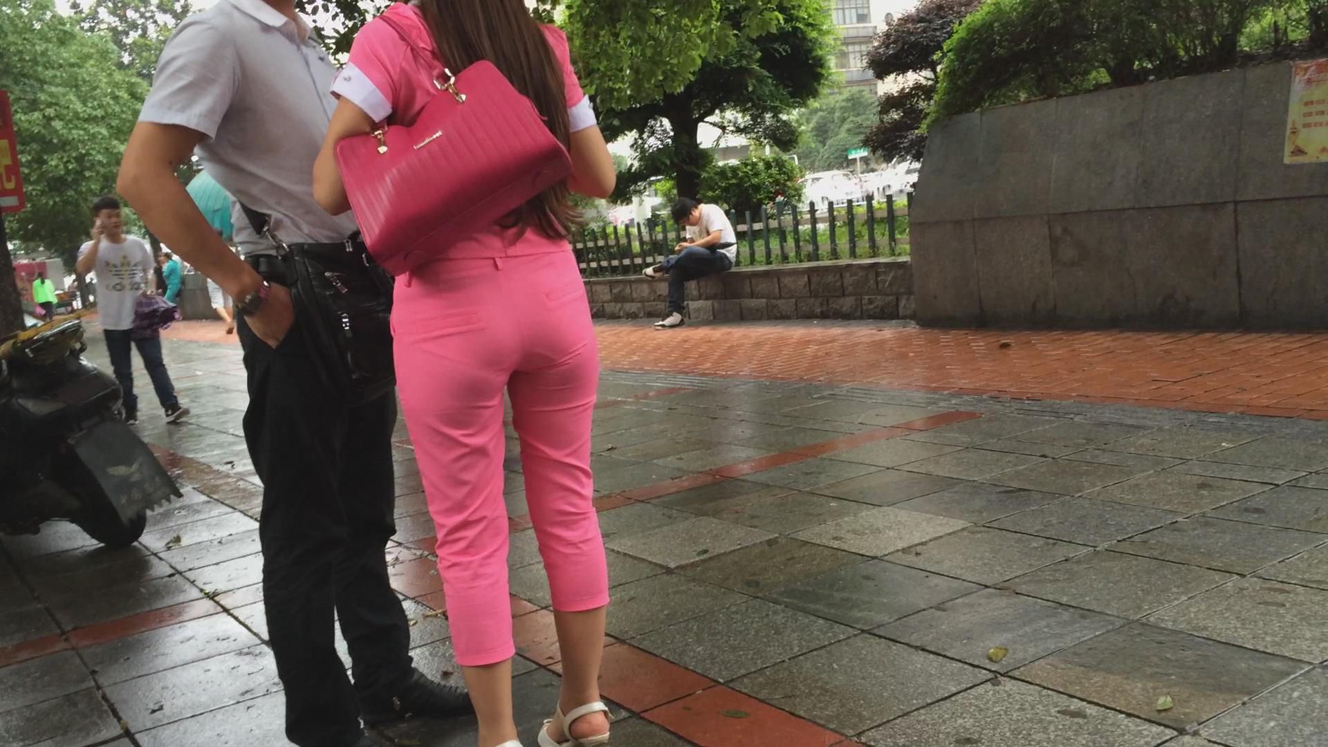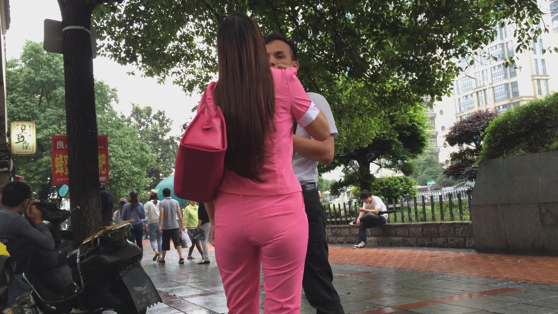 一身粉色圆臀妹子跟男友路边吃小吃,懒蛋不行身体凑 编号5782