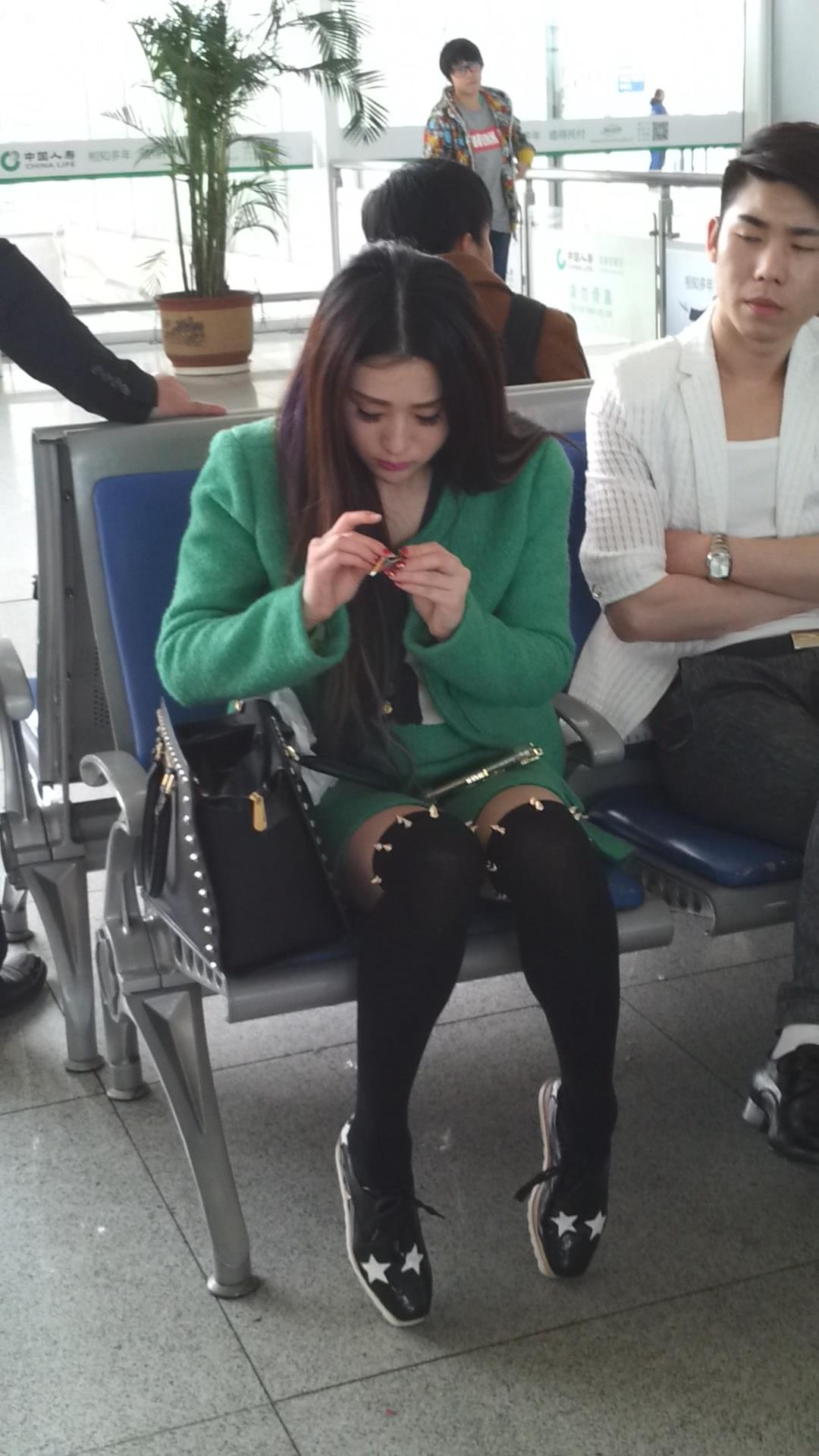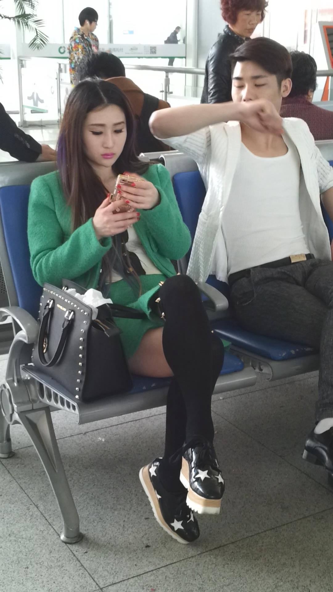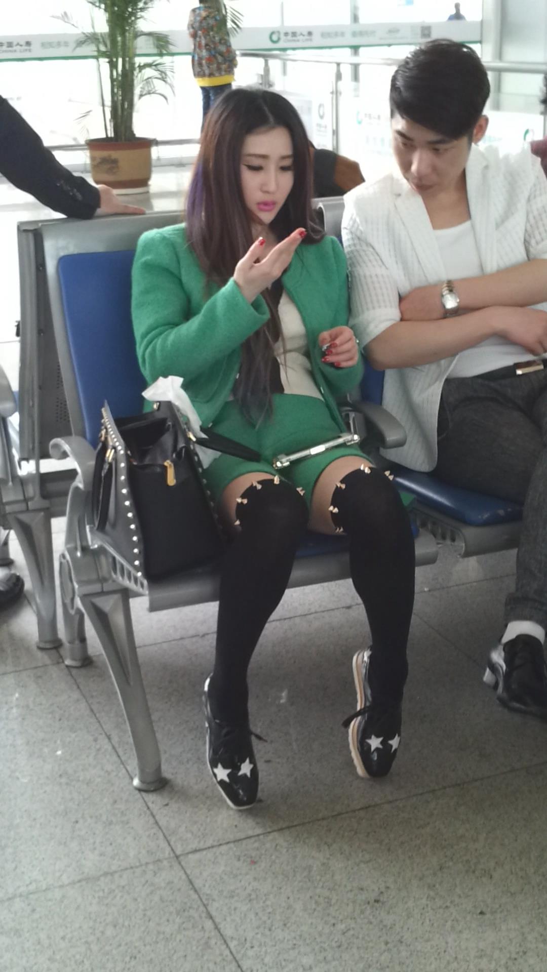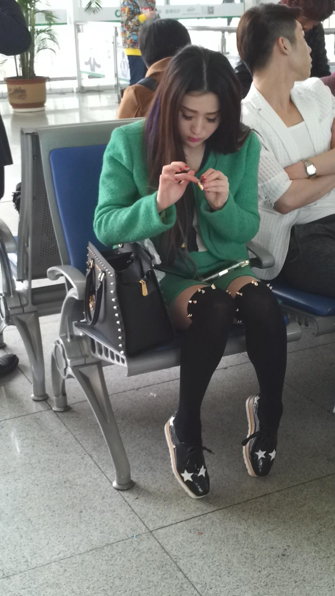 车站候车室拍摄性感黑色铆钉丝袜美女 编号5795