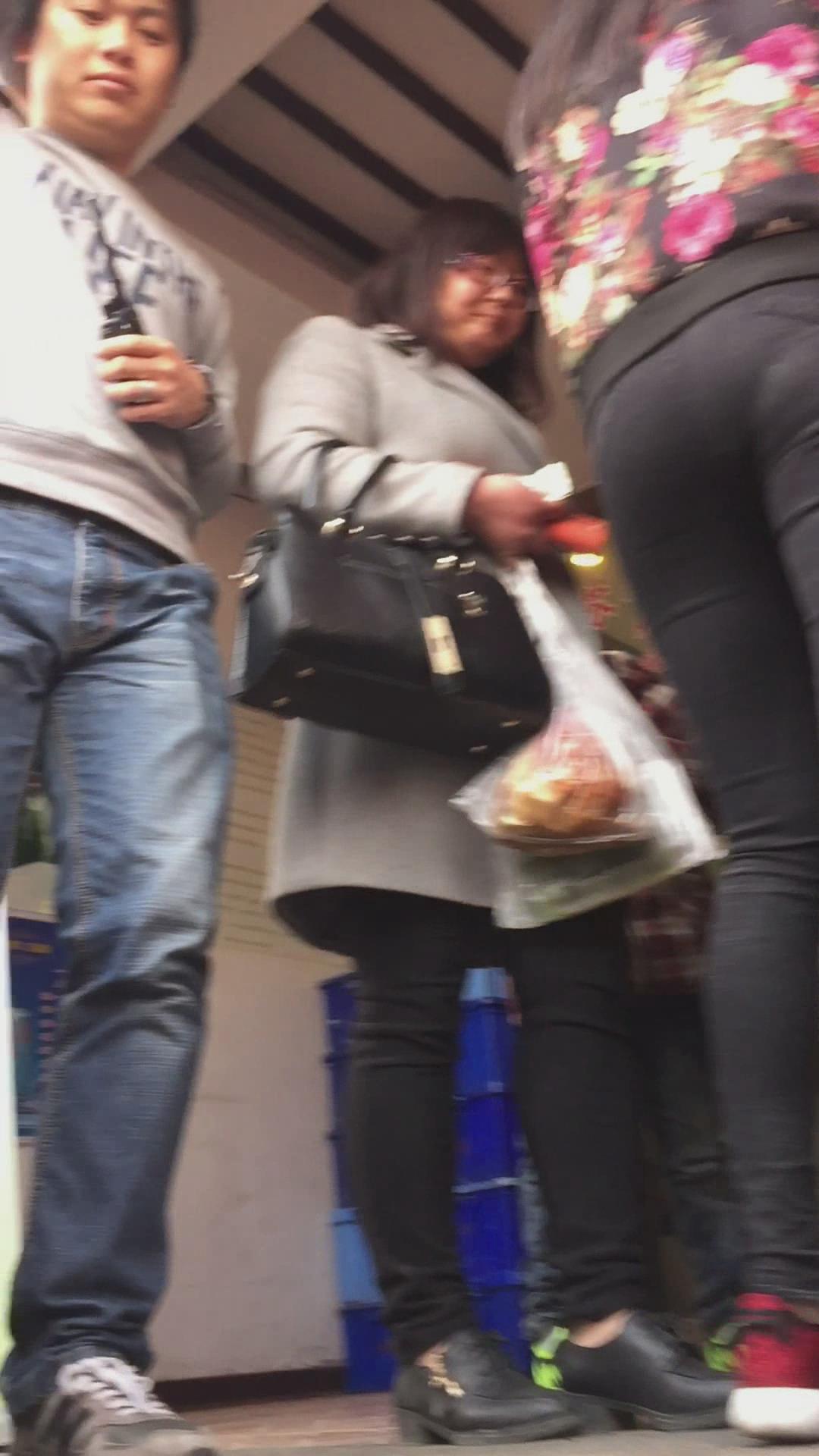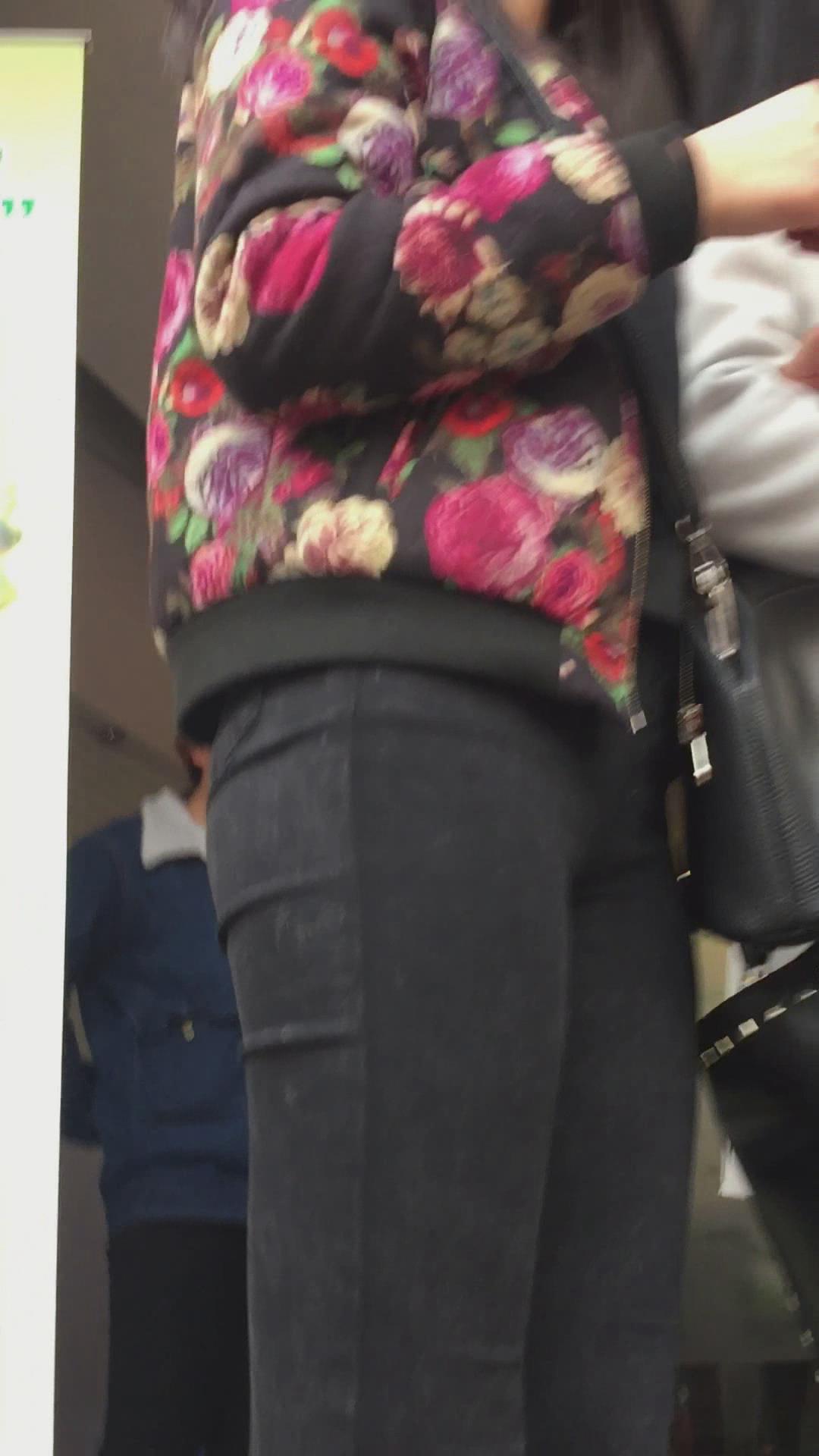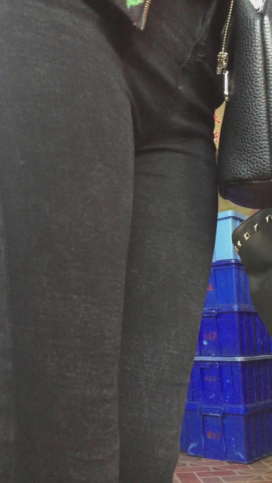 街拍排队的紧身黑裤运动鞋美眉 编号5806