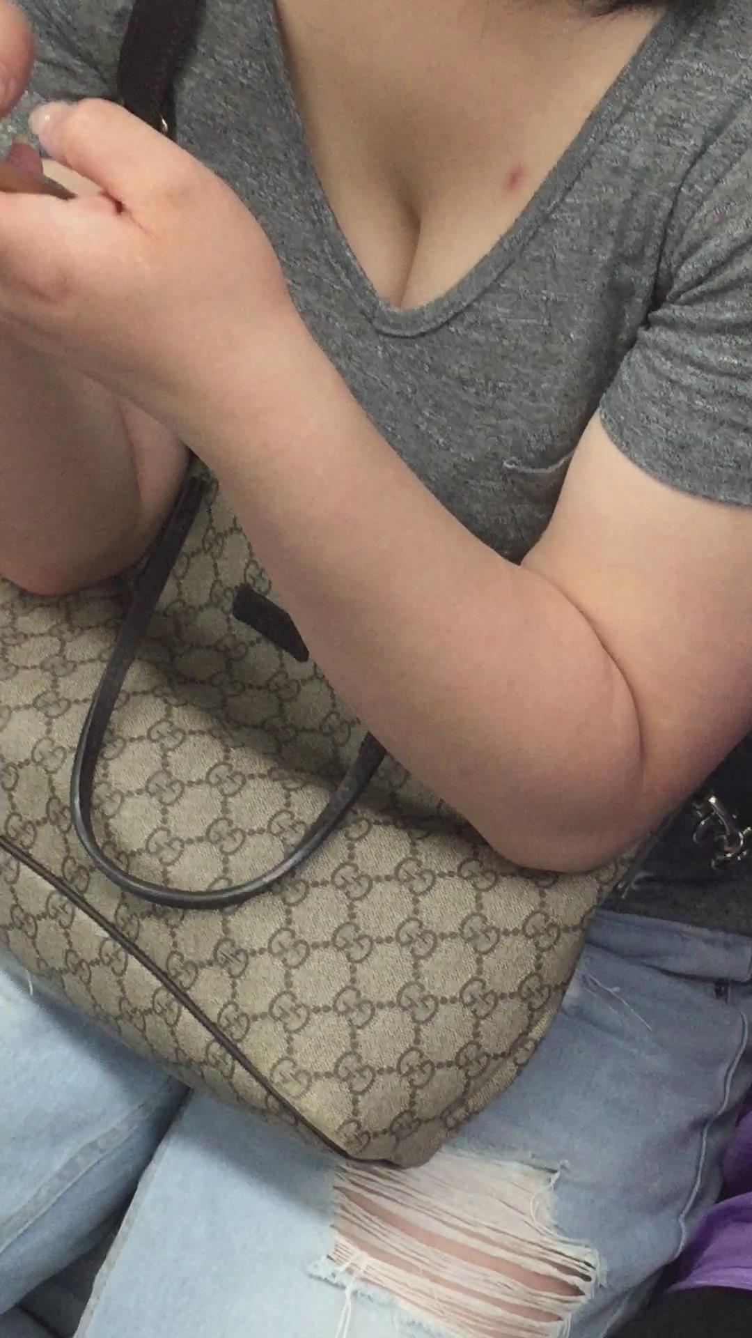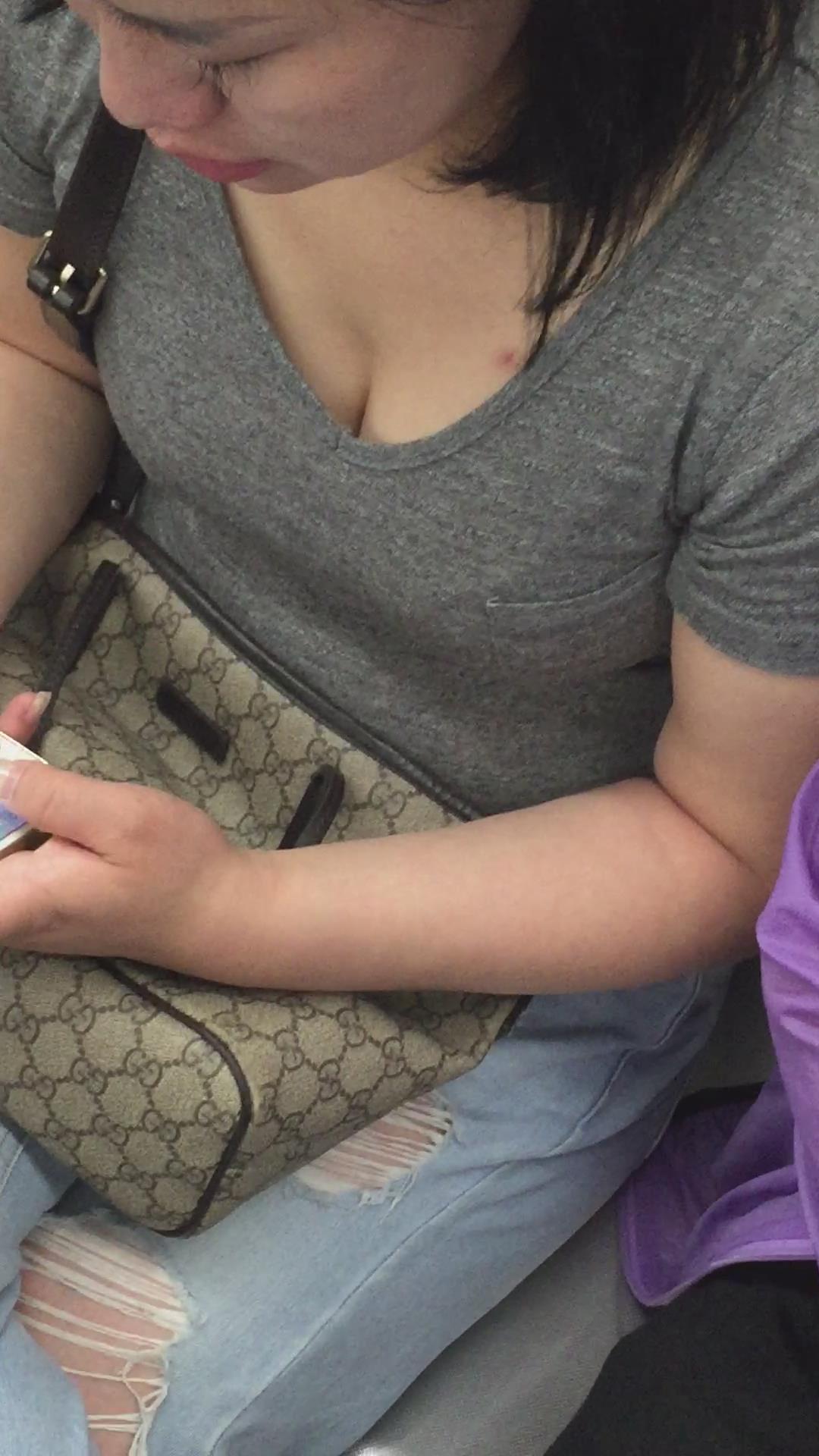 地铁拍摄玩手机的丰满美女,事业线诱人! 编号5813